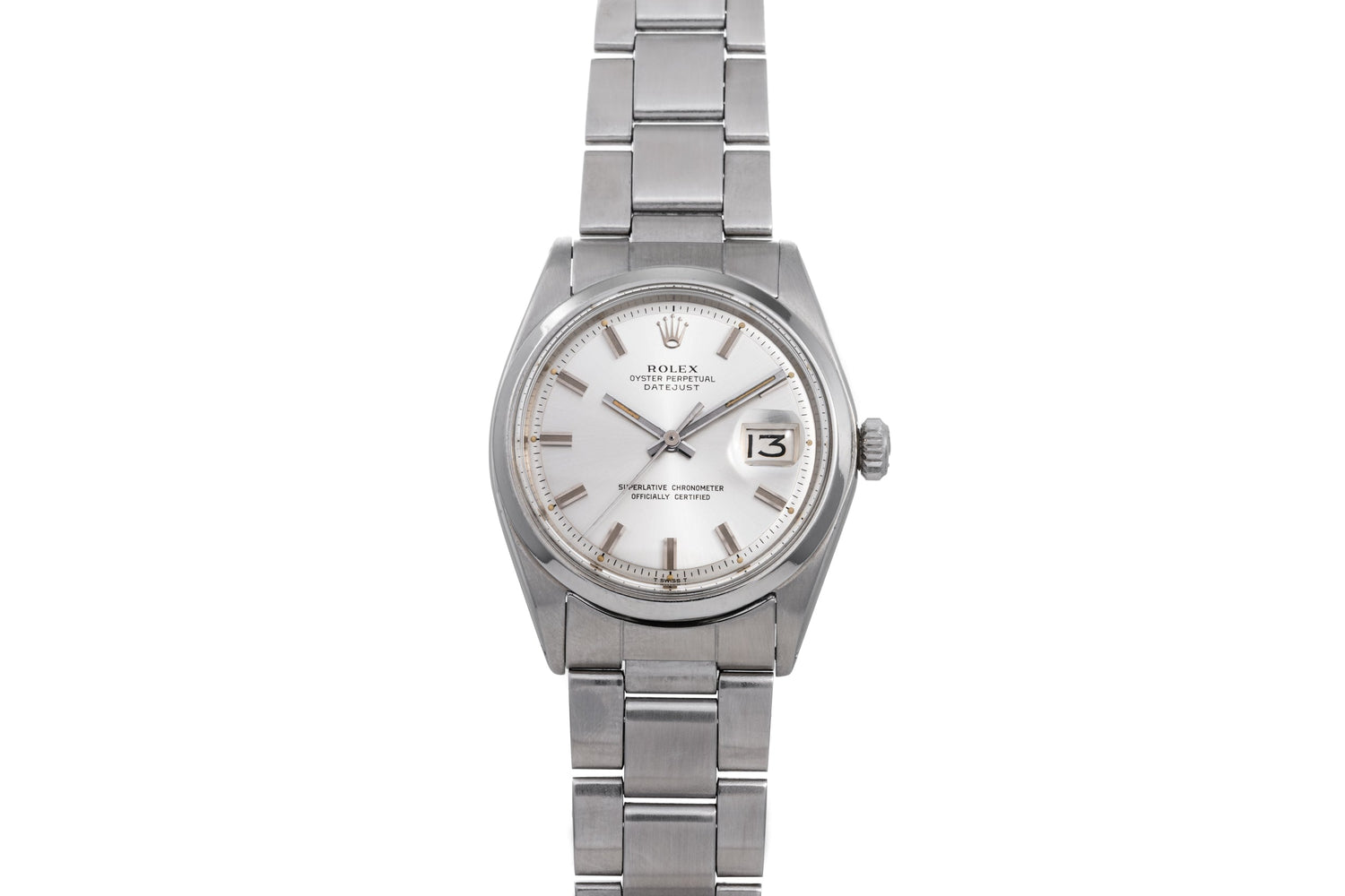 With its famous fluted white gold bezel, the 1601 can be distinguished from its sister references of Datejust, the 1603, which has an engine-turned steel bezel; or the 1600, which has a polished smooth steel bezel. Like all 1600-series Datejust models, the 1601 features a pie-pan dial, acrylic crystal, and classic 36mm proportions that work brilliantly on fabric straps or metal bracelets.
