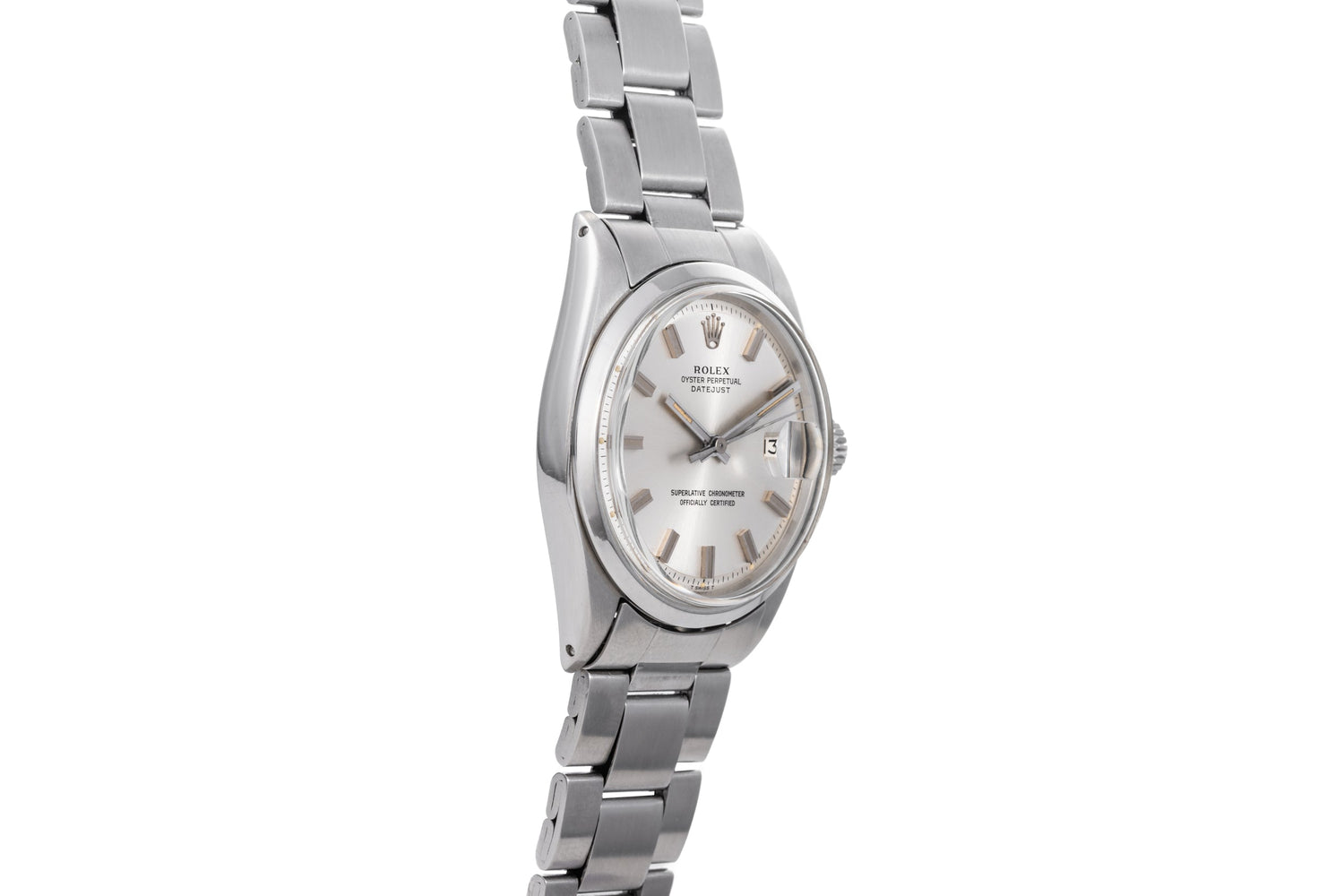 This particular timepiece, a Reference 1600, dates to circa 1970 and features a lovely sunburst silver Tritium dial with applied 'wide-boy' indices, a matching 'cigarette' handset, a smooth polished bezel, and is fitted to a folded link Oyster bracelet with signed blade clasp. This watch checks all the boxes - with a bit of added 'if you know, you know.'