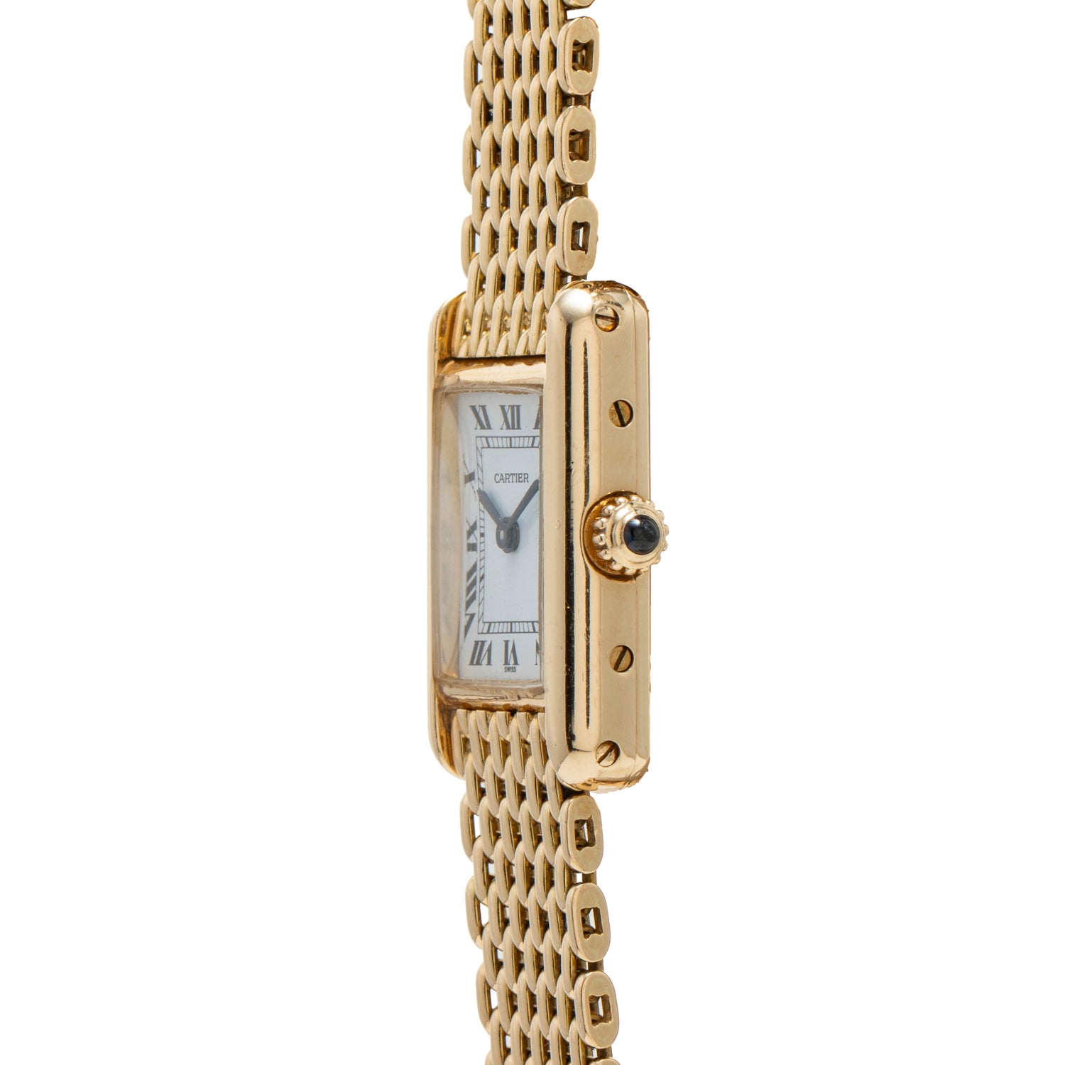 This particular Tank Louis is notable for its inclusion of a matching bracelet — a relative rarity in the Tank world. A Reference 8660 executed in 18K yellow gold, it's sized at 18mm and comes with a beautiful multi-link 18K yellow gold ‘Milanese’ bracelet, which adds a bit of pizzazz to an otherwise serious dress piece. Powered by a reliable quartz movement and fitted with a handsome white 'Roman' dial, this superb piece is ready to light up a formal affair.