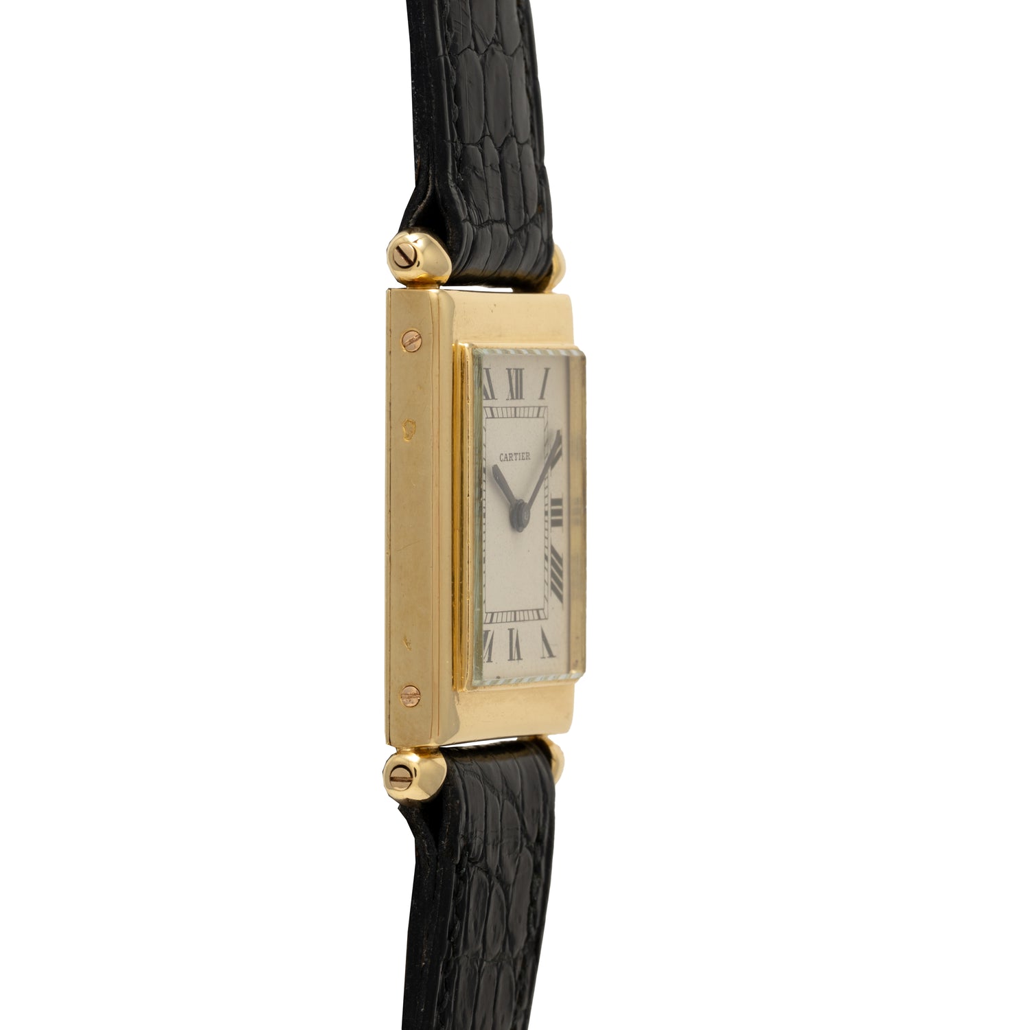 The Tank Louis was introduced in 1922, followed close on the heels of the Asian-influenced Tank Chinoise. The Chinoise, released amidst a mania for jewelry inspired by the Orient, has a square rather than rectangular case and lugs that resemble the portico of a Chinese pagoda.