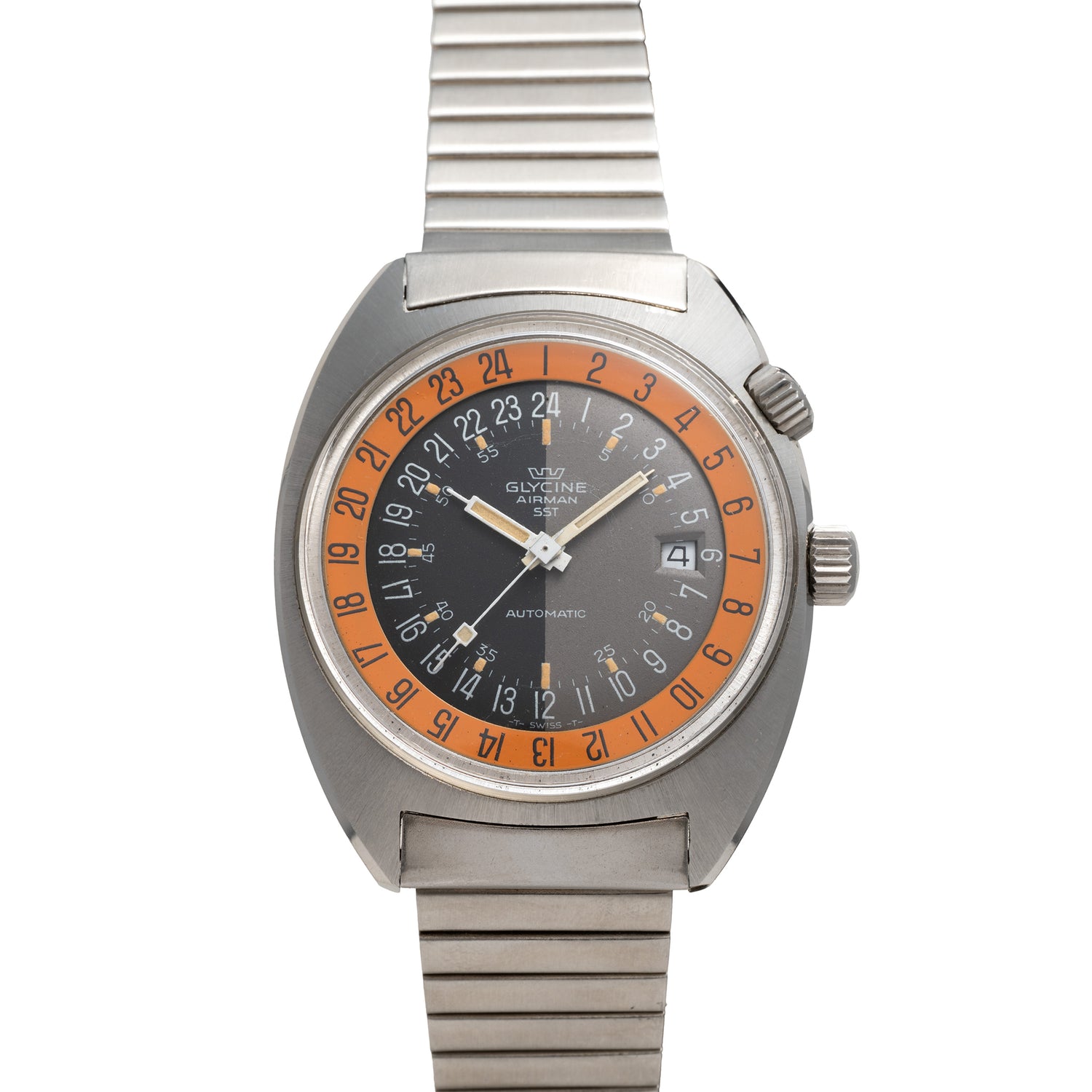 First released in 1953, the Glycine was tailor-made for pilots. It was born from a conversation that Samuel L. Glur, sales director for Altus S.A., had with a pilot on a flight from Bangkok to Calcutta. Though this may hard to imagine happening today, Glur was actually able to go into the cockpit of the plane and talk to the pilot about—what else—watches.