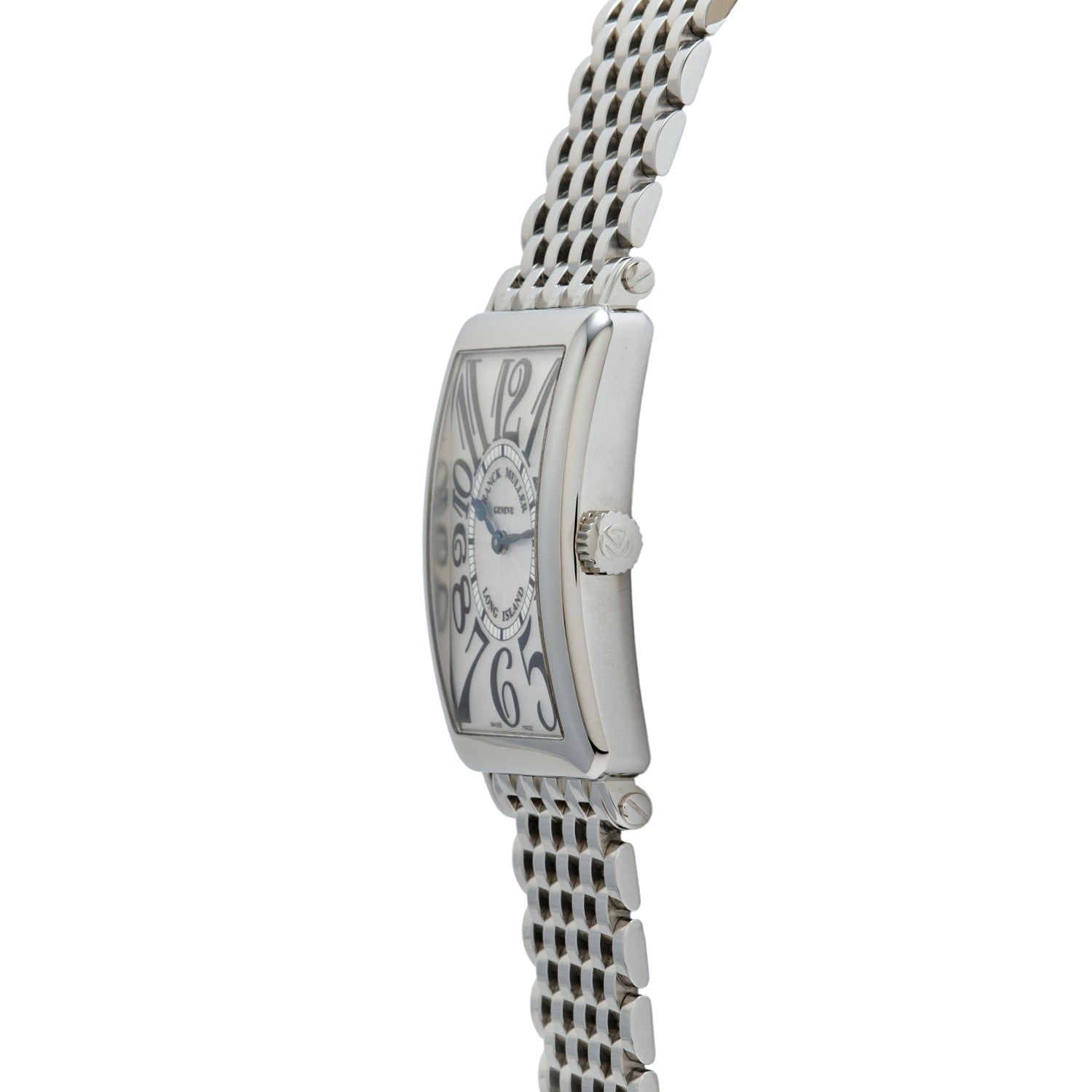 This particular Franck Muller, a part of the ‘Long Island’ Collection, epitomizes the Franck Muller philosophy straight down the line. A beautiful Cintree or Americaine-esque scalloped case, coupled with beautifully exaggerated Art Deco style numerals set the tone for this piece. Counterbalancing these playful elements, this reference includes a gorgeous silver guilloché ‘flame’ dial center, serving as a reminder that Franck Muller is a serious watchmaker as well. Powered by a quartz movement, this piece serves as an excellent unisex option for a variety of collectors.