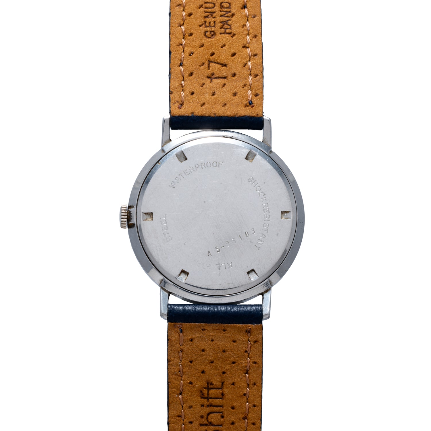 –A lovely 34mm manually-wound piece, this piece has a lovely multi-tone dial with subsidiary seconds display, and dauphine handset. At the perimeter, an engine turned chapter ring has an explorer display outbound. A classic representation of the best of the era of watchmaking, this classic deserves a place on your wrist!