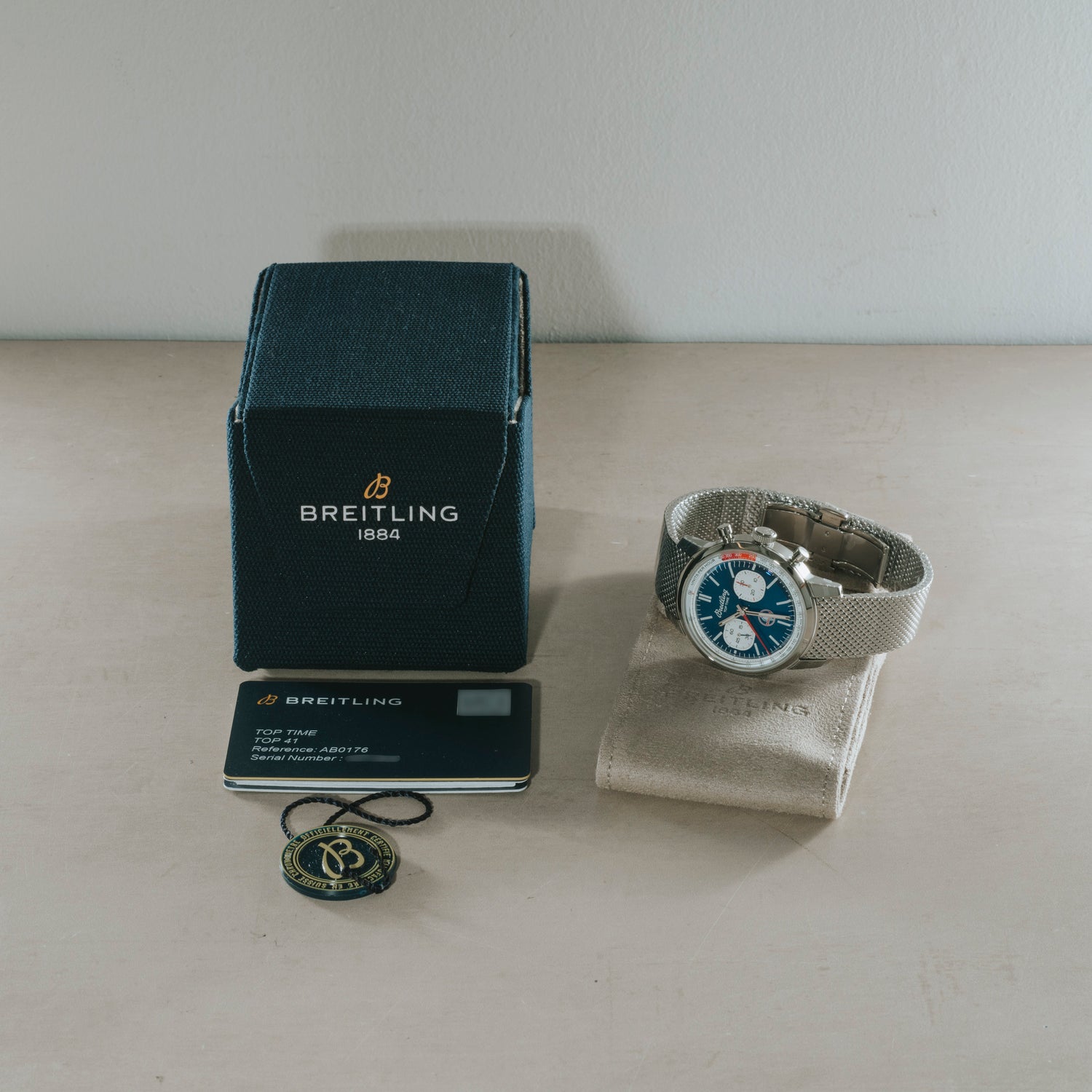 The modern Top Time is no different. With its uncluttered dial designs and workhorse movement, it's an ideal entry into the Breitling catalog, which features such famous models as the Chronomat and the Navitimer. For those looking for a simpler chronograph devoid of the Navitimer's multiple timing scales, the Top Time is just the ticket.