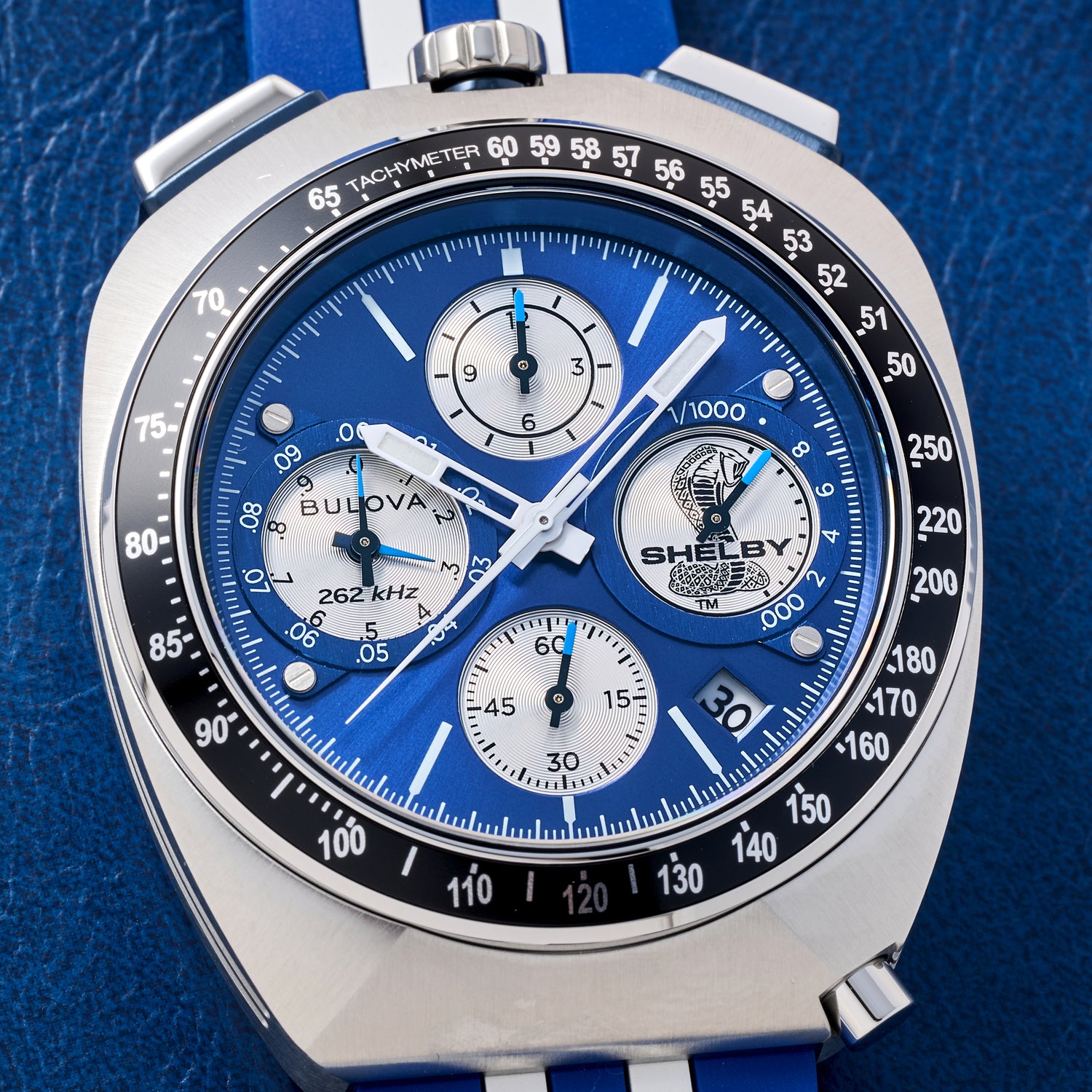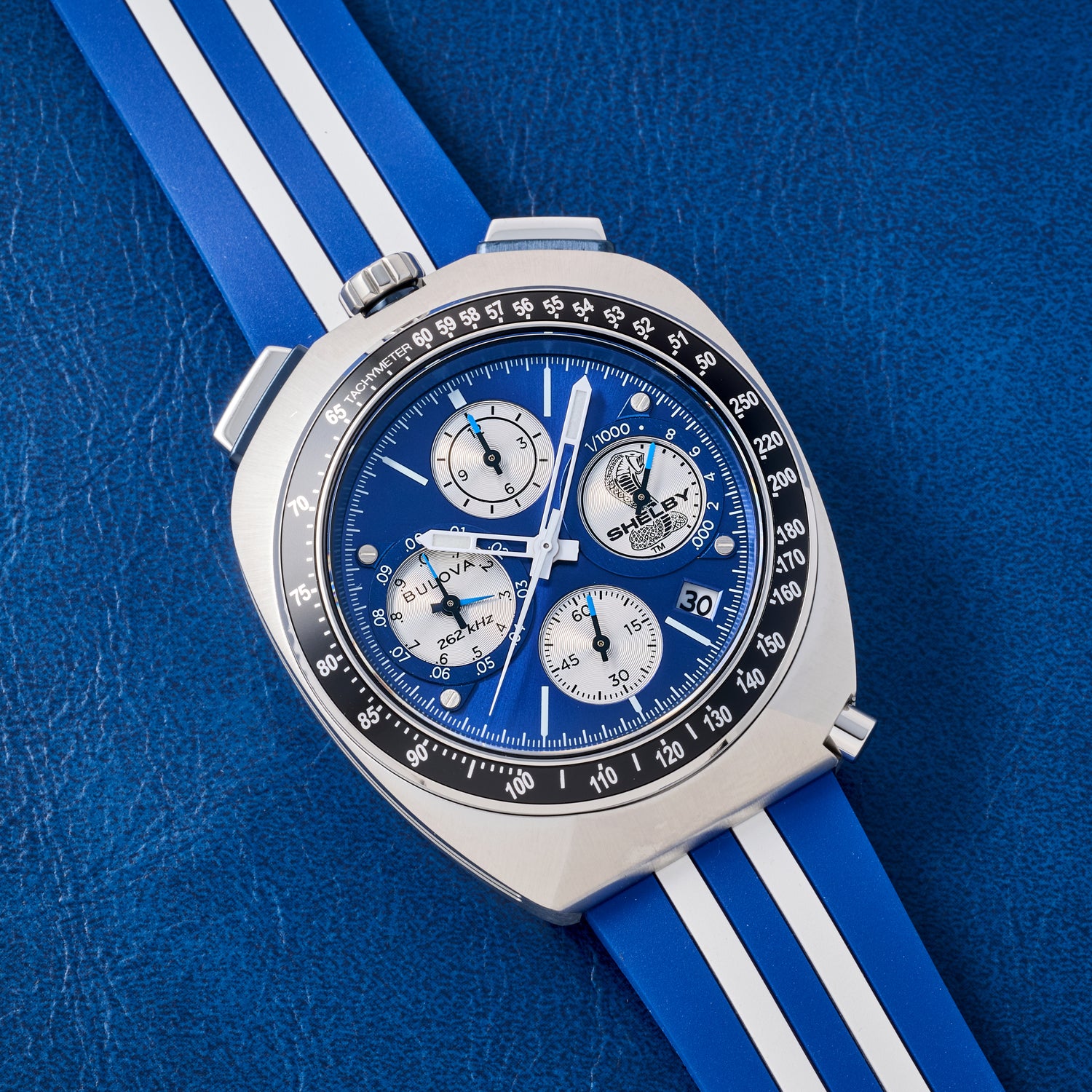 This modern piece is a great representation of why we love the brand, even in modern times. Released as part of a collaboration for Bulova's 150th anniversary (yes you heard that right-150!), Bulova presented this Shelby Racer Chronograph. Designed to combine the aesthetics of Carroll Shelby's race style with Bulova's technical mastery of chronographs, this piece is one of the coolest chronos you've likely never seen, with repositioned pushers for easy access while racing.