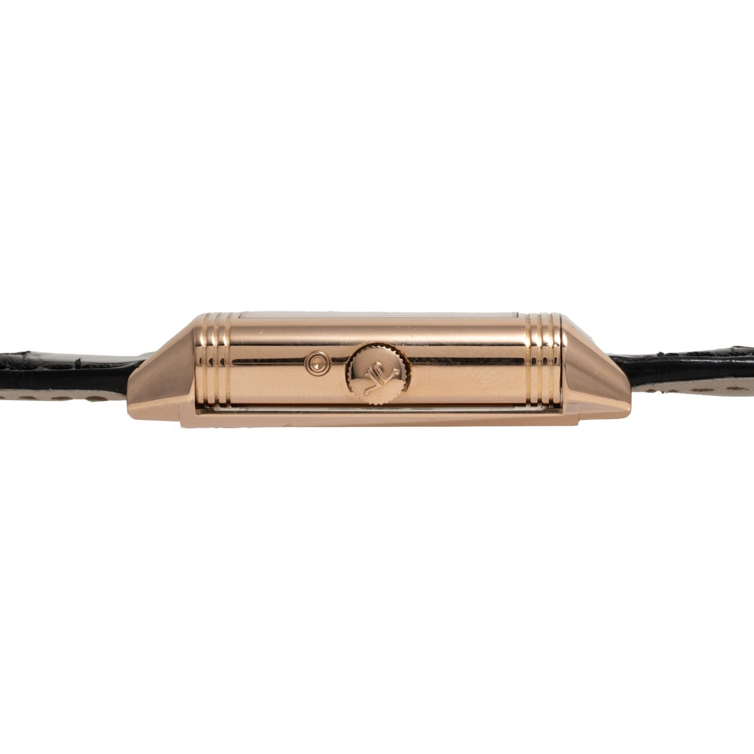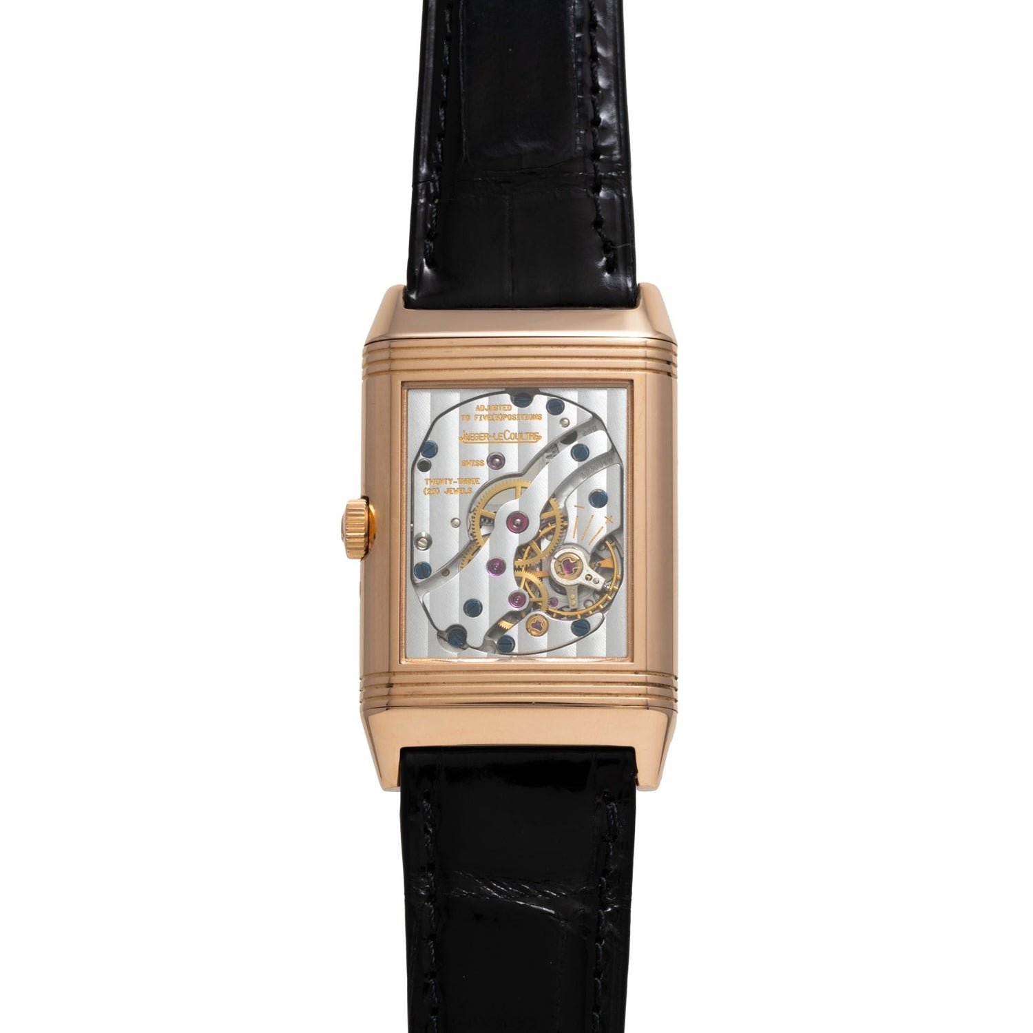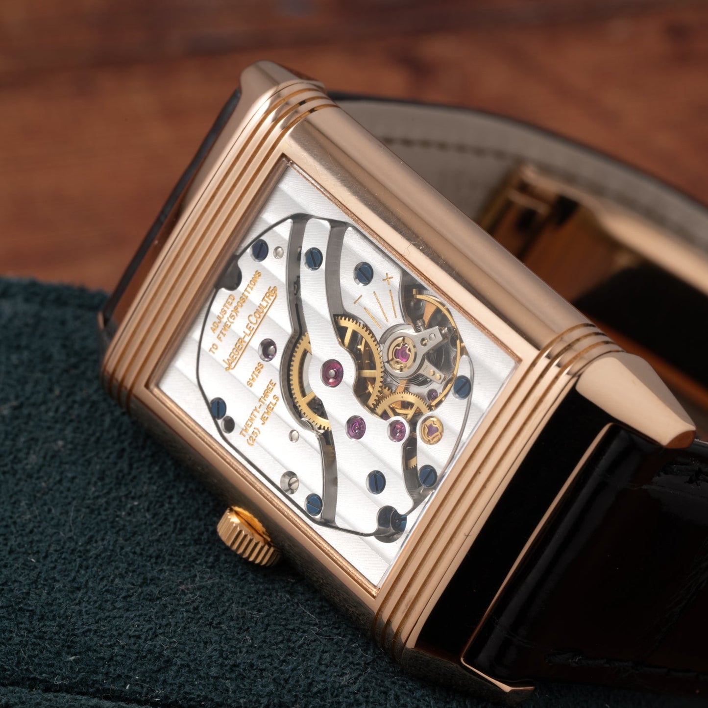 Powered by a manually-wound Calibre, which remains visible thanks to a sapphire exhibition caseback as opposed the traditional Reverso solid caseback, it comes paired to a fresh, signed black alligator leather strap with a signed rose gold deployant buckle.