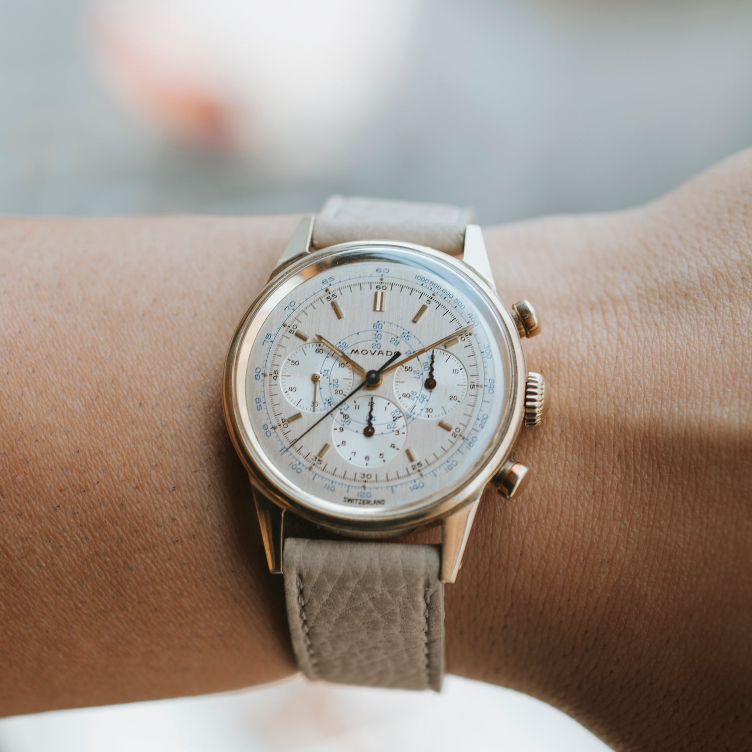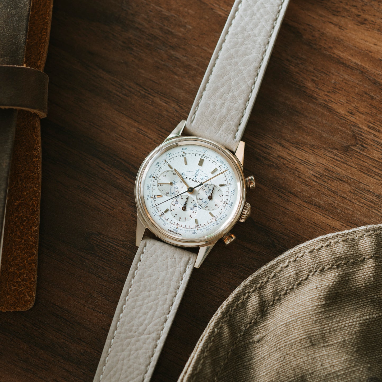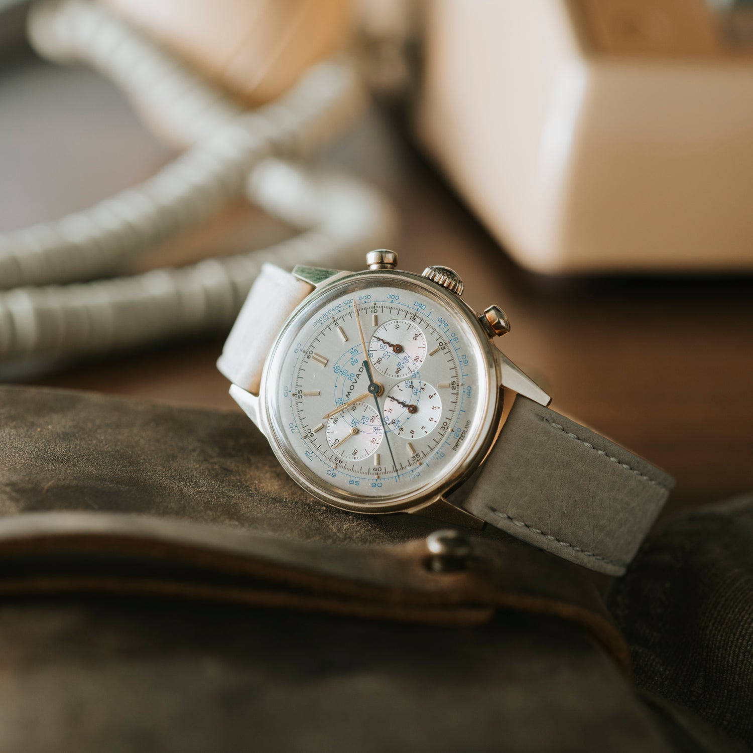 Powered by the brand's famed Calibre M95 manual-winding chronograph movement, it comes paired to an 18mm Iskenderun Beige Nubuck Strap from Analog:Shift with a gold pin buckle. Perfectly sized for both men and women and beautifully preserved, this gorgeous chronograph combines 1940s aesthetics with 1960s technology in a package that still looks modern today.