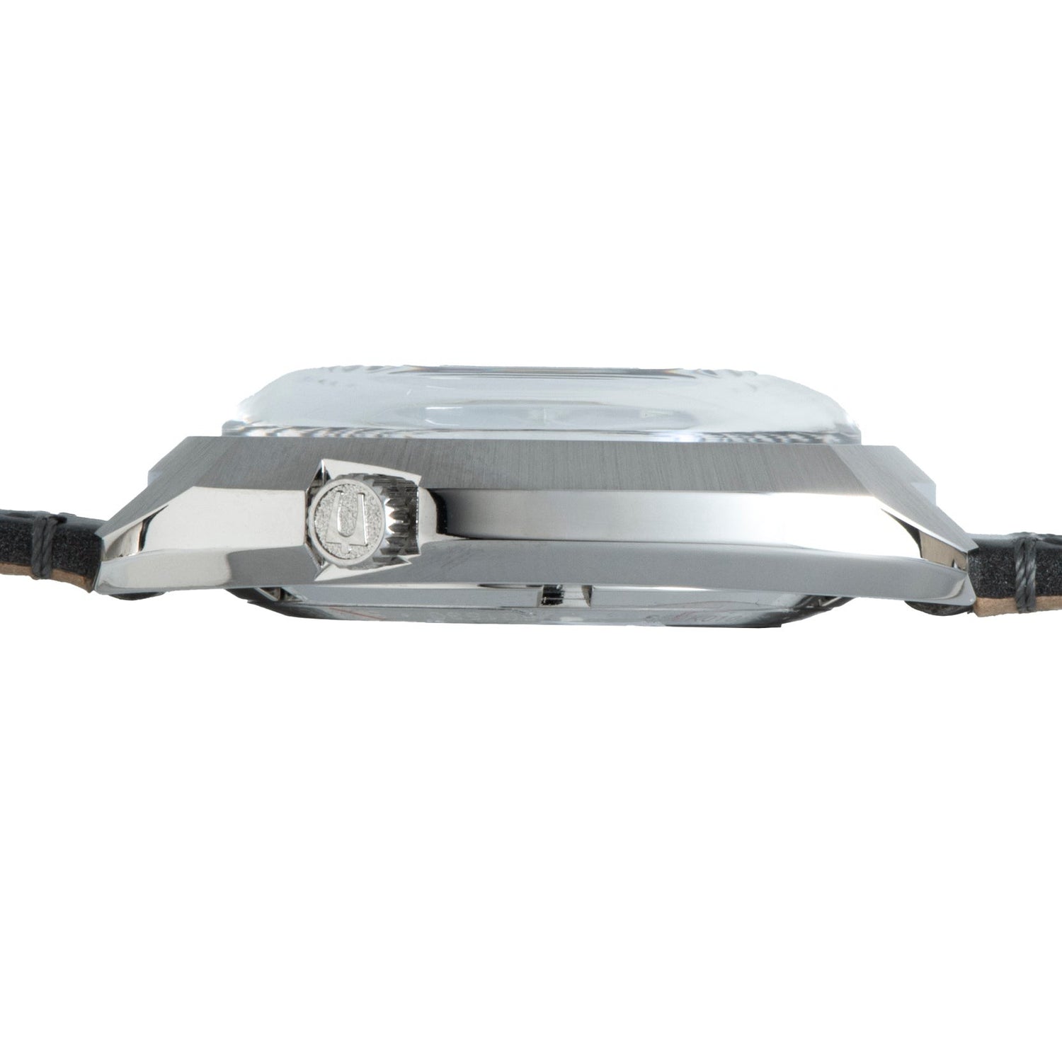 The Accutron 261 debuted in 1971 and followed the unique case forms inspired by the era's space-age aesthetics of the television set. That said, the 261 was relatively conservative with its design language with just a dash of Accutron panache, and as a result, the 261 seamlessly translates to easy modern day wearability.