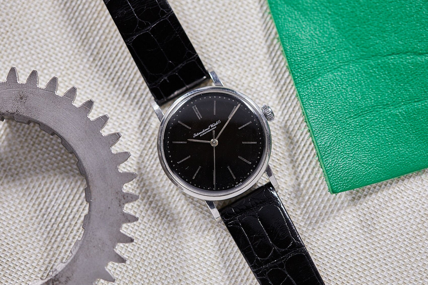 This piece, a svelte 35mm steel IWC dresser with a crisp black dial and slim profile, checks all the boxes for proper formal wear. Powered by the world-class Calibre .89 manual wind movement, it is not only beautiful but historically significant. Applied indicies and simple, non-luminous pencil hands further demonstrate the understated elegance of the model.