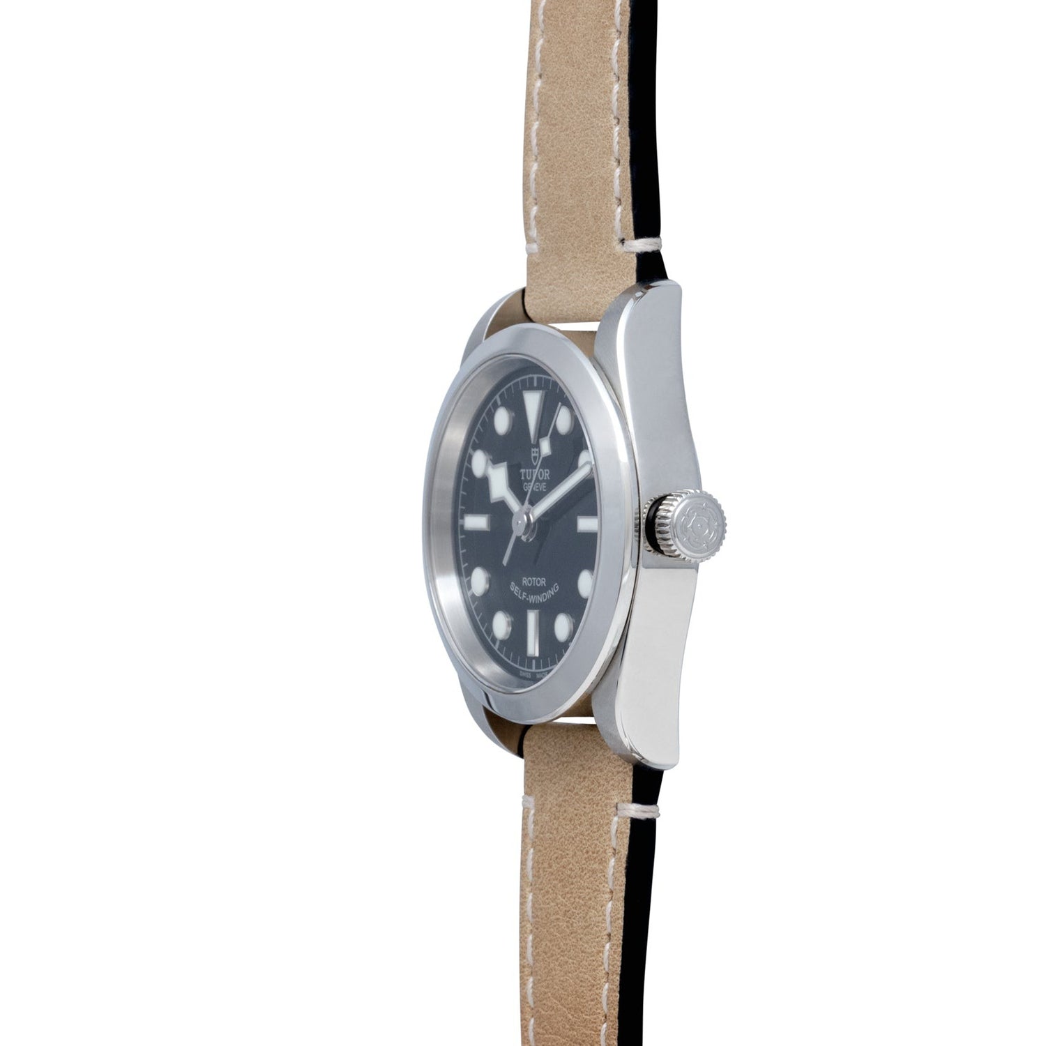 Powered by Tudor’s self-winding Calibre T600 with 38 hours of power reserve, this piece comes fitted on its factory taupe leather strap with side stitching and a signed stainless steel deployant clasp, making it infinitely wearable for casual or sporty applications alike.