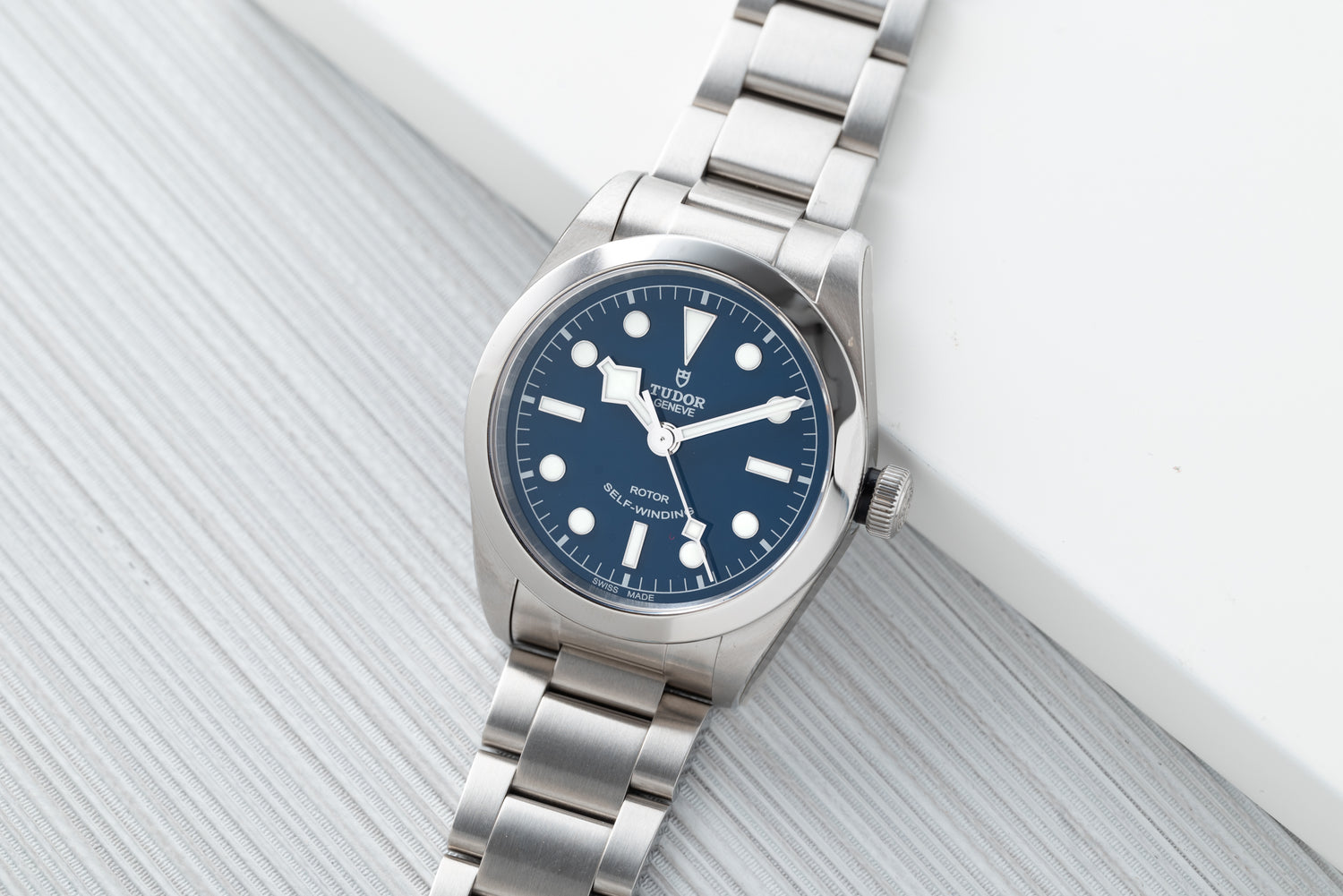 Housed with Tudor’s self-winding Calibre 2824 equipped with a modified balance, kif shock absorbers and triovis regulator, it comes fitted on a multi-link stainless steel bracelet with a signed locking clasp. Don’t let its refined look fool you either — this BB36 boasts 150 meters of water resistance — more than enough for any casual swim or recreational dive.