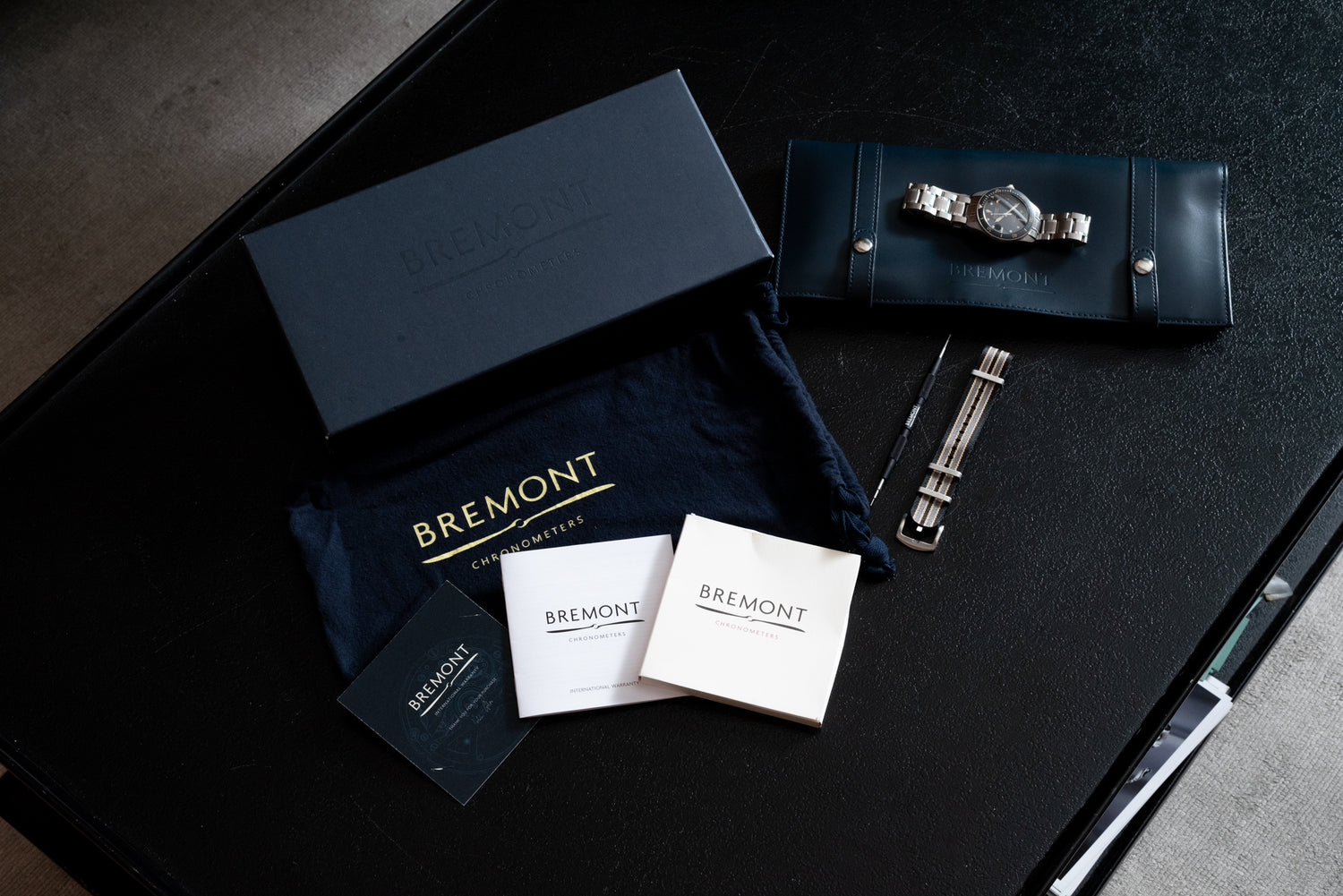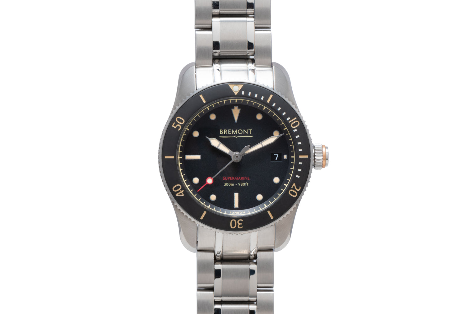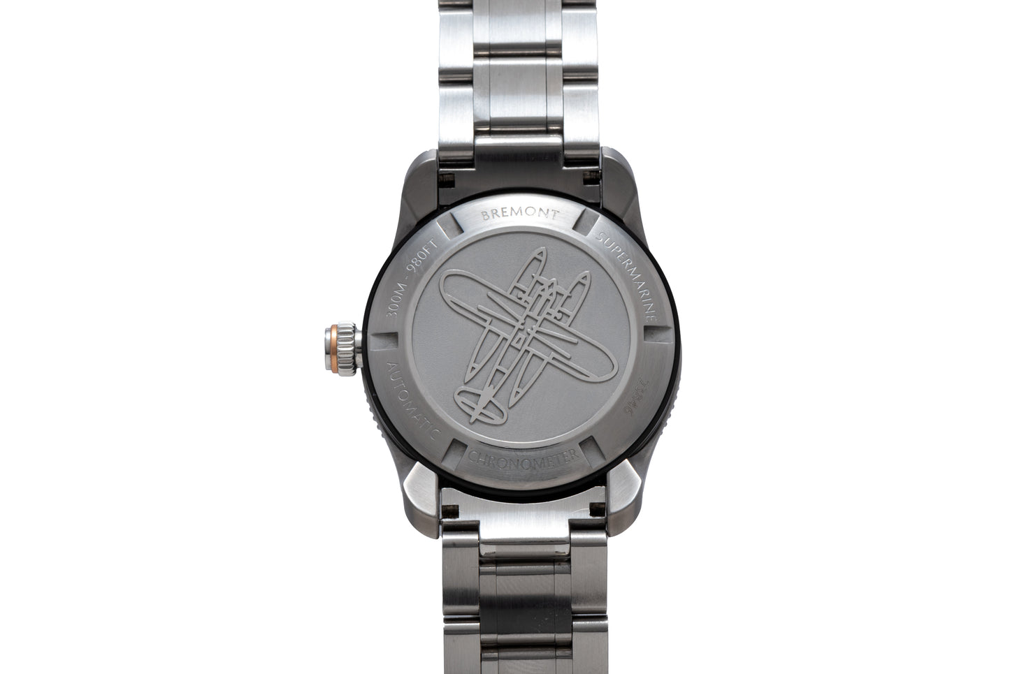 Powered by Bremont's Calibre BE-92AE automatic movement, this piece comes fitted to a stainless steel mult-link bracelet with signed depoloyant clasp and features an engraving of the record-setting Supermarine S6.B on its caseback. It also comes with its inner and outer box set, NATO-style nylon strap, leather travel roll, and booklets.