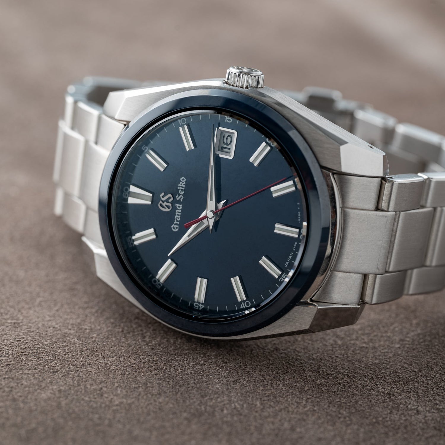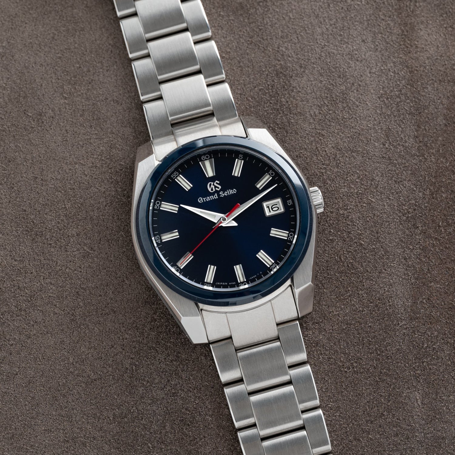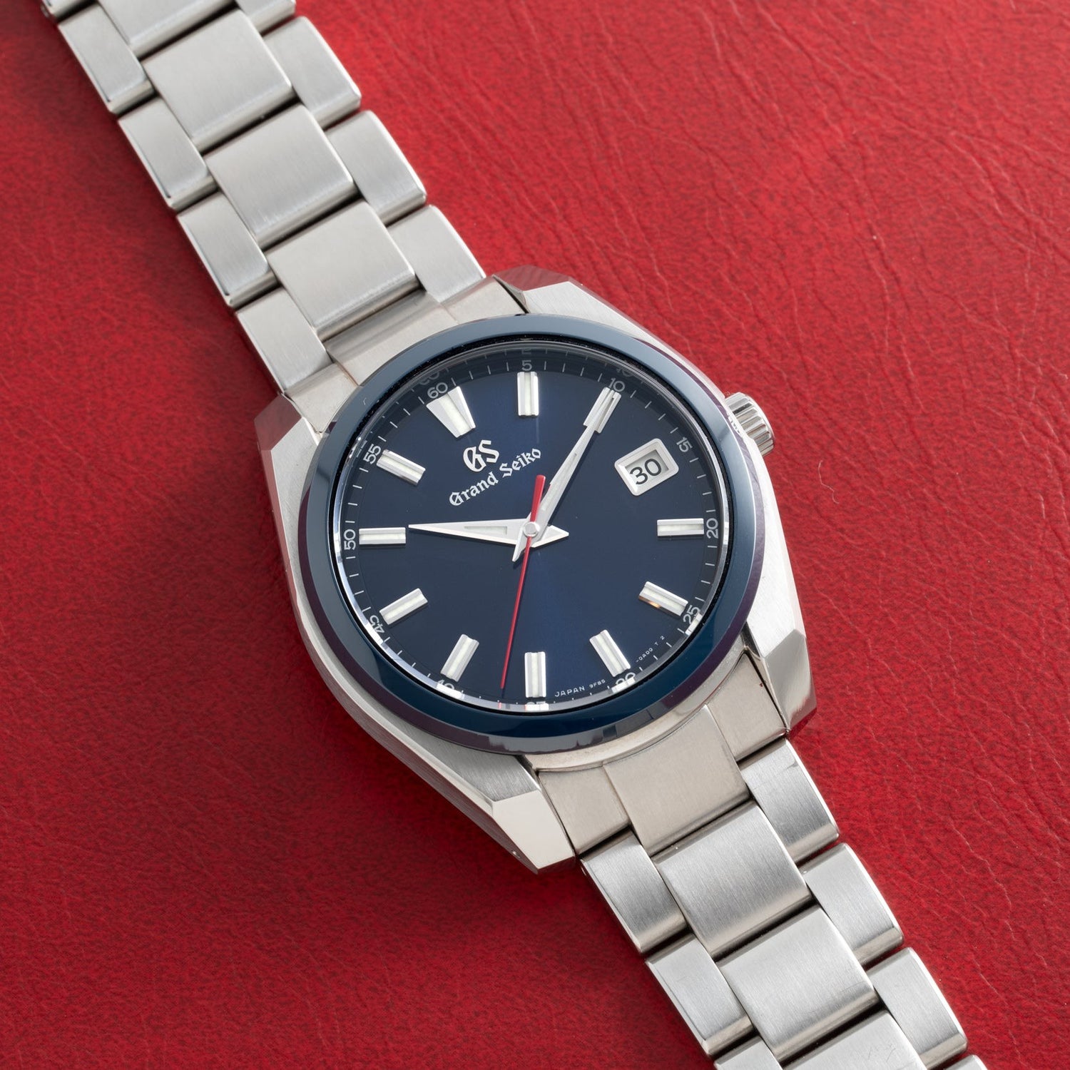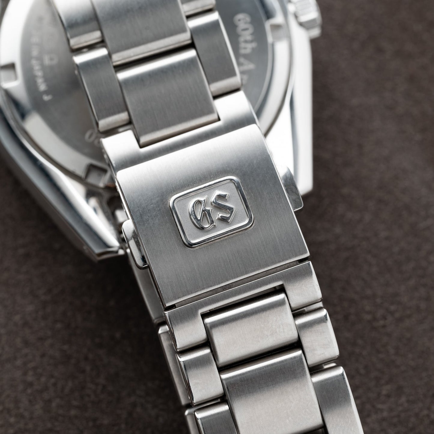 This model is powered by an in-house, high-precision Calibre 9F85 quartz movement. Each quartz crystal is homegrown and aged by GS for a period of three months and integrated with its own unique circuit compensated for temperature changes, making it perhaps the most over-engineered quartz mechanism on the planet! This one-owner example is in excellent, lightly-worn condition and comes paired to its original multi-link stainless steel bracelet with a signed push-button deployant clasp. It also comes complete with its full set of factory collateral including boxes, papers, books, and extract.