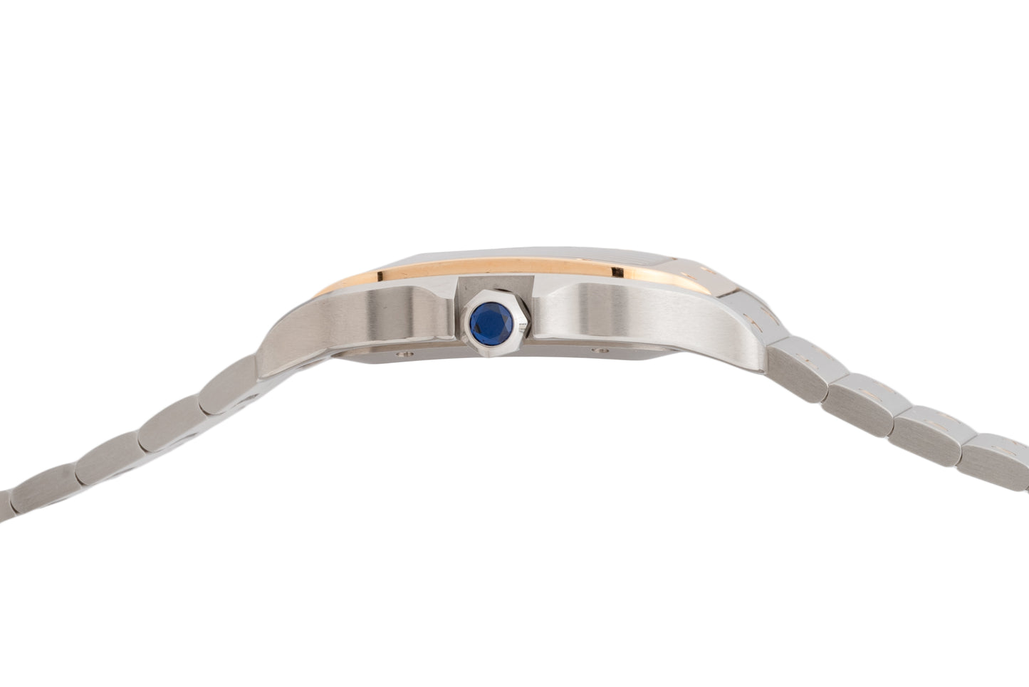 This version, a two-tone Large sized model features a 39.8mm case in stainless steel and dressed with 18k yellow gold accents. The classic white Roman dial and signature blue cabochon sapphire crown gives it a solid "dress watch" vibe while the robust case and seamlessly fitted and easily adjustable/removable SmartLink increases its versatility as a smart-casual, mildly sporty everyday companion.