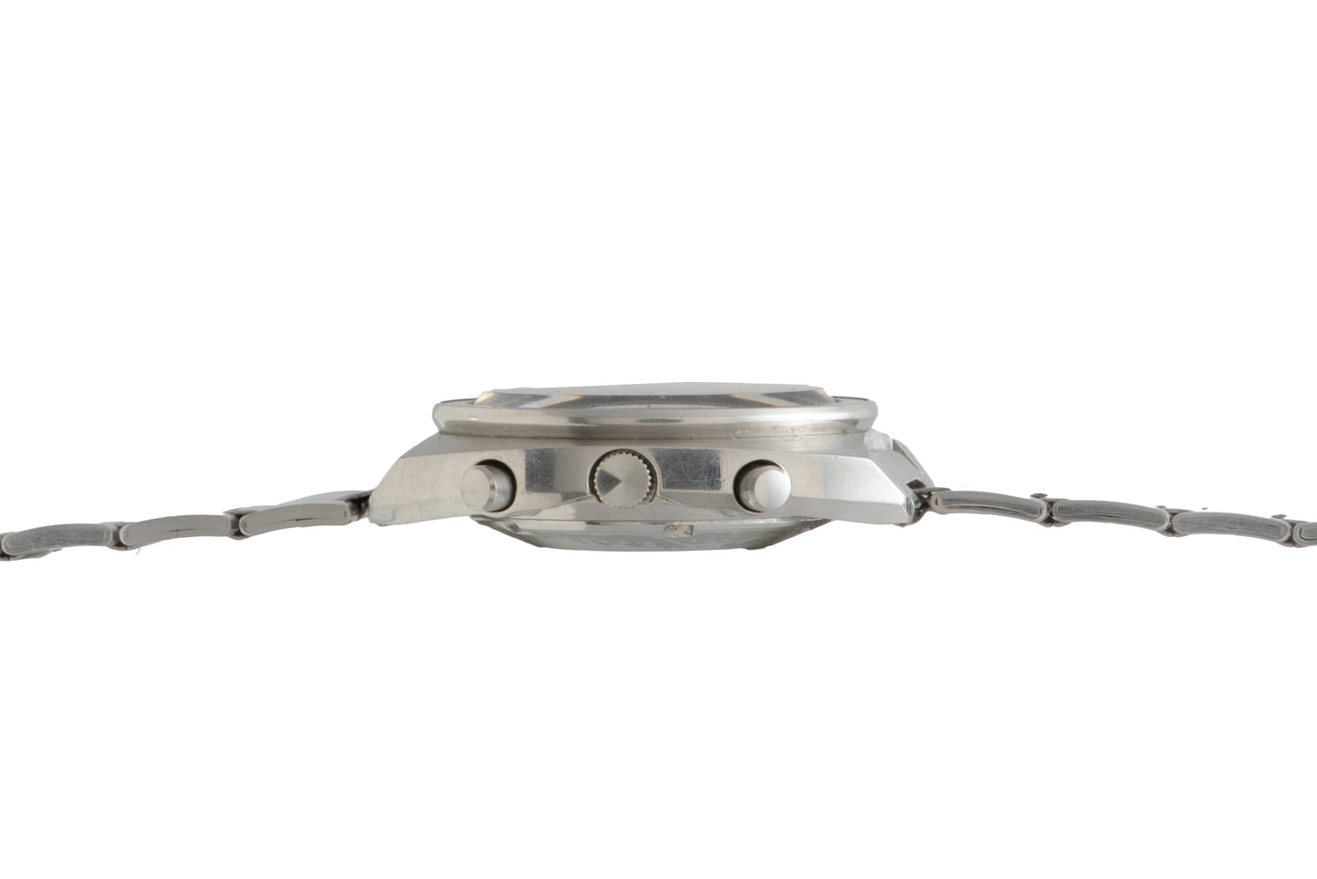 Dating to 1971, this 6139-6005 features a 41mm stainless steel case with a ‘Pepsi’ tachymeter scale on the bezel, barrel chronograph pushers, a recessed crown, and a dual-language calendar (English and Spanish). The epic yellow sunburst dial features applied indices, a day-date window at 3 o’clock, a subsidiary counter at 6 o’clock and an internal rotating elapsed-time bezel. This stunning example remains in an absolutely untouched and unpolished state, and comes fitted to a correct stainless steel multi-link bracelet with signed locking clasp.