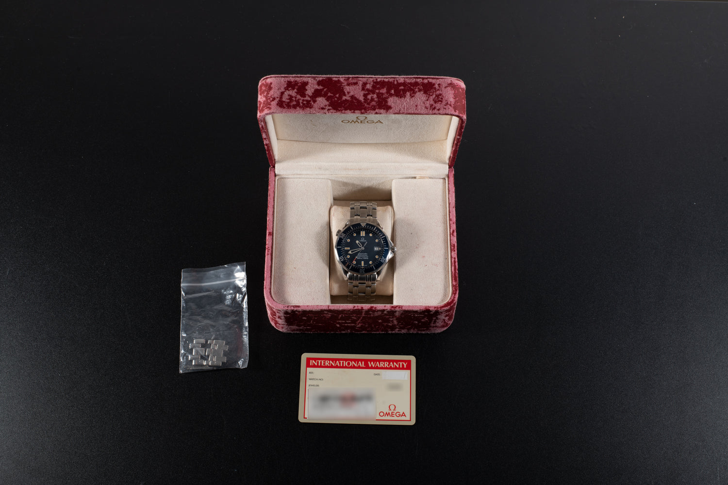 Paired to a stainless steel multi-link bracelet with a signed push-button deployant clasp that, in our opinion, is aging extremely well. It also includes its inner box and undated warranty card. Holding a special place in the hearts of all who grew up playing Goldeneye for Nintendo 64, this piece is modern yet nostalgic all at once - a combination not easily achieved...