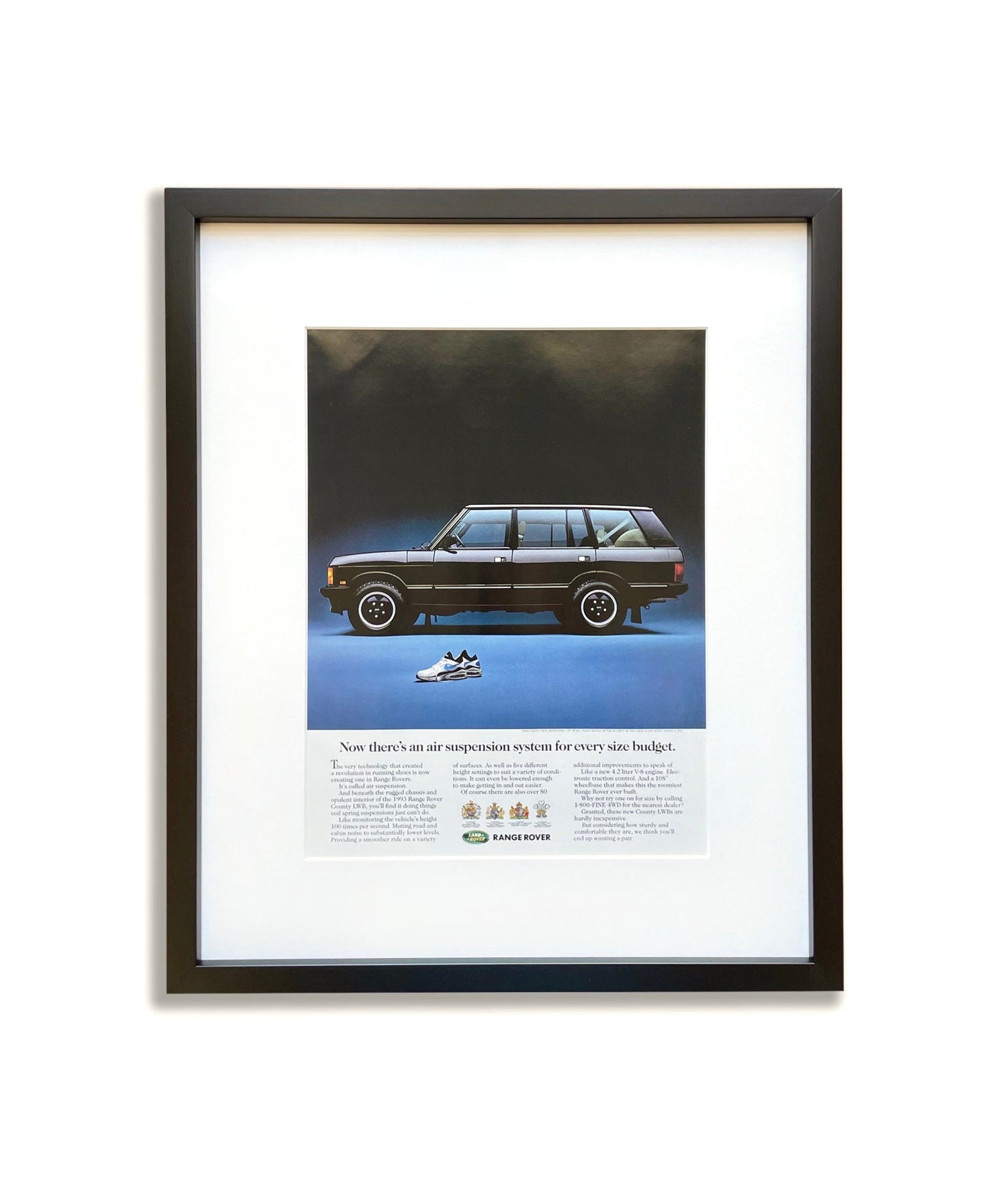 Today, you probably wouldn't see an ad such as this one: Extolling the virtues of the air suspension in the then-new 1993 Range Rover Country LWB, it invites a contemporary product from a completely unrelated vertical into the image in order to draw a comparison. "The very technology that created a revolution in running shoes is now creating one in Range Rovers." A pair of Nike Air Max sit proudly in the frame, closer in view that even the vehicle being advertised. "Granted, these Country LWBs are hardly inexpensive. But considering how sturdy and comfortable they are, we think you'll end up wanting a pair."