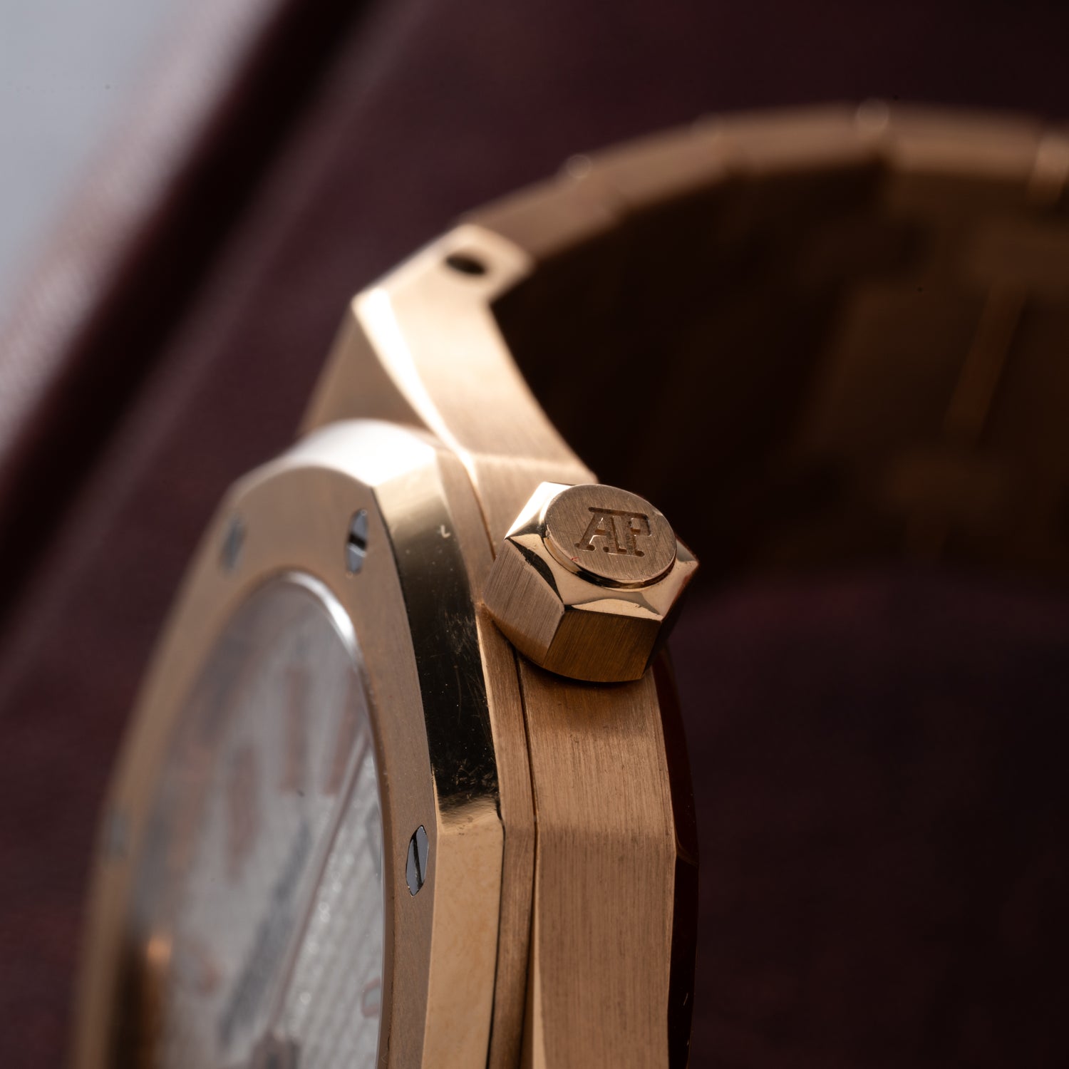In its rose gold, the 15202OR offers the incredible model in all its gold glory—balanced in proportion, razor-sharp in execution, and mechanically significant throughout.