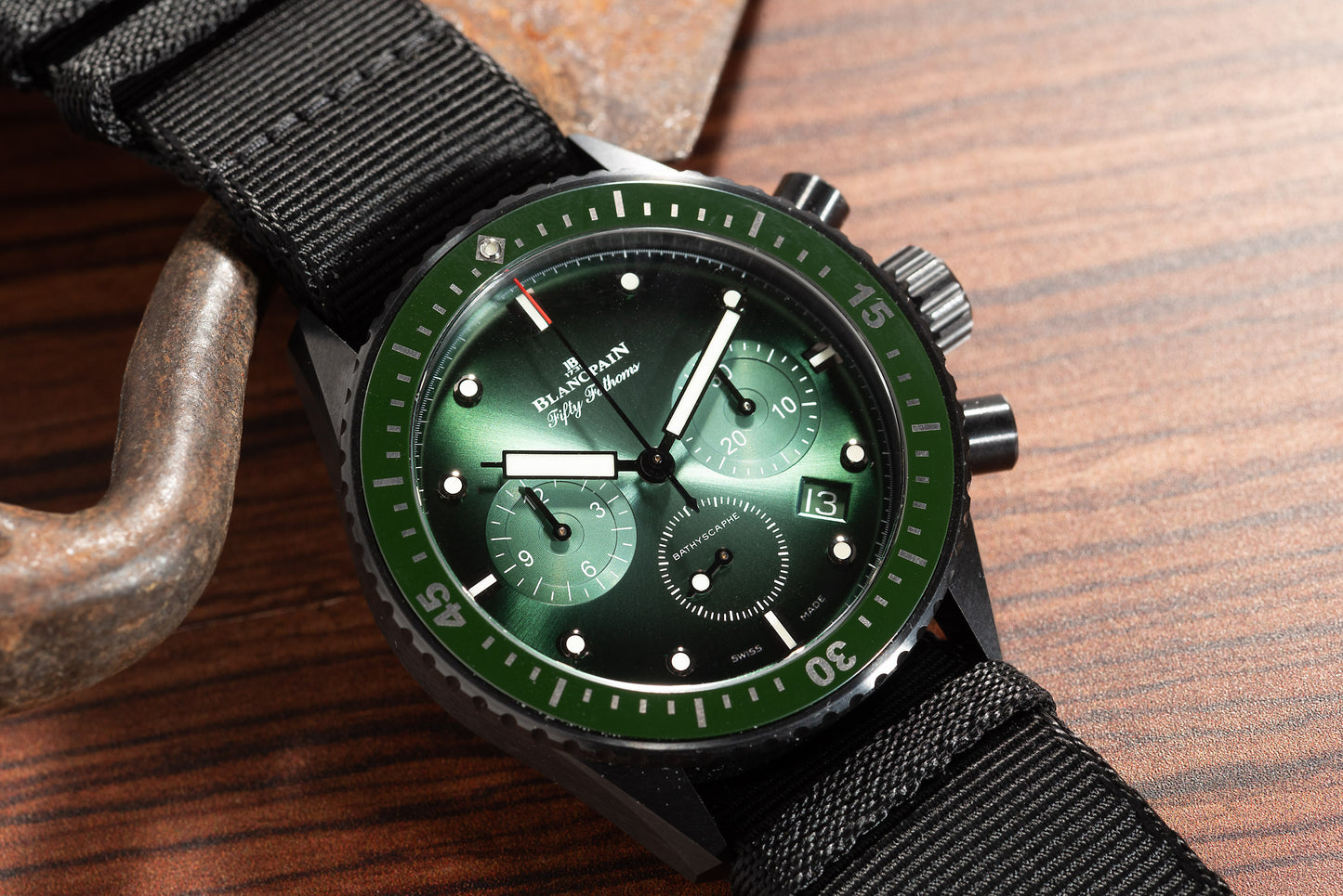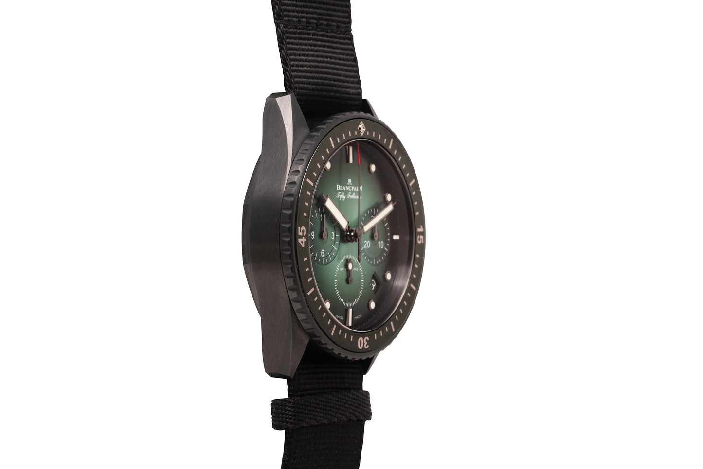 +But Blancpain's other genius — and what has arguably ensured their legacy — is the entrant into the world of purpose-built tool watches, and the industry's prototypical modern diver's watch: the legendary Fifty Fathoms. The genesis of this legendary timepiece has its roots in post-World War II France, where Captain Bob Maloubier (previously of the Special Operations Executive) and Lieutenant Claude Riffaud were tasked with setting up the French combat diver commando unit. The two approached Blancpain in the pursuit of a specialized diver’s watch — the design of which Maloubier drew up himself — and the Fifty Fathoms was born.a