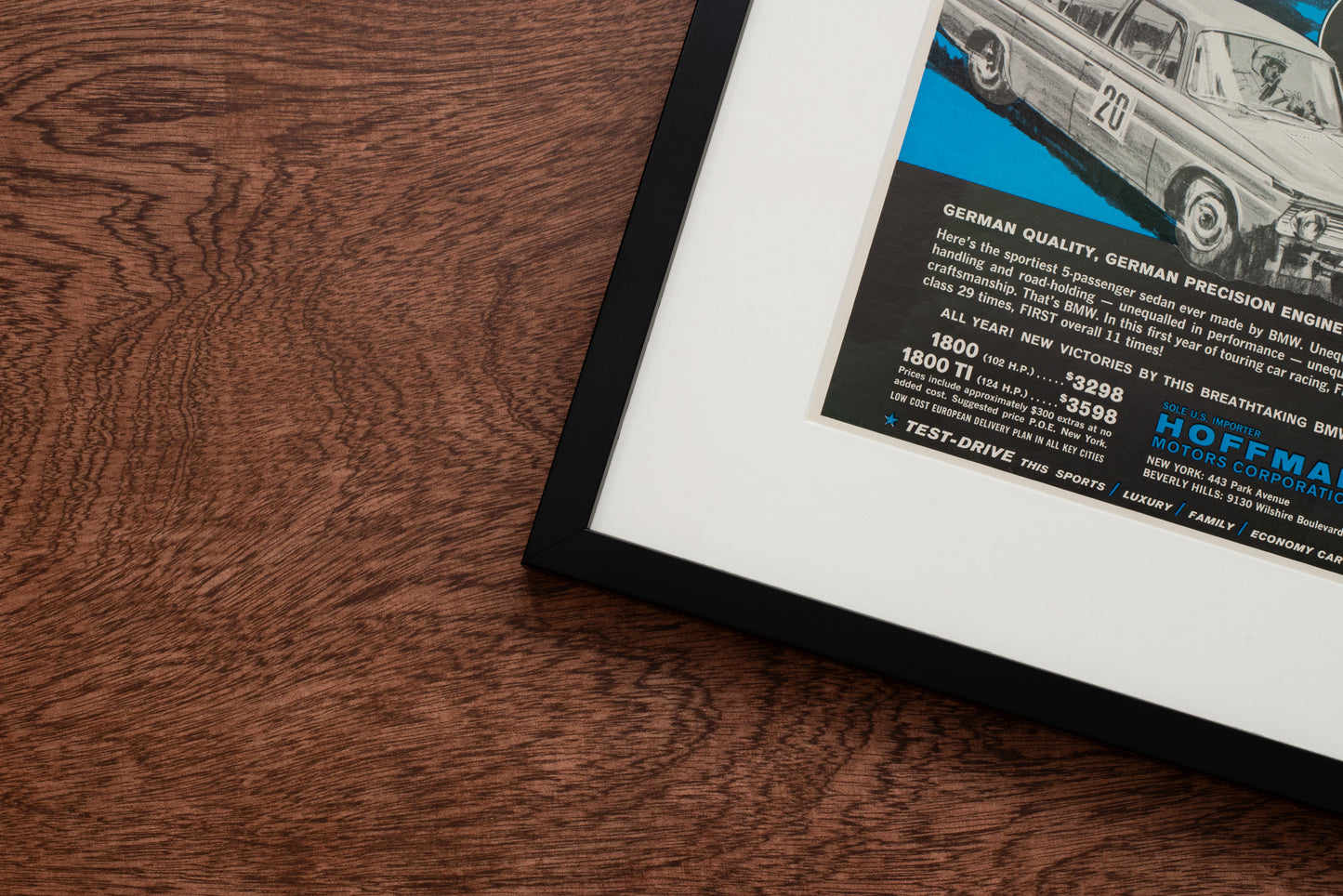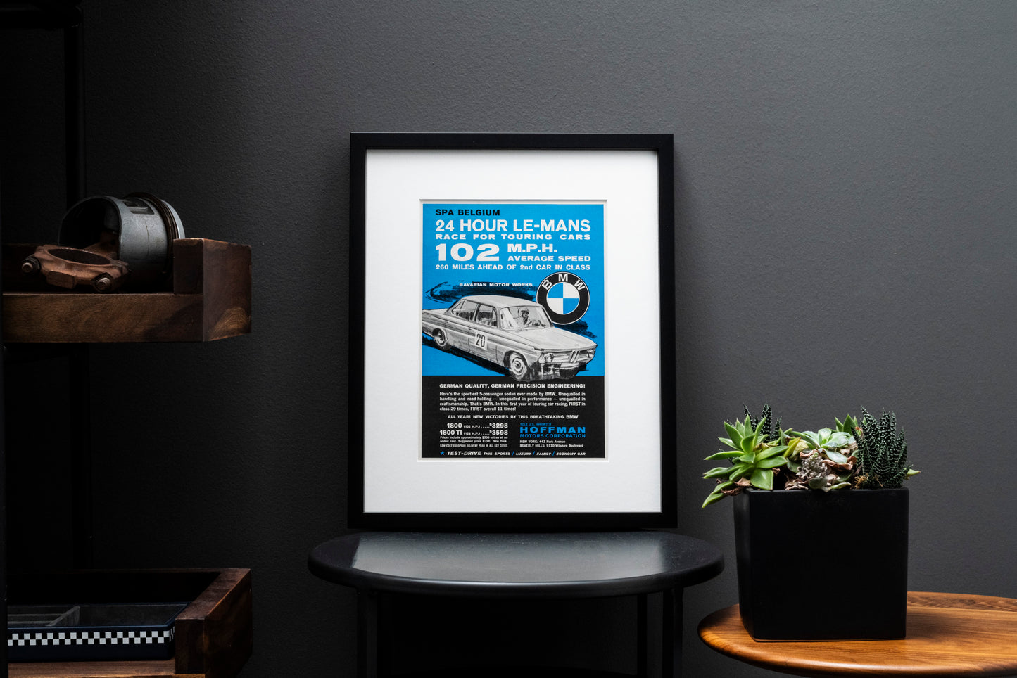 If you’re a vintage car enthusiast with a Bavarian bent, then this framed ad will fit right into any office, living room or garage. Don’t pass this up!