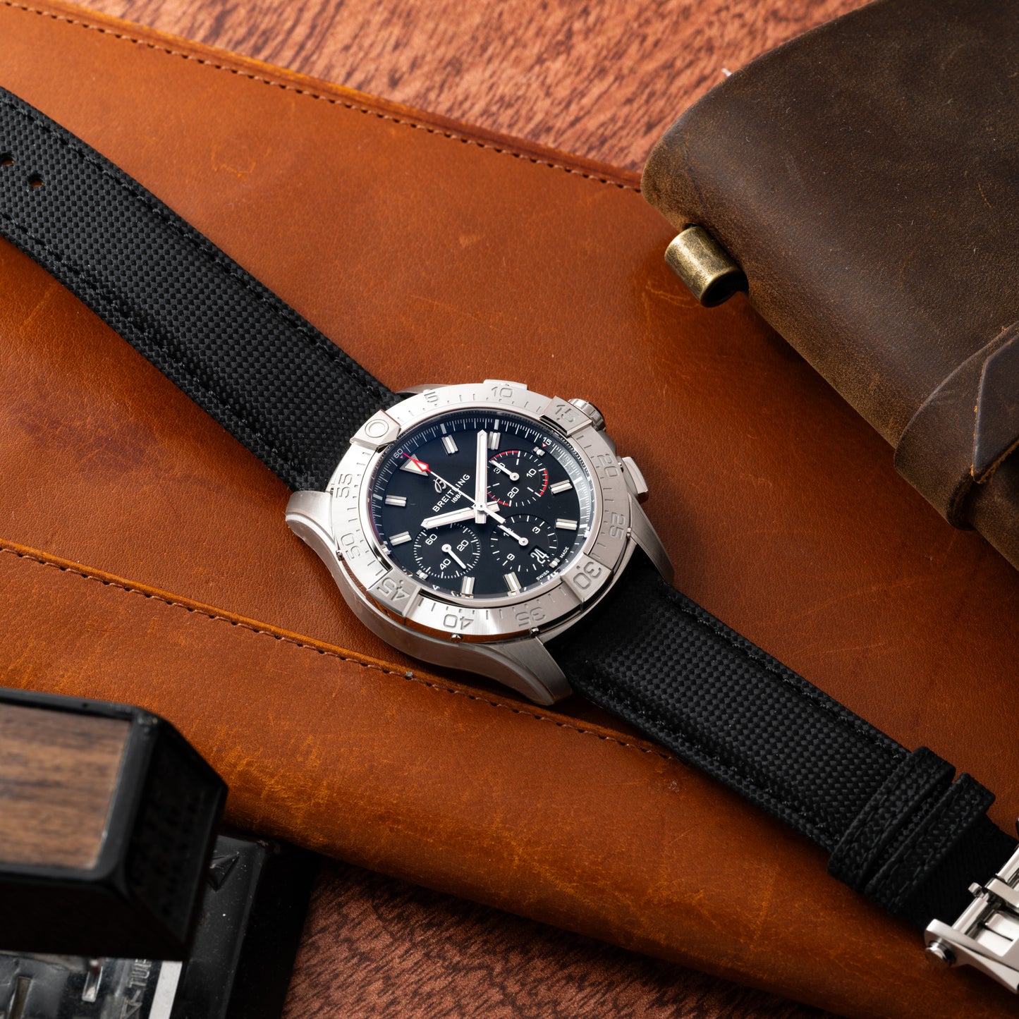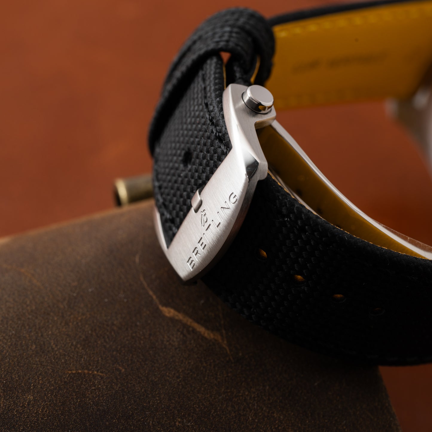 Powered by a COSC-certified automatic Calibre B01 movement from Breitling, it comes paired to a black strap.
