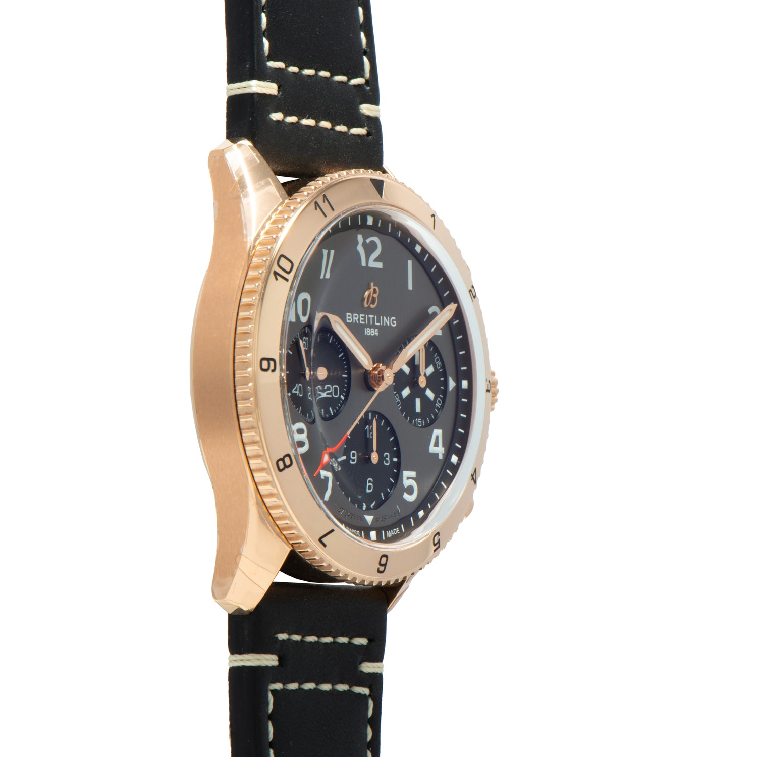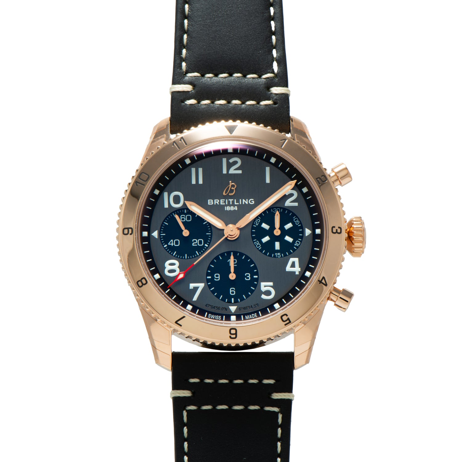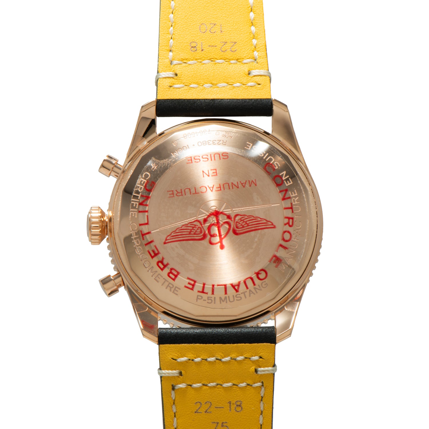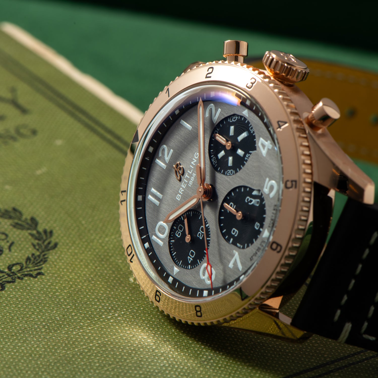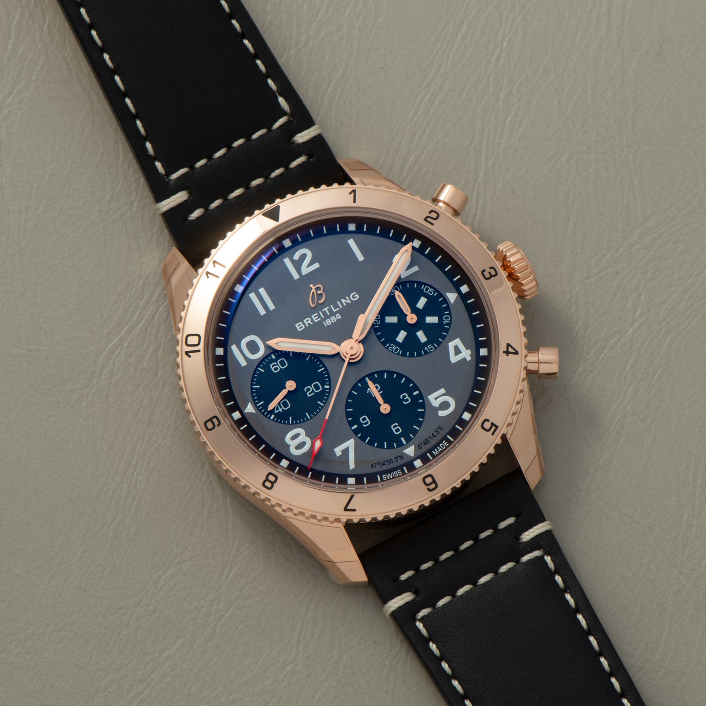 Within the watch, the Breitling Calibre 23 automatic movement with 48 hours of power reserve provides exceptional timekeeping, while a matching rose gold deployant clasp keeps the look cohesive and classy. With its knurled bezel and crisp pusher action, the Classic AVI Chronograph 42 P-51 Mustang is every bit the faithful tool watch, too.