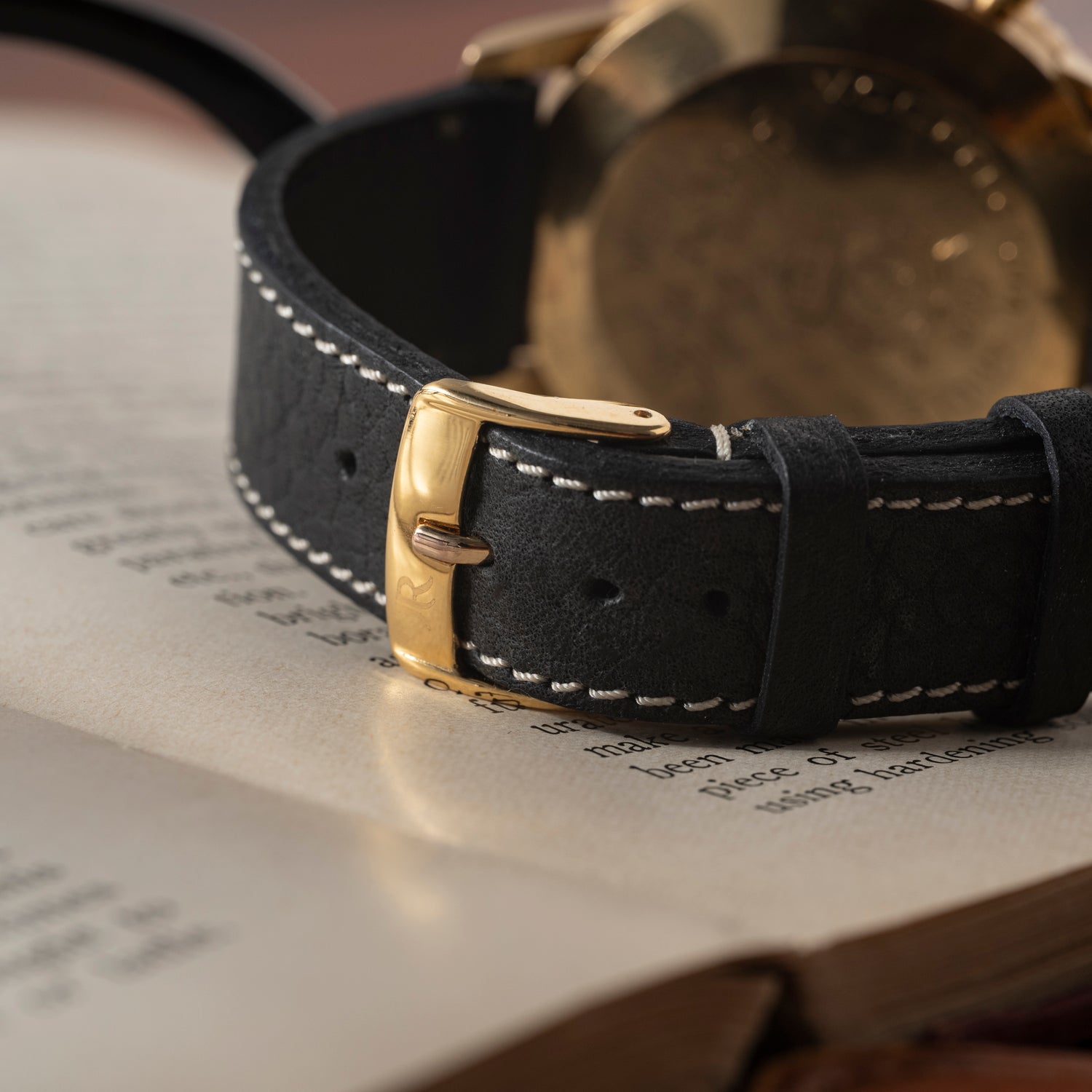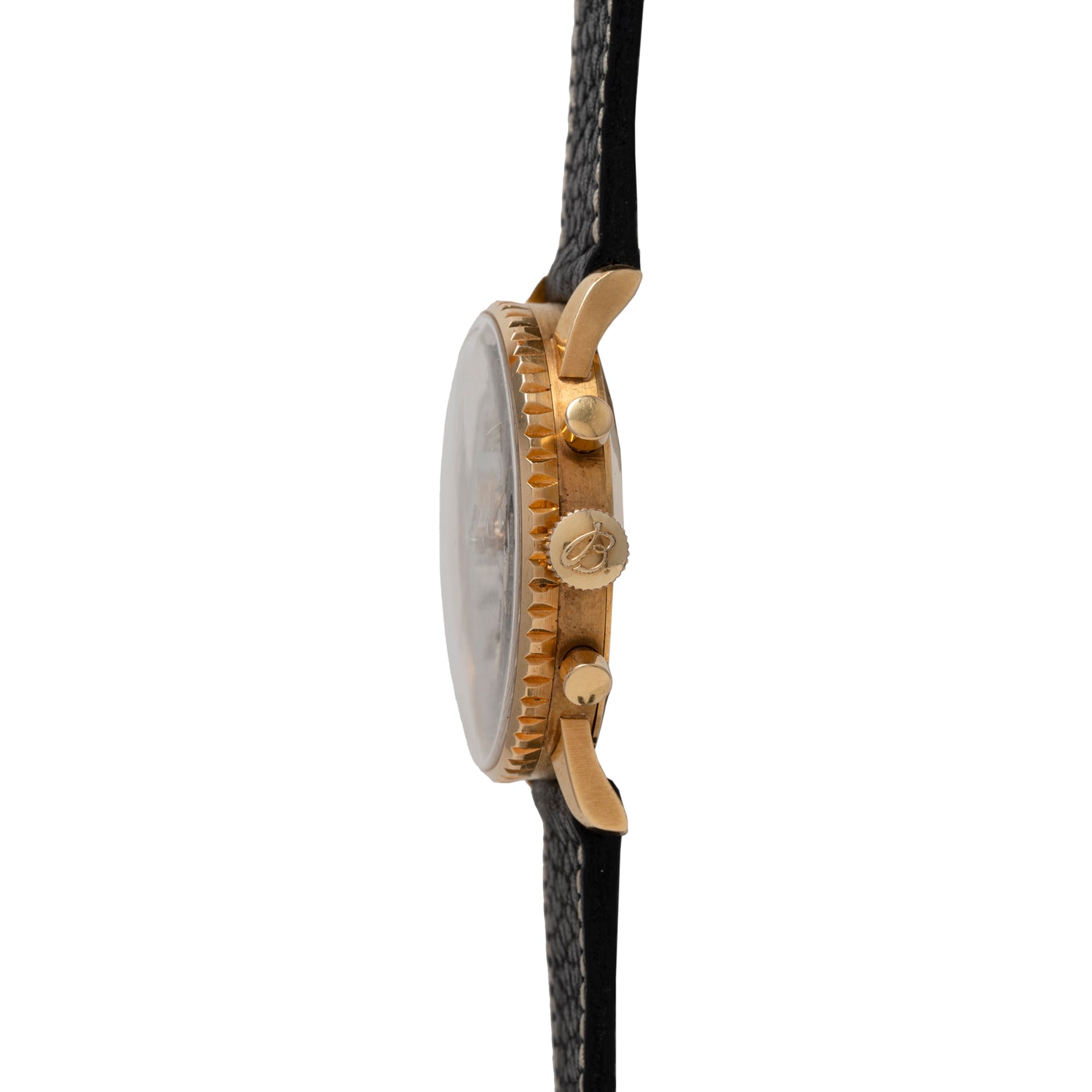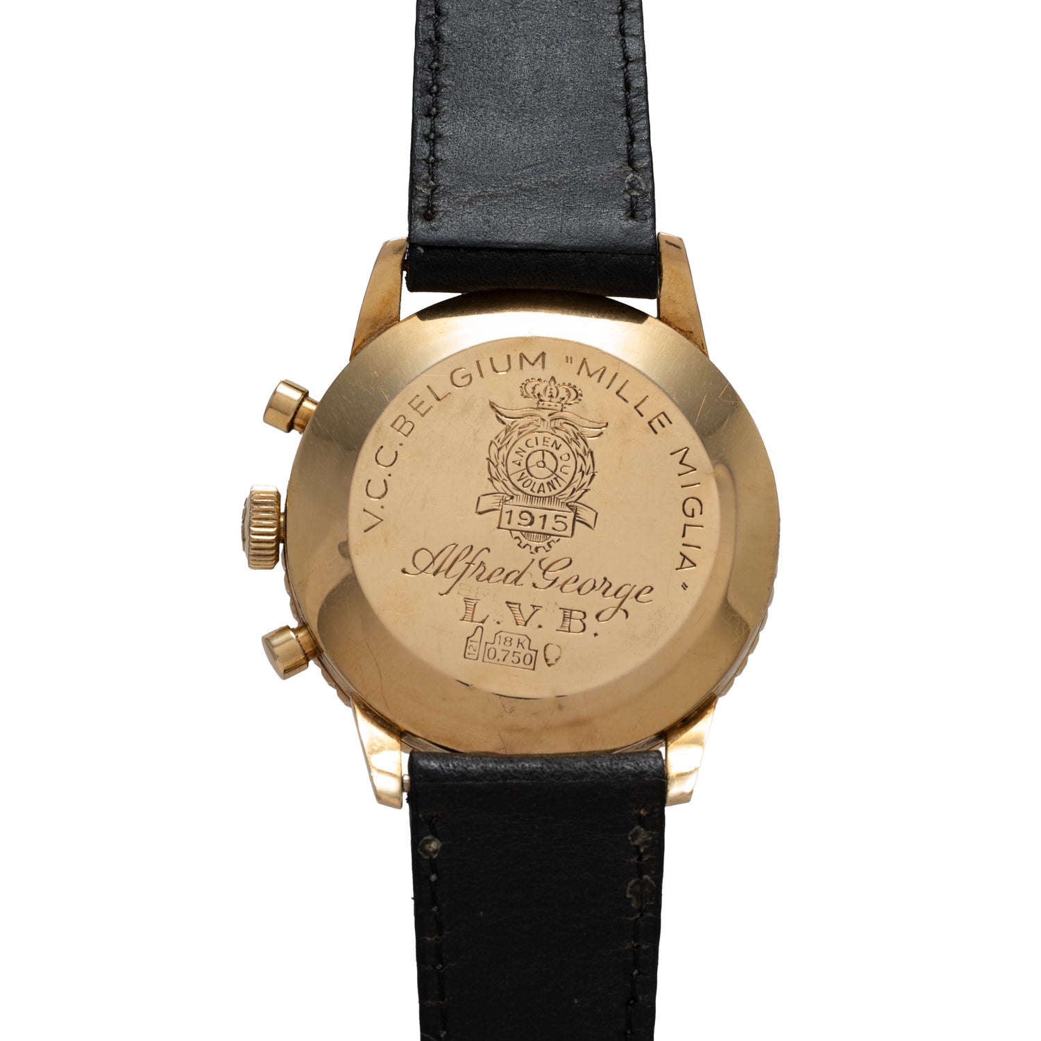 This particular Navitimer isn't your conventional piece though. One of only about 100 made in solid 18K gold, this piece dates to 1966 and was owned by a legendary car and watch enthusiast who belonged to the Royal Vintage Car Club Belgium. He participated in the Mille Miglia, and had the caseback of this piece engraved with all the details. Powering this piece is the Venus Calibre 178 in brilliant shape.