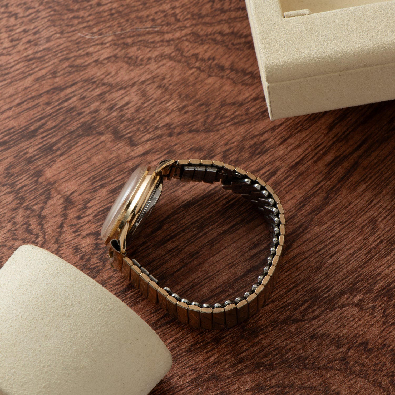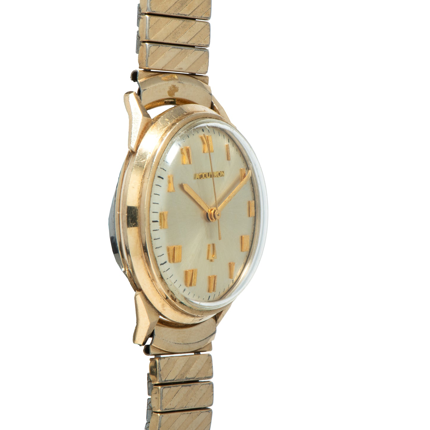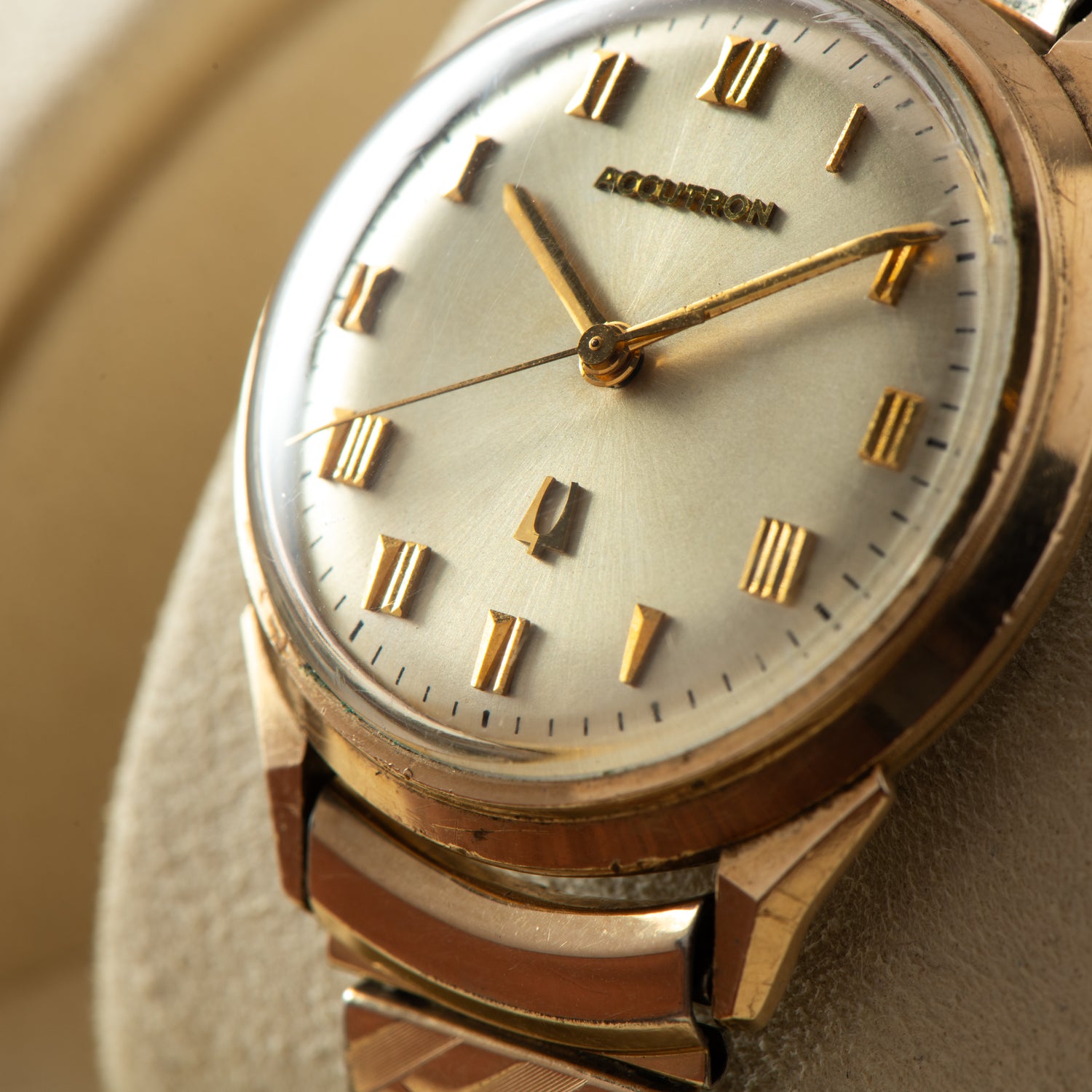 With its round 33mm, goldfilled case the Accutron Dog Leg is an incredibly cool model. This one features a stunning silver dial with applique indexes and central seconds.
