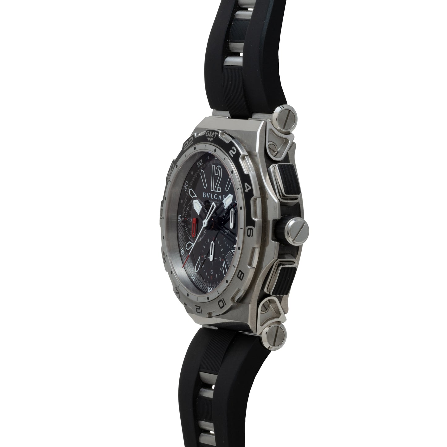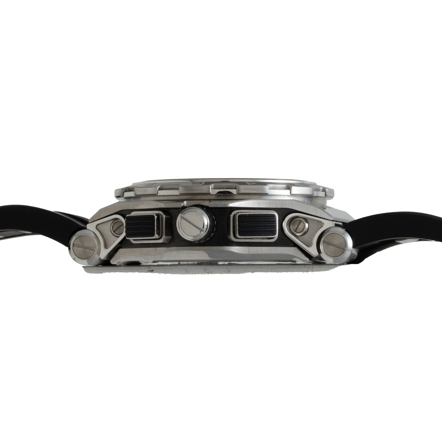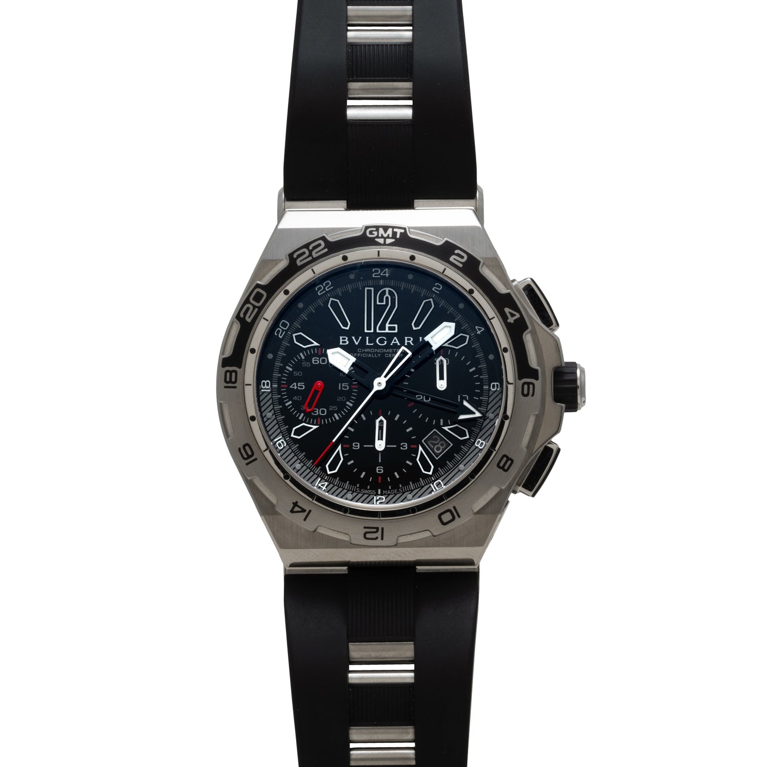 Take the GMT Diagono Professional Chronograph, for example: Dating to the 2010s, it’s housed in a 45mm stainless steel case with a sapphire crystal, a signed, black rubber strap, a luminous black dial and a subtle black GMT hand. This piece features arguably the two most useful complications--- a chronograph for all your timing needs, and a GMT for jetsetting. Powered by an automatic movement, the piece is completed with large pushers and substantial crown guards.