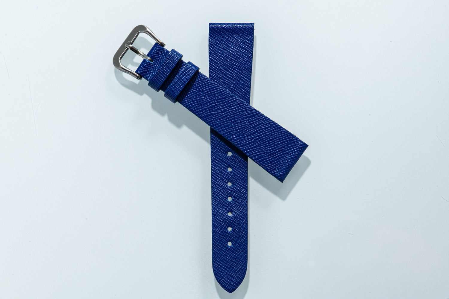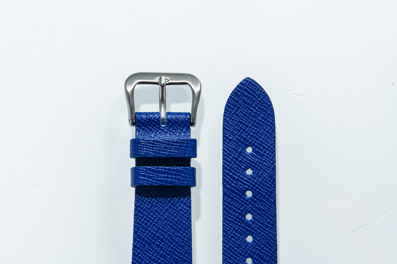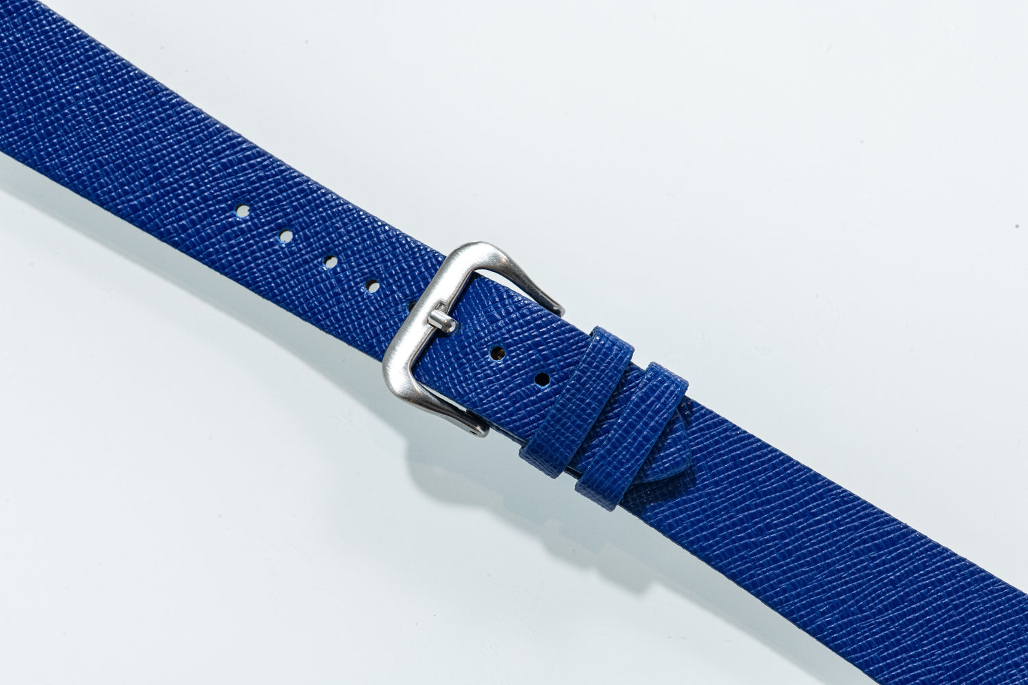 The Caribbean Blue II Saffiano Strap is produced in a vibrant blue that calls forth the endless blueness of warm tropical waters and endless summers- making for a great pairing with a variety of case materials and dial colors!