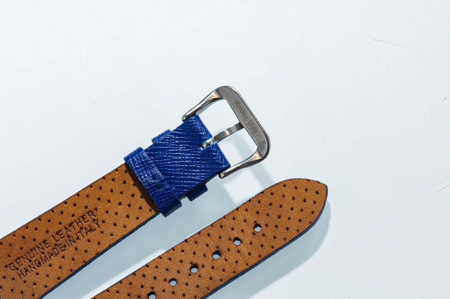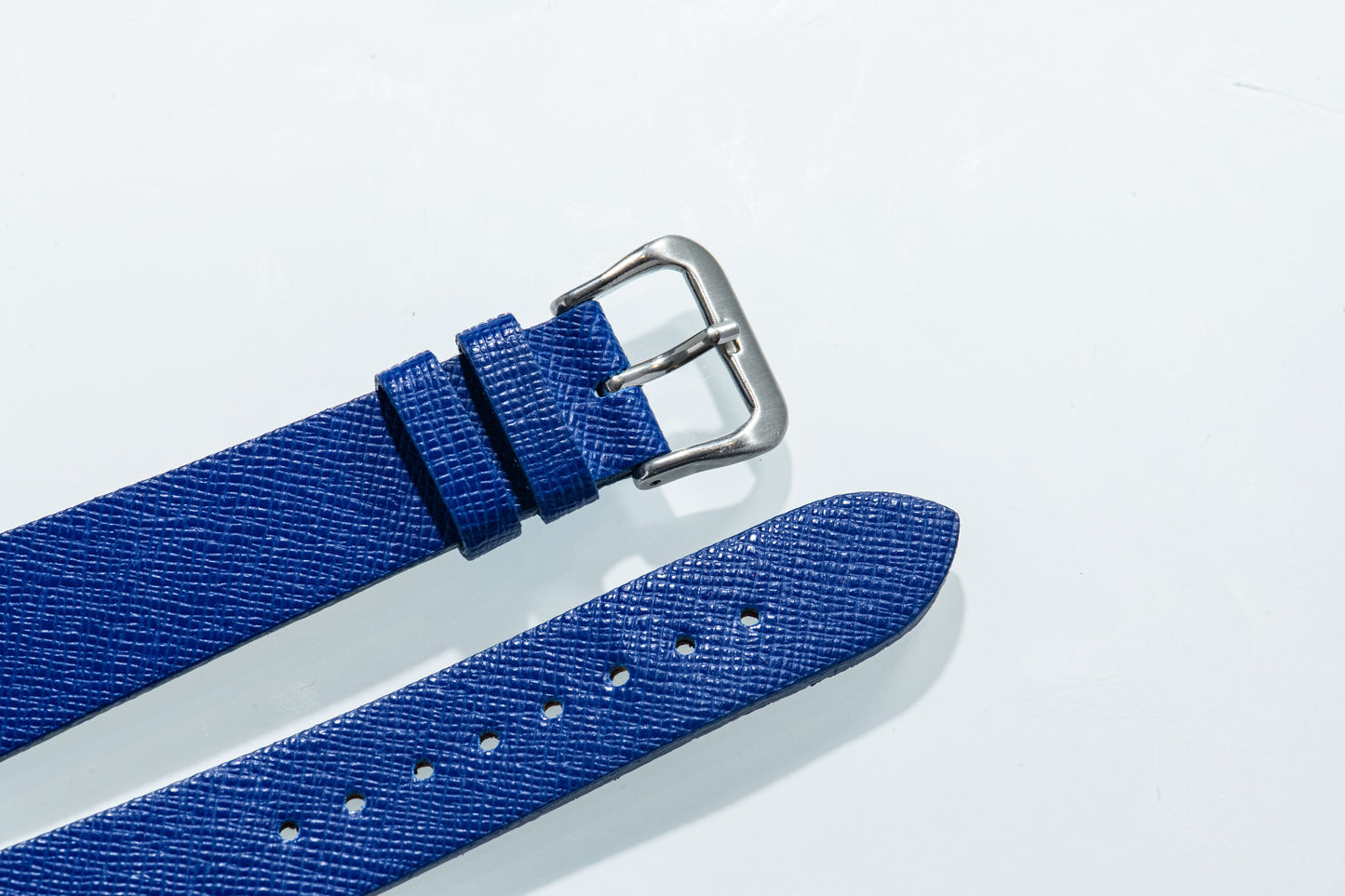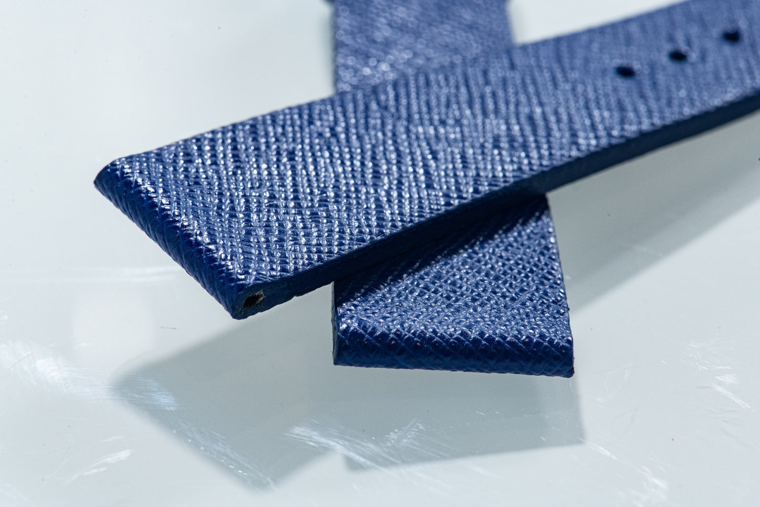 The Caribbean Blue II Saffiano Strap is produced in a vibrant blue that calls forth the endless blueness of warm tropical waters and endless summers- making for a great pairing with a variety of case materials and dial colors!