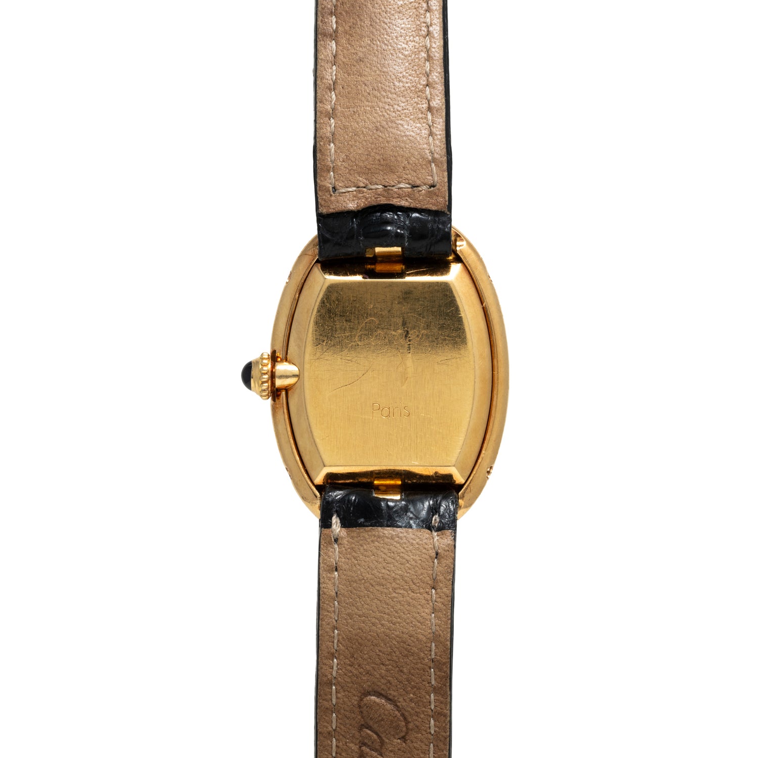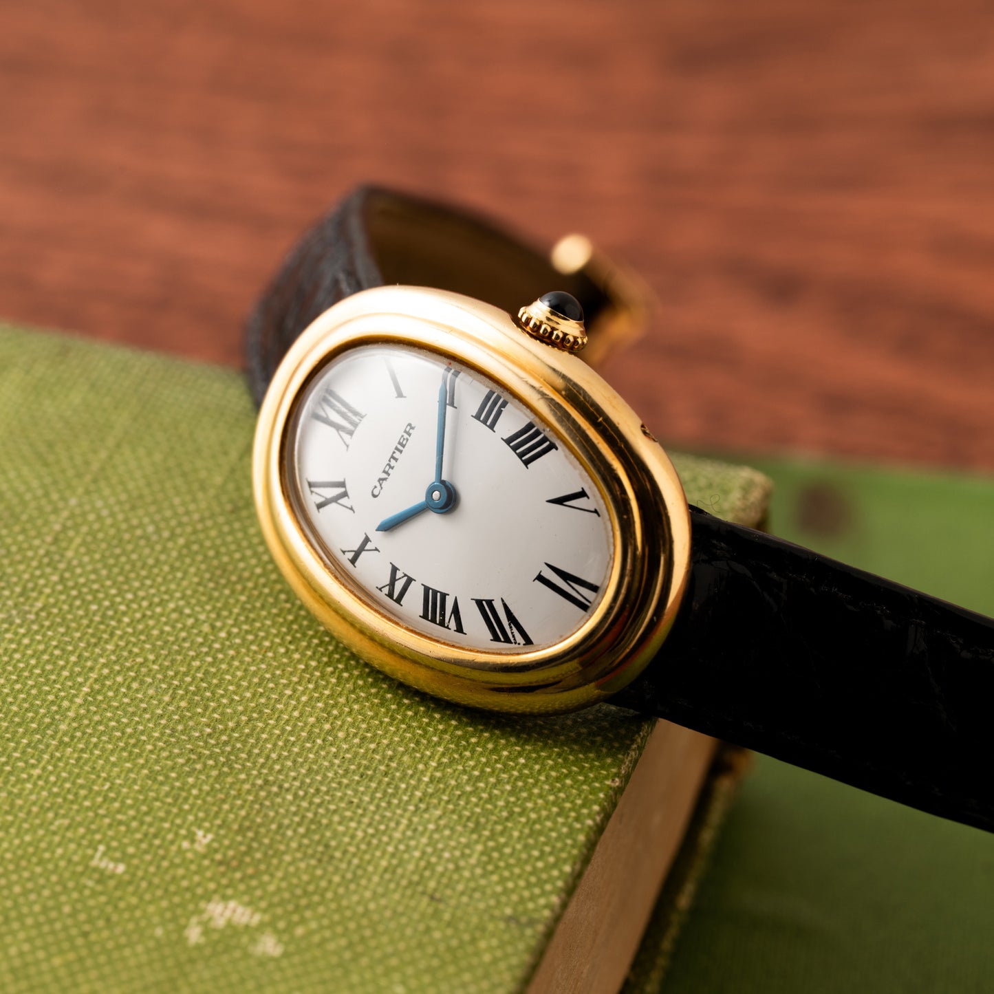 In spite of the unique design, this piece still preserves many of the details of classic Cartier we would hope to see: a Roman numeral dial, blued steel hands, petite Cartier logo, and more, all serve as a reminder that this piece is backed by a name with an unrivaled history for fine jewelry making, and yes, watchmaking too. Powered by a manually-wound movement, this piece is in excellent condition and awaits its next custodian’s wrist.