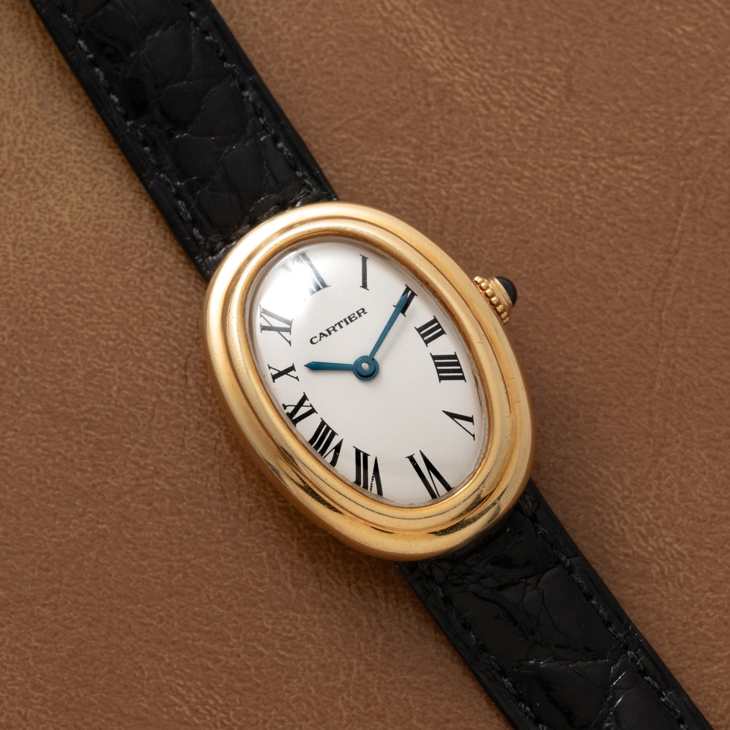 No watch better captures this philosophy than the Cartier Baignoire. This example features a beautiful case shape measuring 22mm in width, with its soft curves and oblong ellipse aesthetic. Paired with a beautiful 18K yellow gold deployant clasp, this watch is anything but boring, and provides an incredible host of details to obsess over.