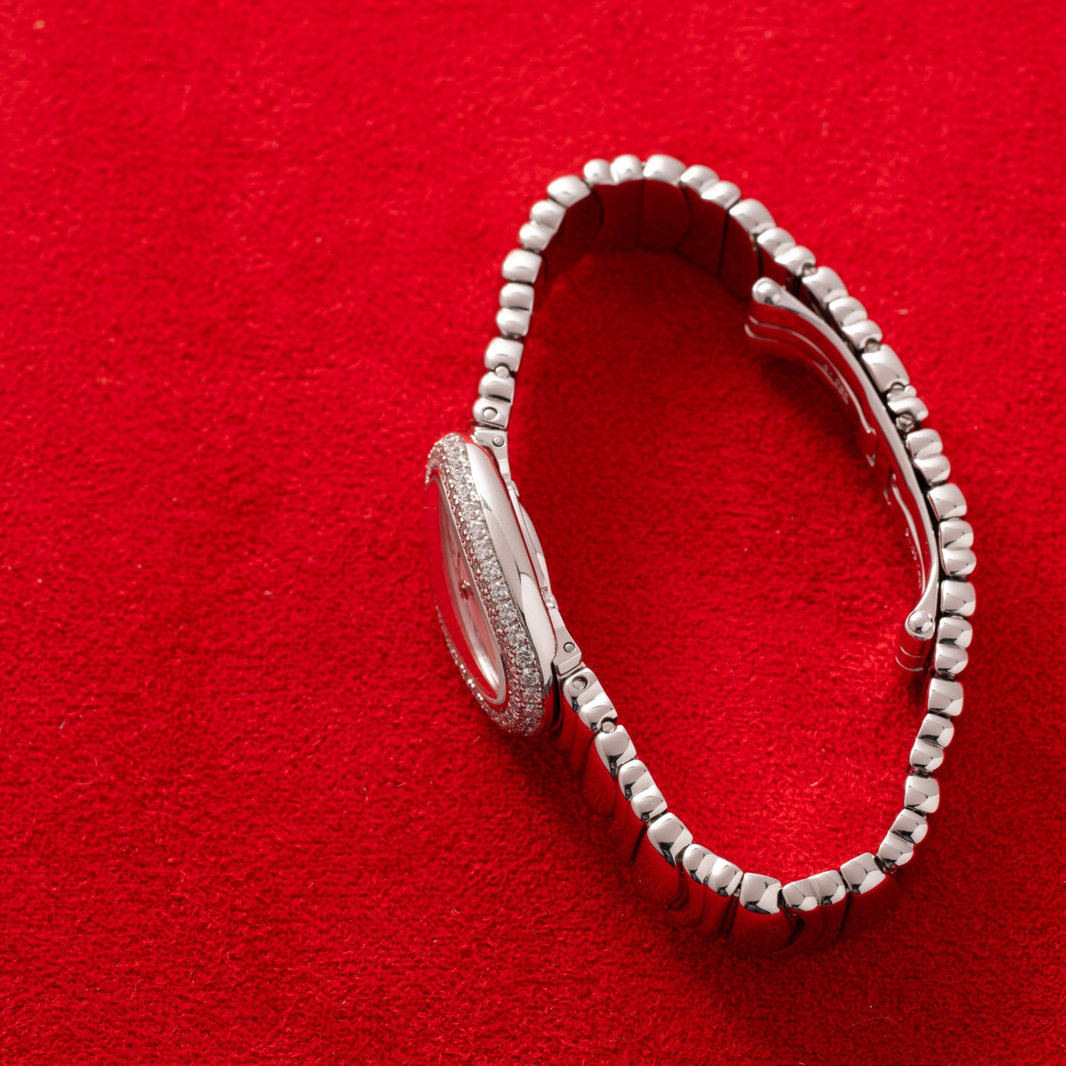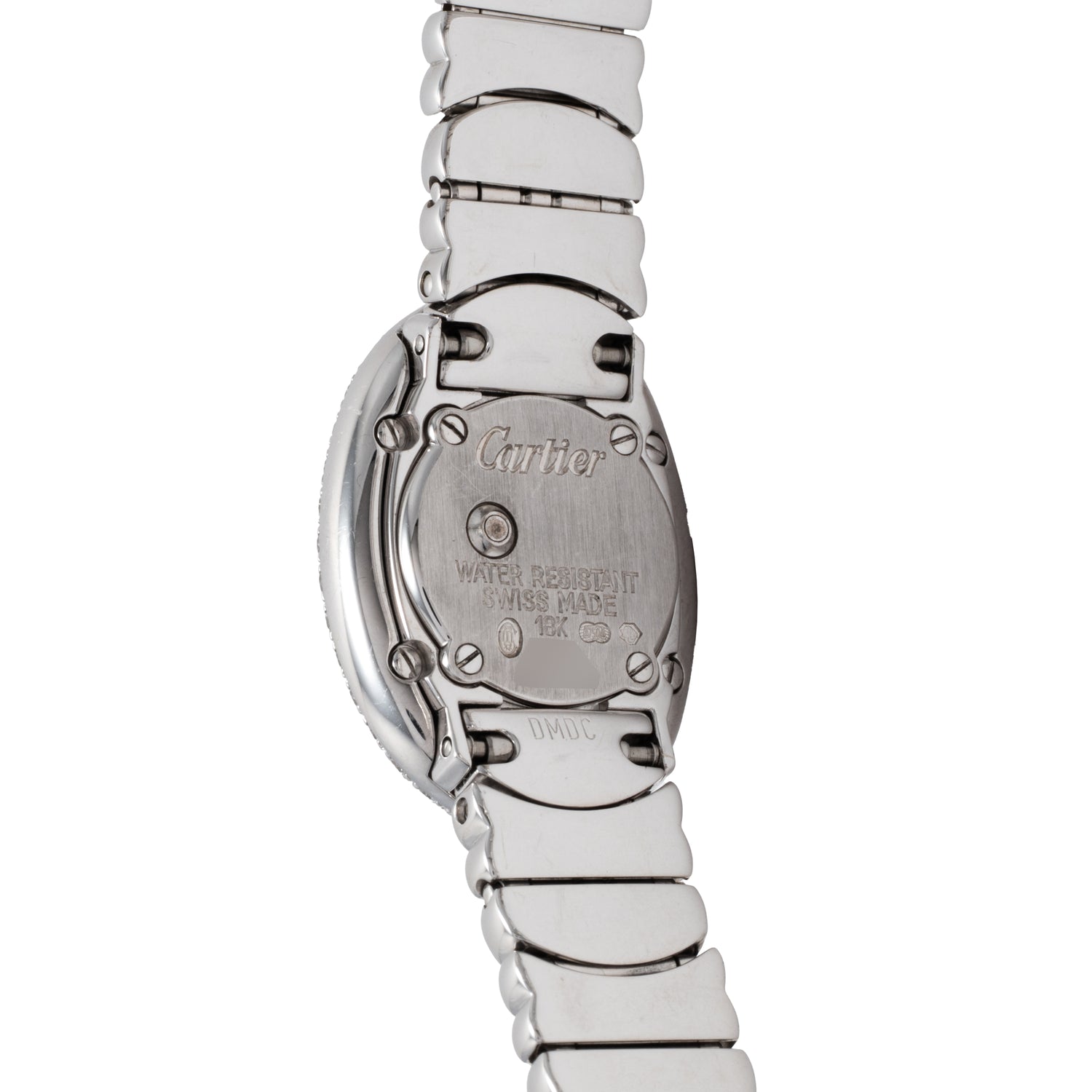 In spite of the unique design, this piece still preserves many of the details of classic Cartier we would hope to see: a Roman numeral dial, sword hands, petite Cartier logo, and more all serve as a reminder that this piece is backed by a name with an unrivaled history for fine jewelry making, and yes, watchmaking too. Powered by a quartz movement, this piece is in excellent condition and awaits its next custodian’s wrist.