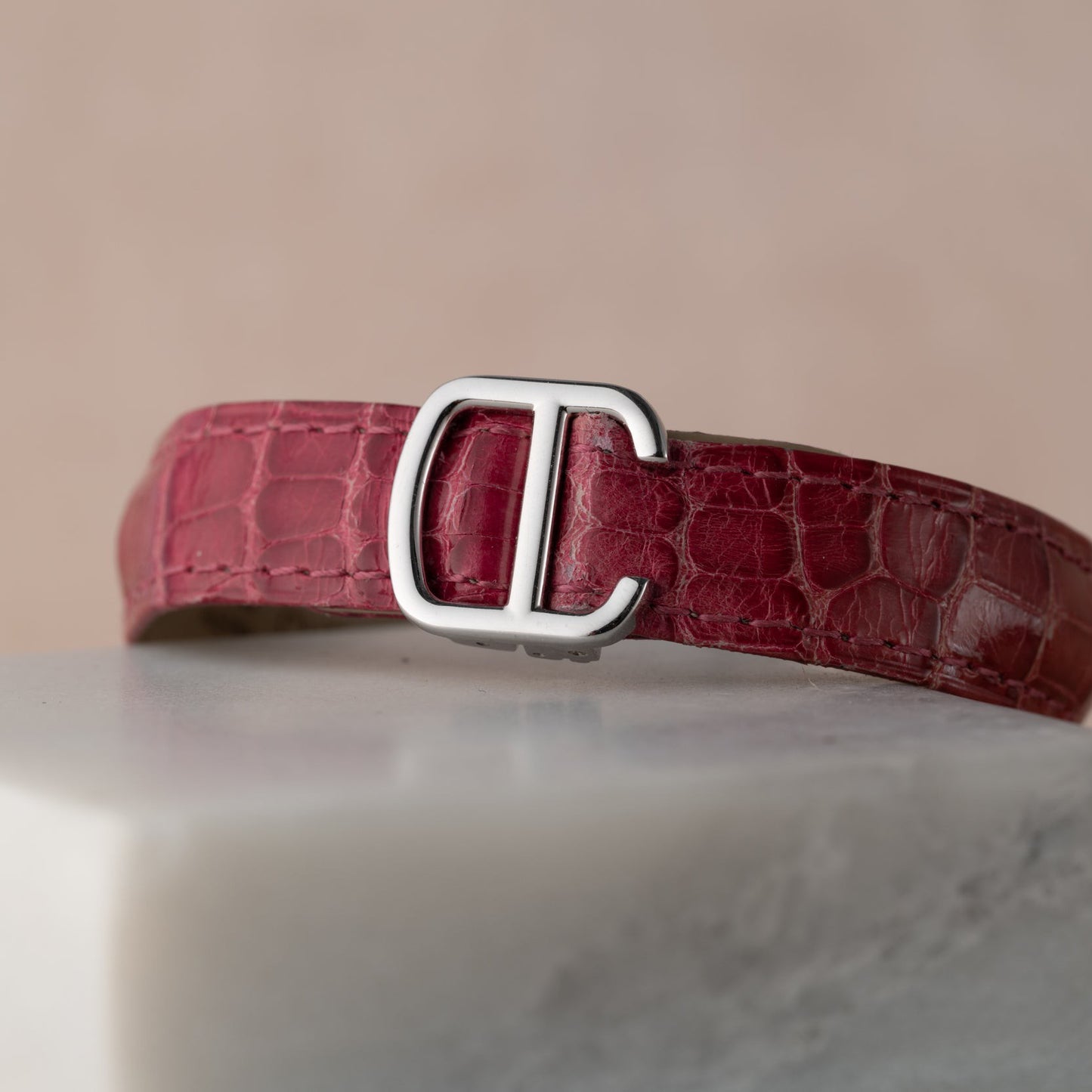 Powered by an automatic movement and paired to a pink/red alligator leather strap with a folding buckle, it’s in excellent condition and awaits its next custodian’s wrist!