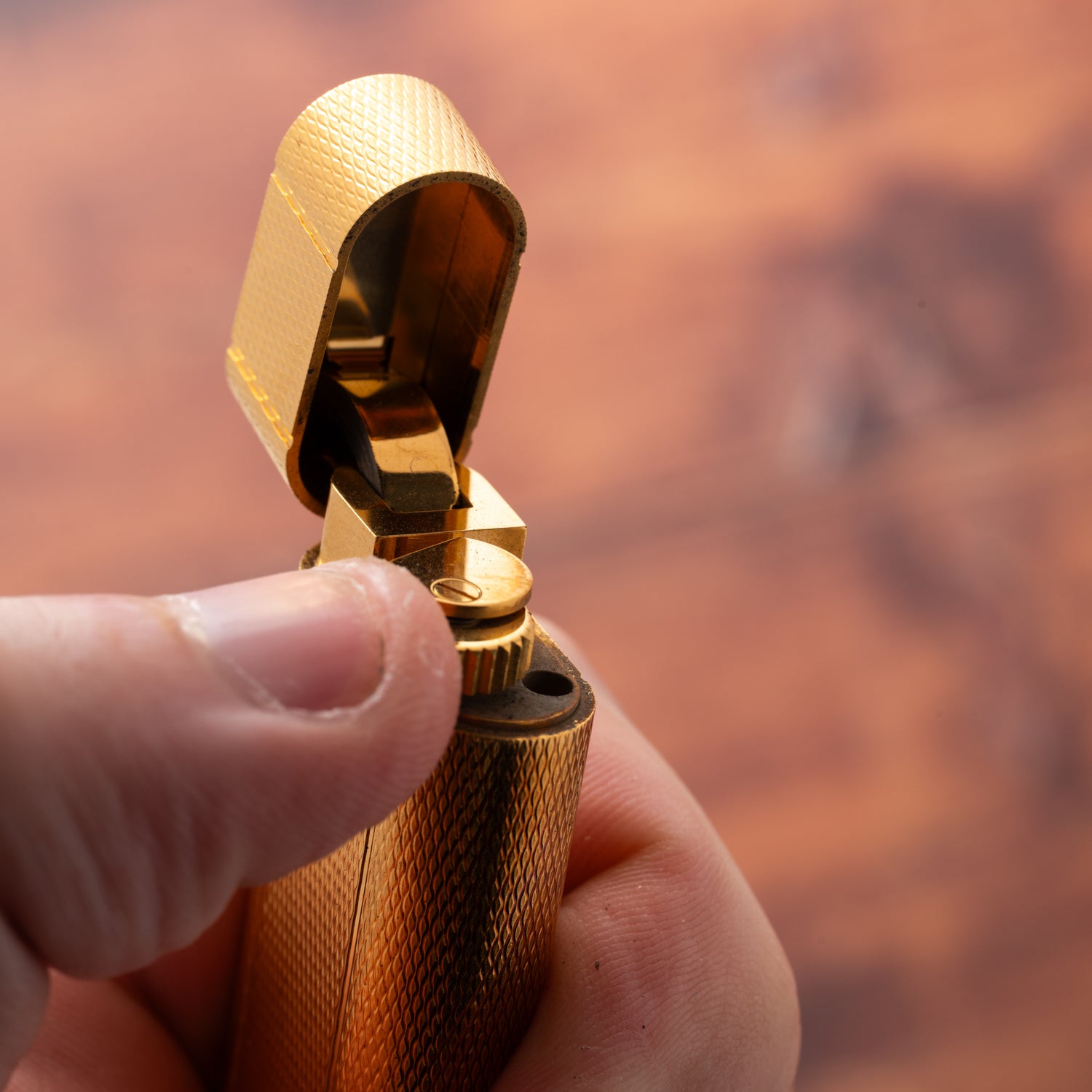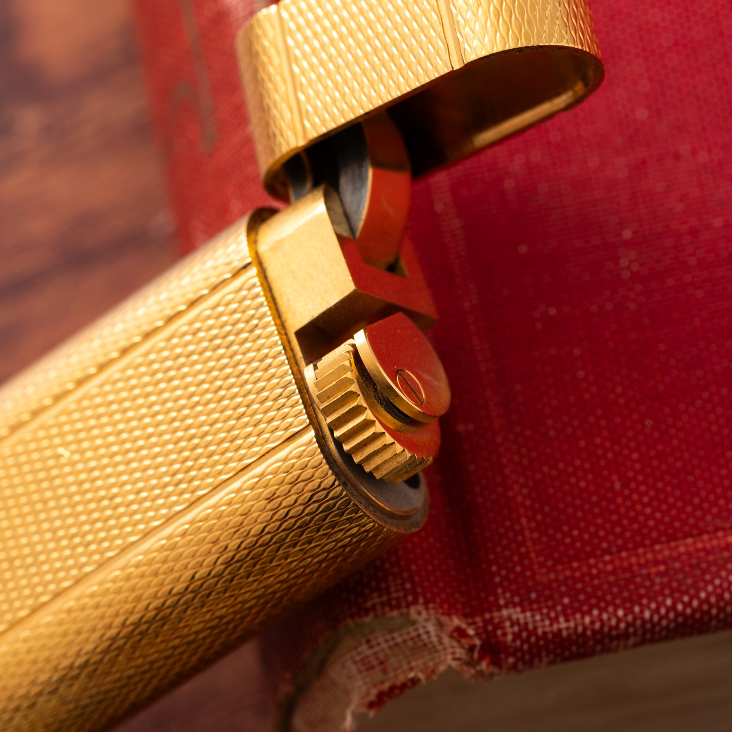 This particular find — a beautiful lighter — is perfect for the Cartier collector. Featuring an 18K gold-plated housing with a beautiful engraved pattern, it ships with its correct Must de Cartier Paris box and paperwork. Whether used for its intended purpose or to adorn a workspace, this handsome object is perfect for someone who appreciates Cartier's superb craftsmanship and design.