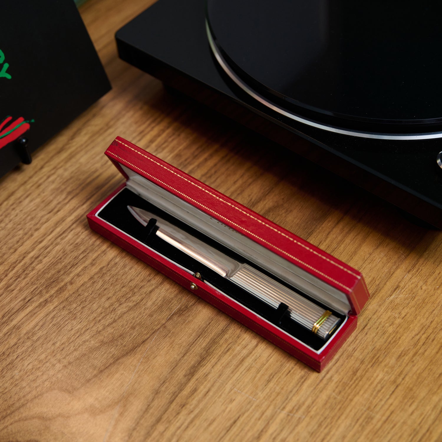 This vintage Cartier ‘Must de Cartier’ letter opener is one of our favorite finds to date! Made and France and featuring an attractive two-tone finish reminiscent of their famous watches, this 7.5" letter opener from the storied maison features sterling silver and gold plated construction with a polished blade and a grooved handle. It’s an incredibly charming object in hand and shows off its high craftsmanship throughout — we would expect nothing less from Cartier! As a cherry on top to it all, this piece includes its original red presentation box!