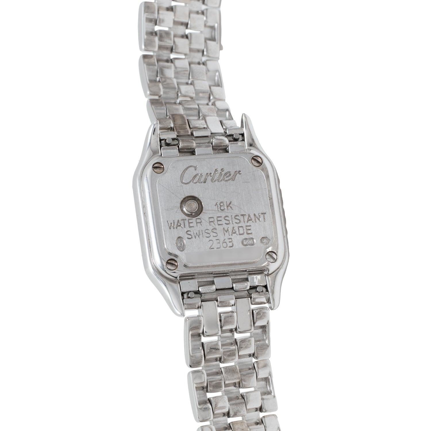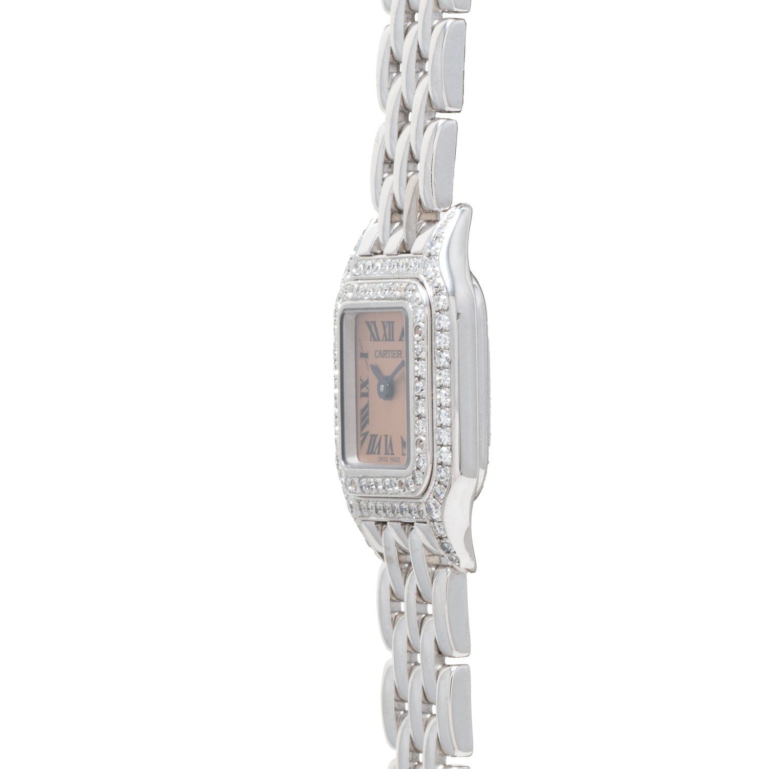 Powered by a quartz movement and paired to a matching, white gold multi-link bracelet, this svelte wristwatch is the very essence of Cartier: beautiful, elegant, and lasting.