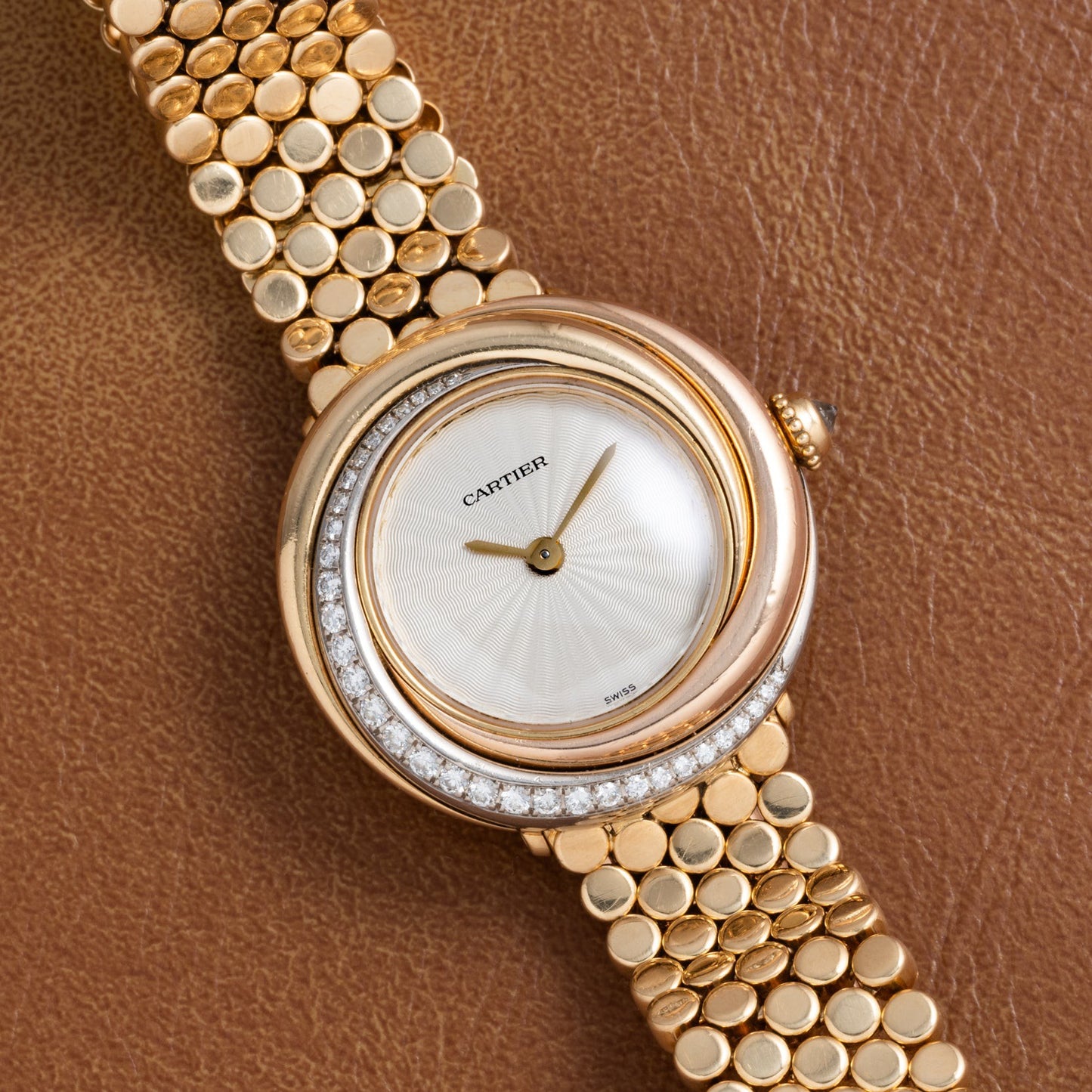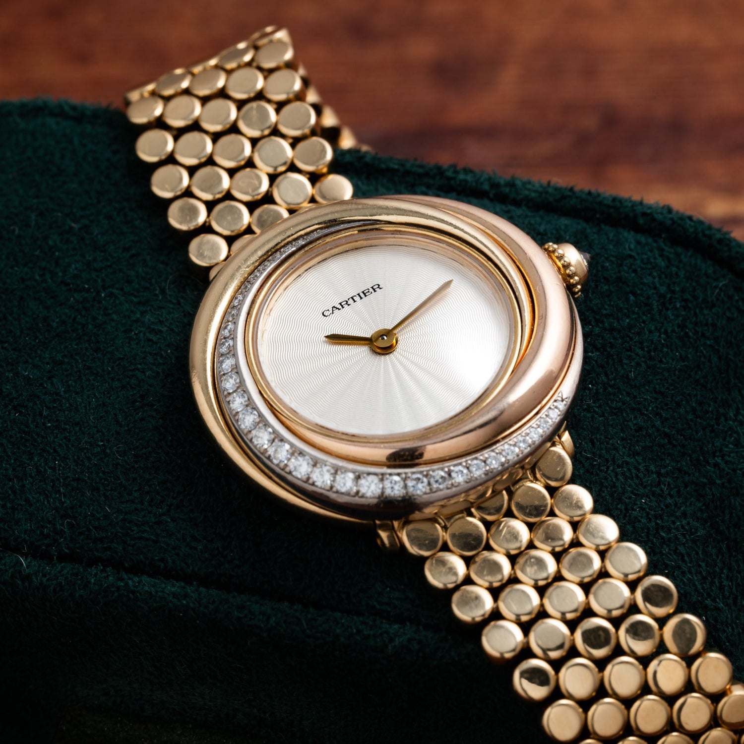 Take this 18K yellow gold Cartier Trinity for example. Classy– no doubt— but packing far more interest than your run-of-the-mill ladies offering. A guilloché dial, twisted bezel with factory-set diamonds, petite handset, gorgeous ‘pebble’ bracelet, this piece is beautiful and tasteful, but it is anything but boring. That’s the effortless balance we look for in high quality ladies watches.