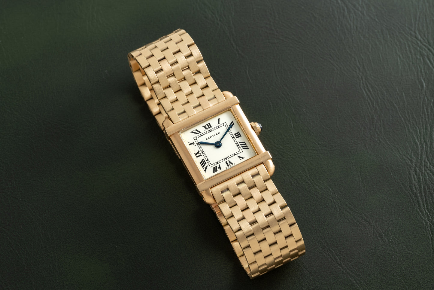 Cartier introduced the Tank in 1917 — which was supposedly inspired by the Renault FT-17 tanks seen on the battlefields of World War I — with a run of six pieces. (According to legend, these were given to American General John J. Pershing and his staff.) Cartier took the look of the Renault tank's treads and applied it to the watch’s lugs, which were integrated via brancards into the case itself. That first run of six pieces increased to thirty-three by 1920, and by the end of the 20th Century, that number stood well in the hundreds of thousands. Indeed, in sheer volume alone, the Tank — in all its various models — is Cartier's largest line of watches.