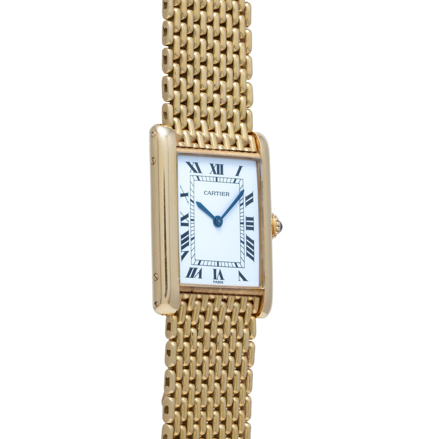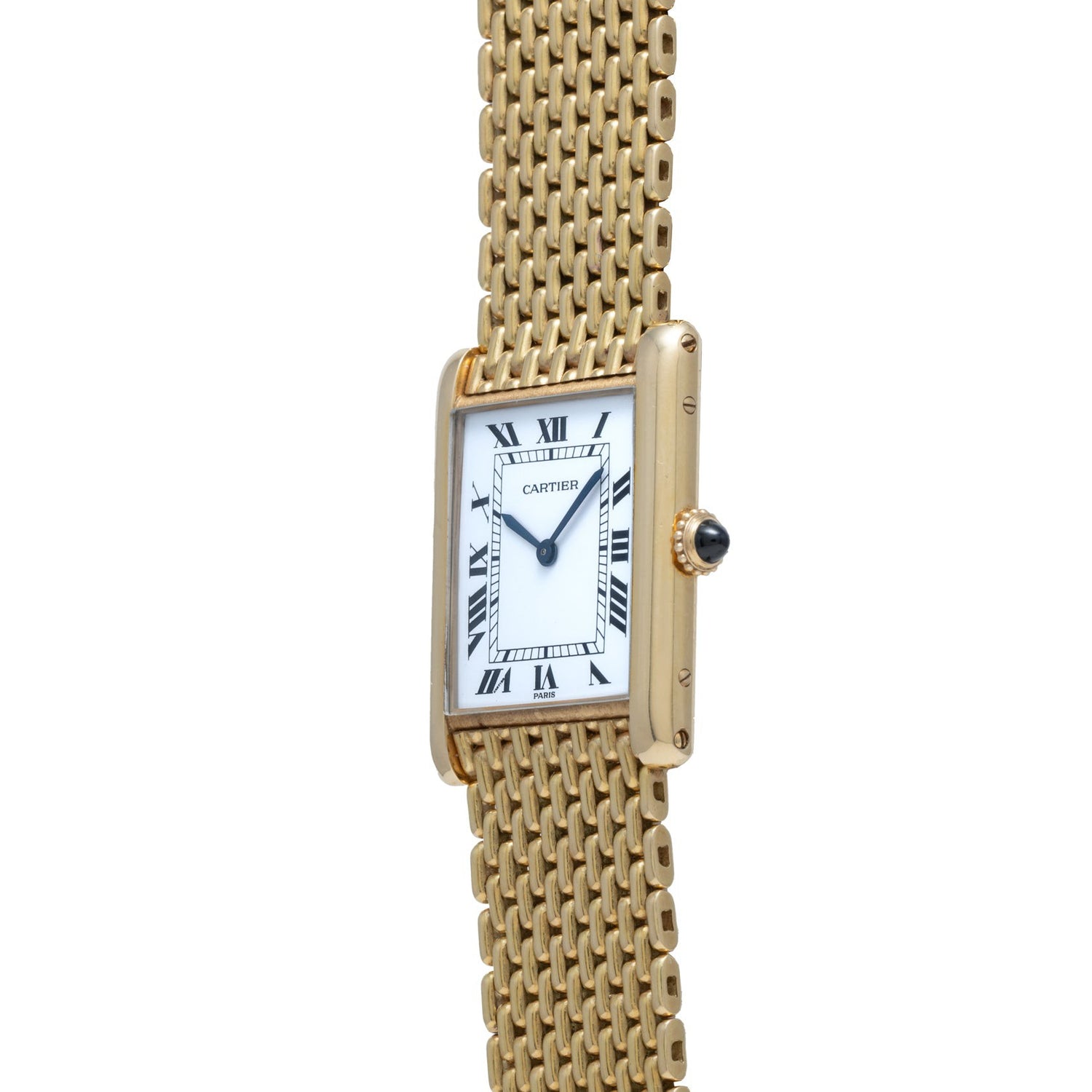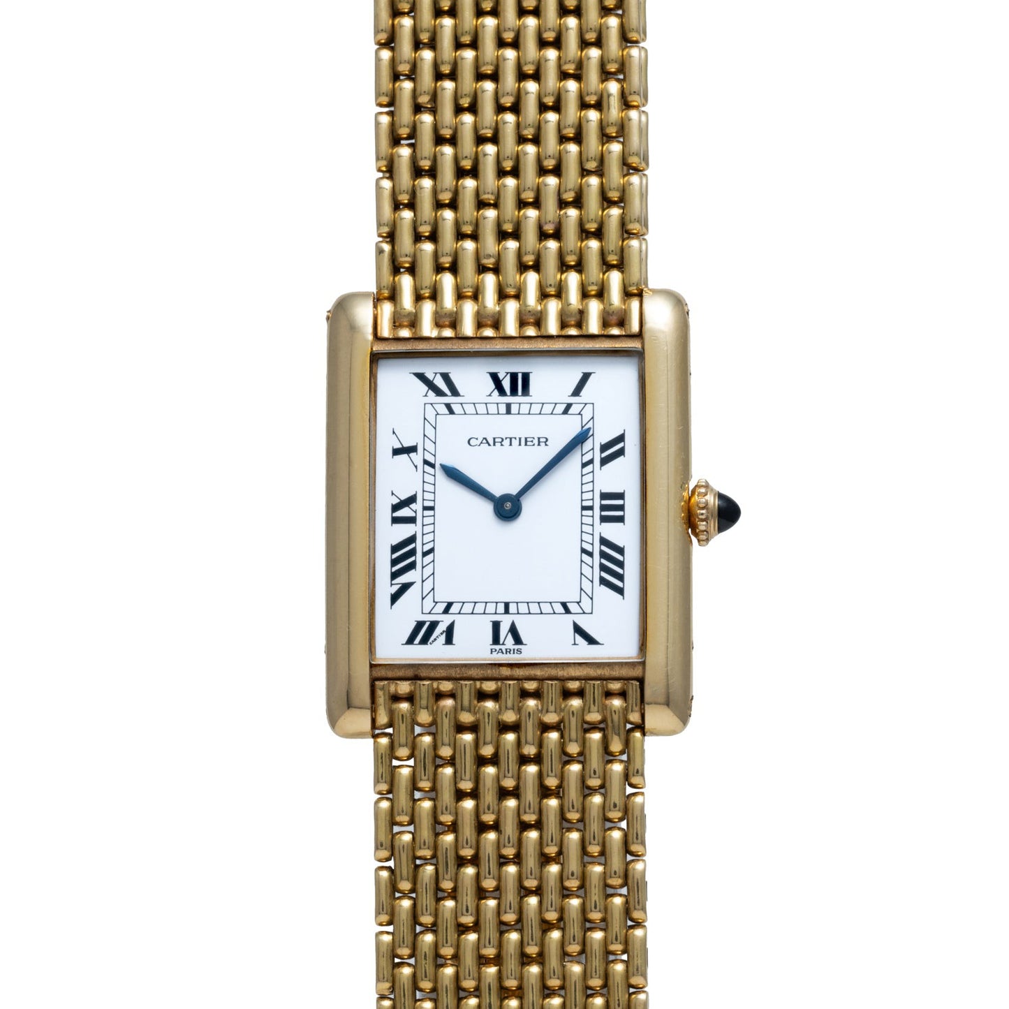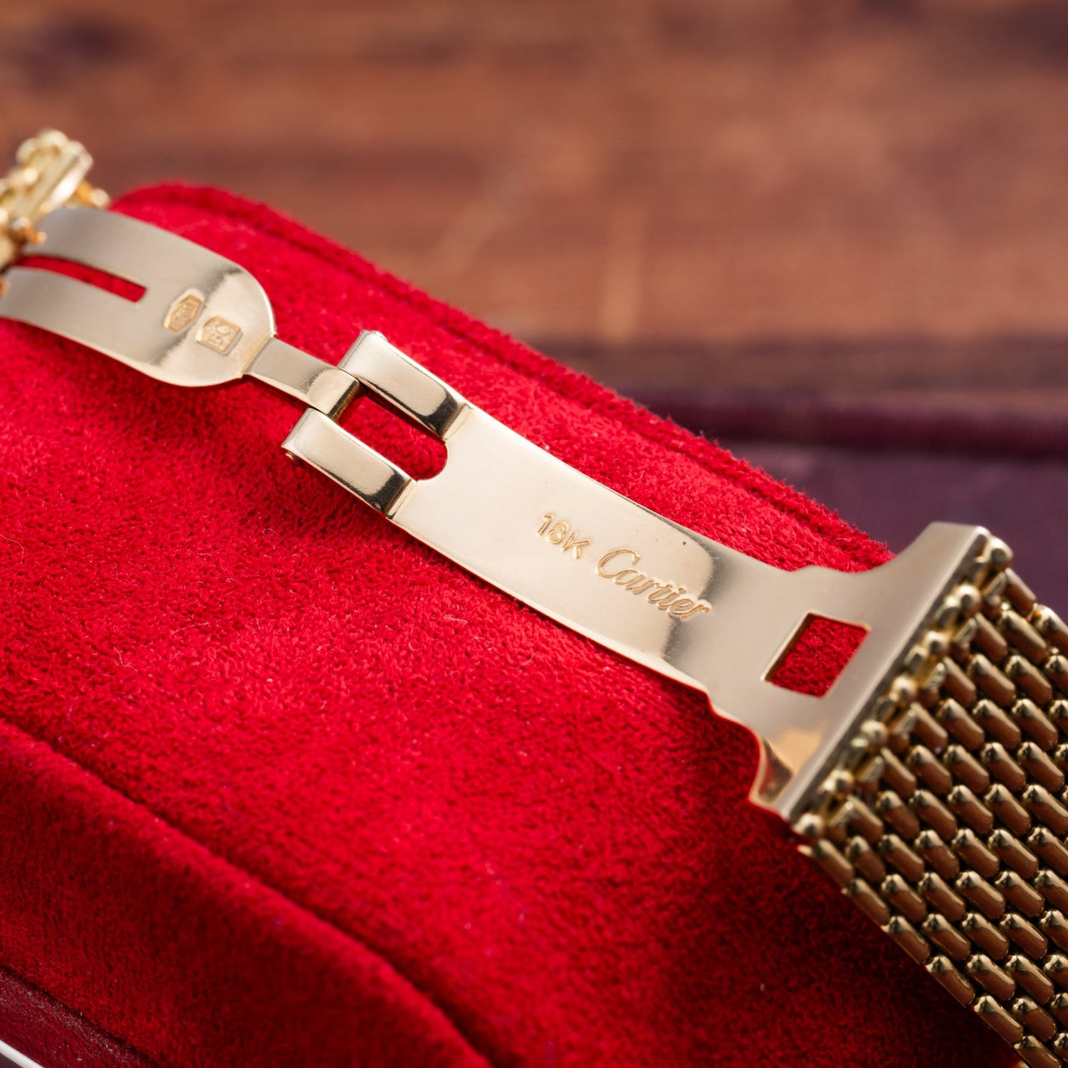 This particular Cartier Tank Louis is one with the coveted ‘Paris’ stamp on the dial. Modestly sized, as arguably all Tank Louis watches should be, this piece measures a classy 30mm x 24mm. It comes fitted with a highly covetable 'Milanese' style, 18K yellow gold bracelet with a signed deployant clasp.