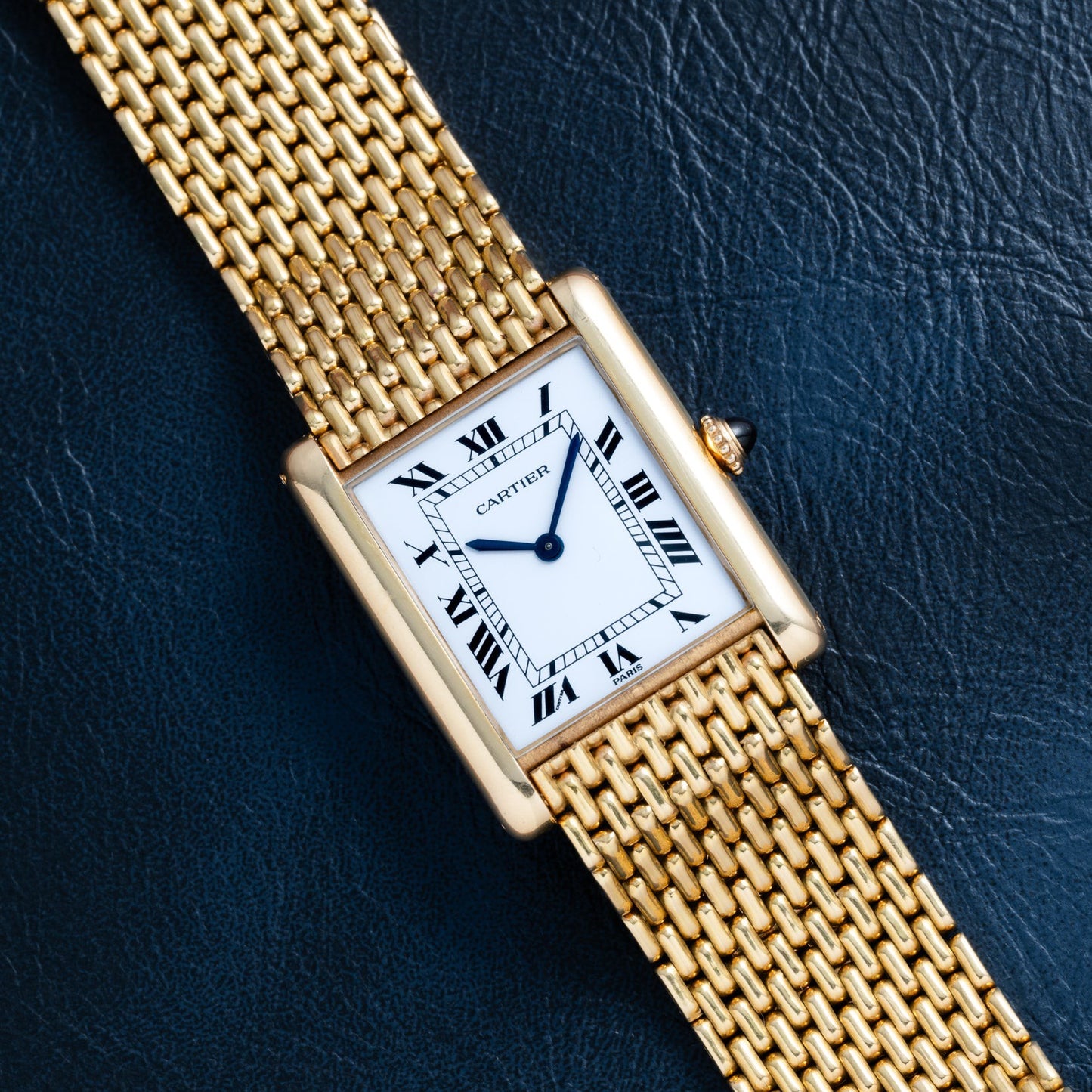 Cartier introduced the Tank in 1917 — which was supposedly inspired by the Renault FT-17 tanks seen on the battlefields of World War I — with a run of six pieces. (According to legend, these were given to American General John J. Pershing and his staff.) Cartier took the look of the Renault tank's treads and applied it to the watch’s lugs, which were integrated via brancards into the case itself. That first run of six pieces increased to thirty-three by 1920, and by the end of the 20th Century, that number stood well in the hundreds of thousands. Indeed, in sheer volume alone, the Tank — in all its various models — is Cartier's largest line of watches.