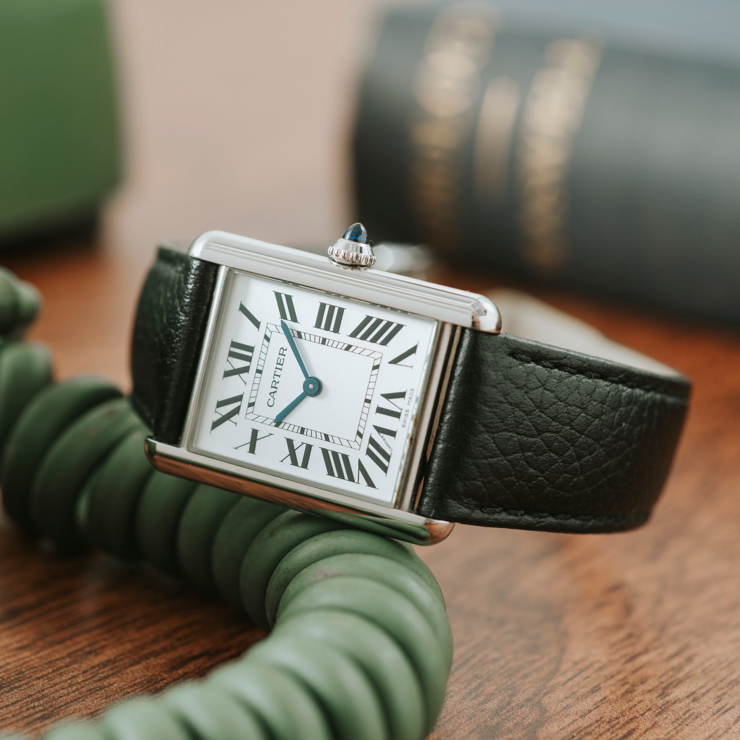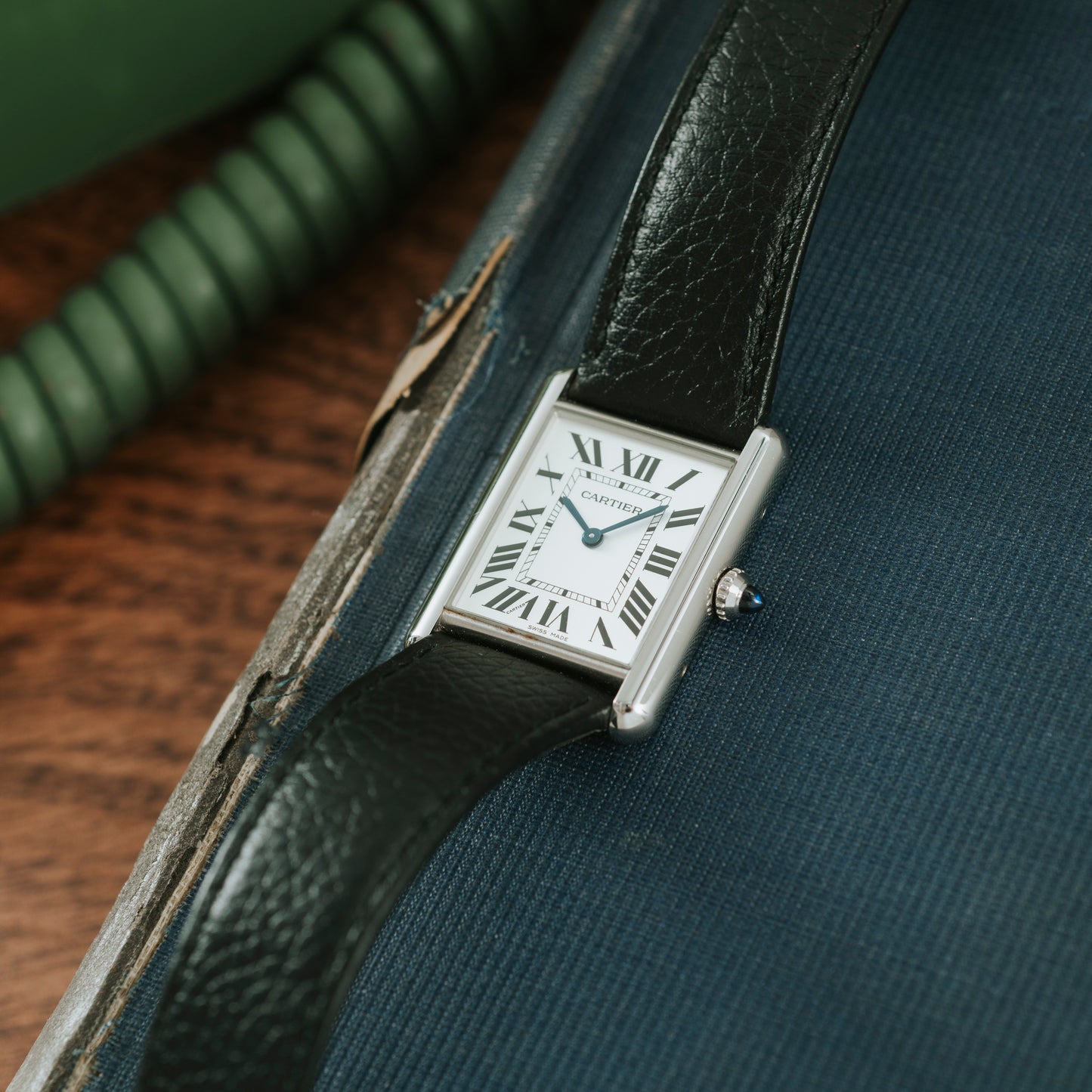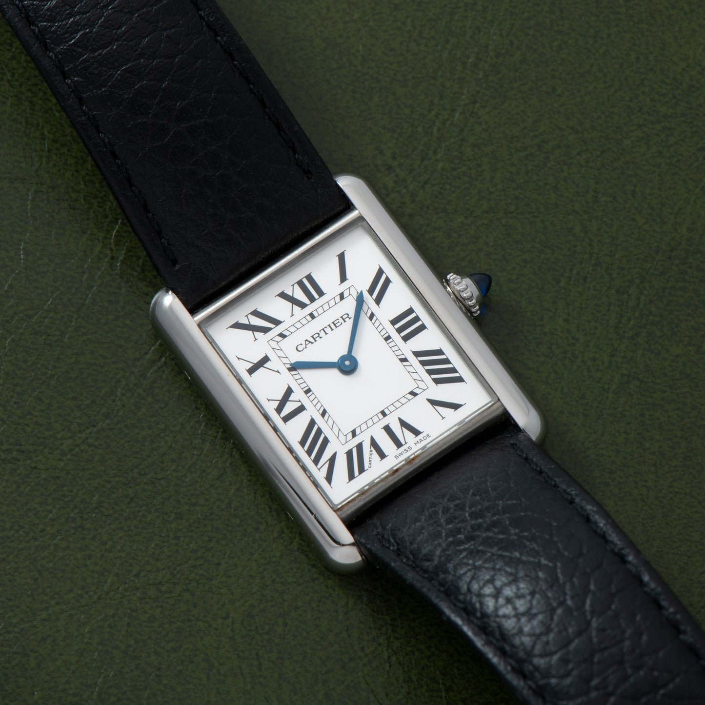 Powered by a high-autonomy quartz movement from Cartier and paired to a signed, black grained calfskin leather strap with a steel pin buckle, this Tank ‘must’ be one of the best releases from the King of Jewelers released in the past ten years. Furthermore, it comes with its factory goodies.