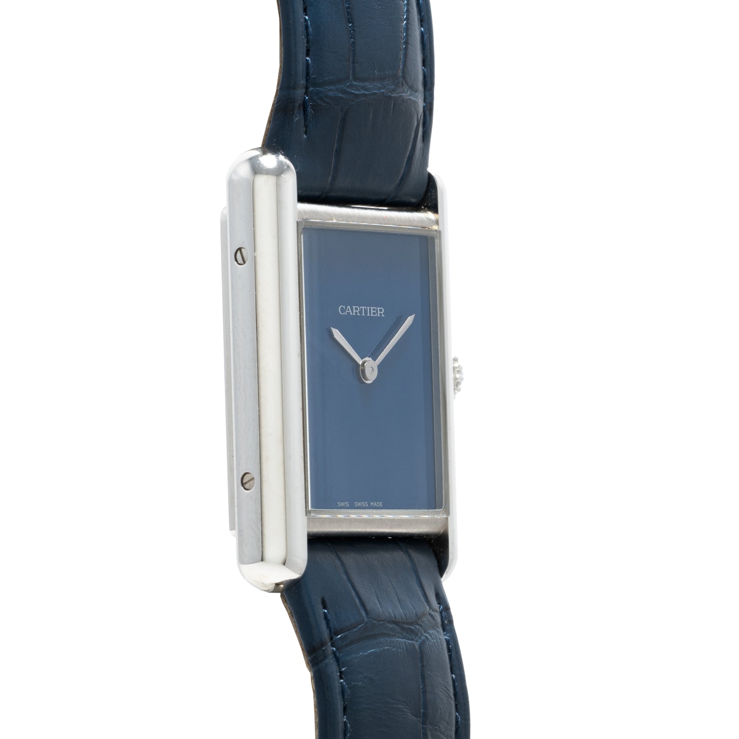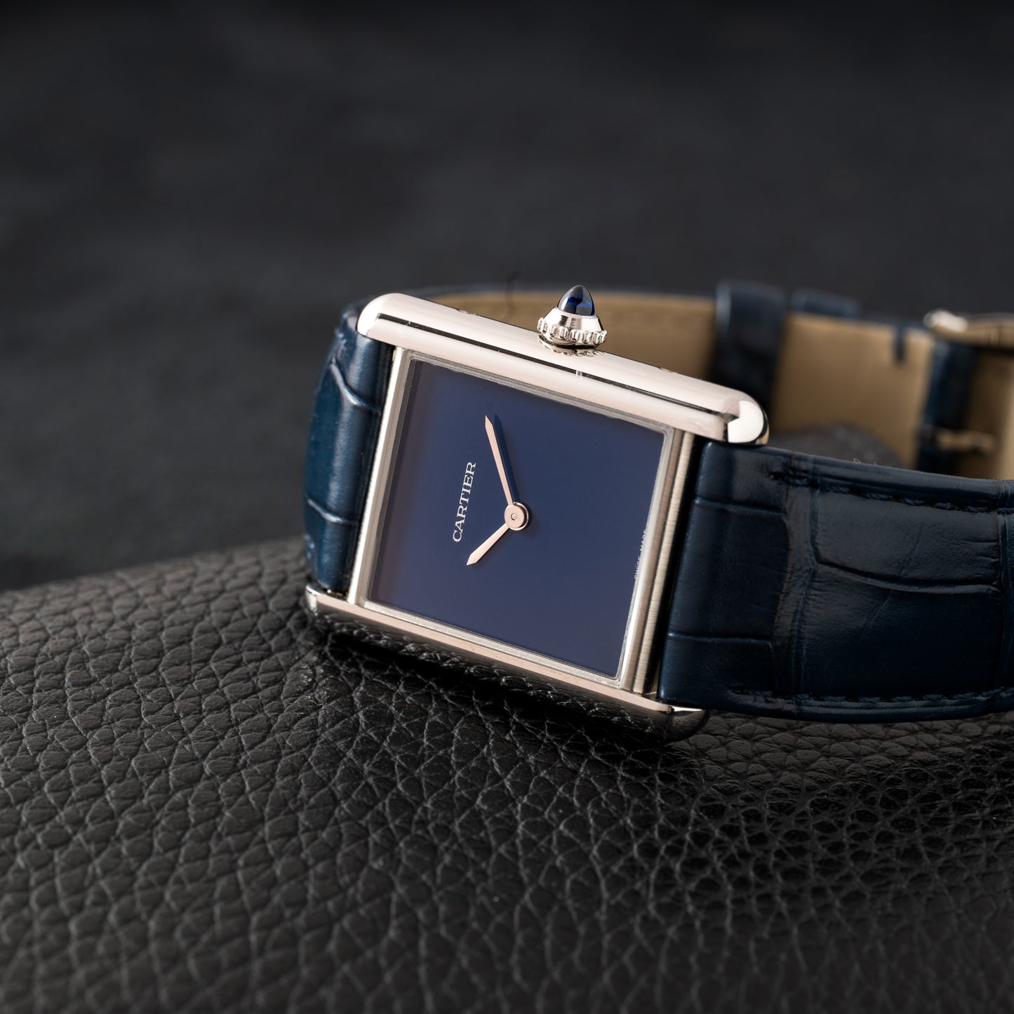 Powered by a high-autonomy quartz movement from Cartier and paired to a signed, blue alligator leather strap with a steel 'Ardillon' pin buckle, this Tank ‘must’ be one of the best releases from the King of Jewelers released in the past ten years.