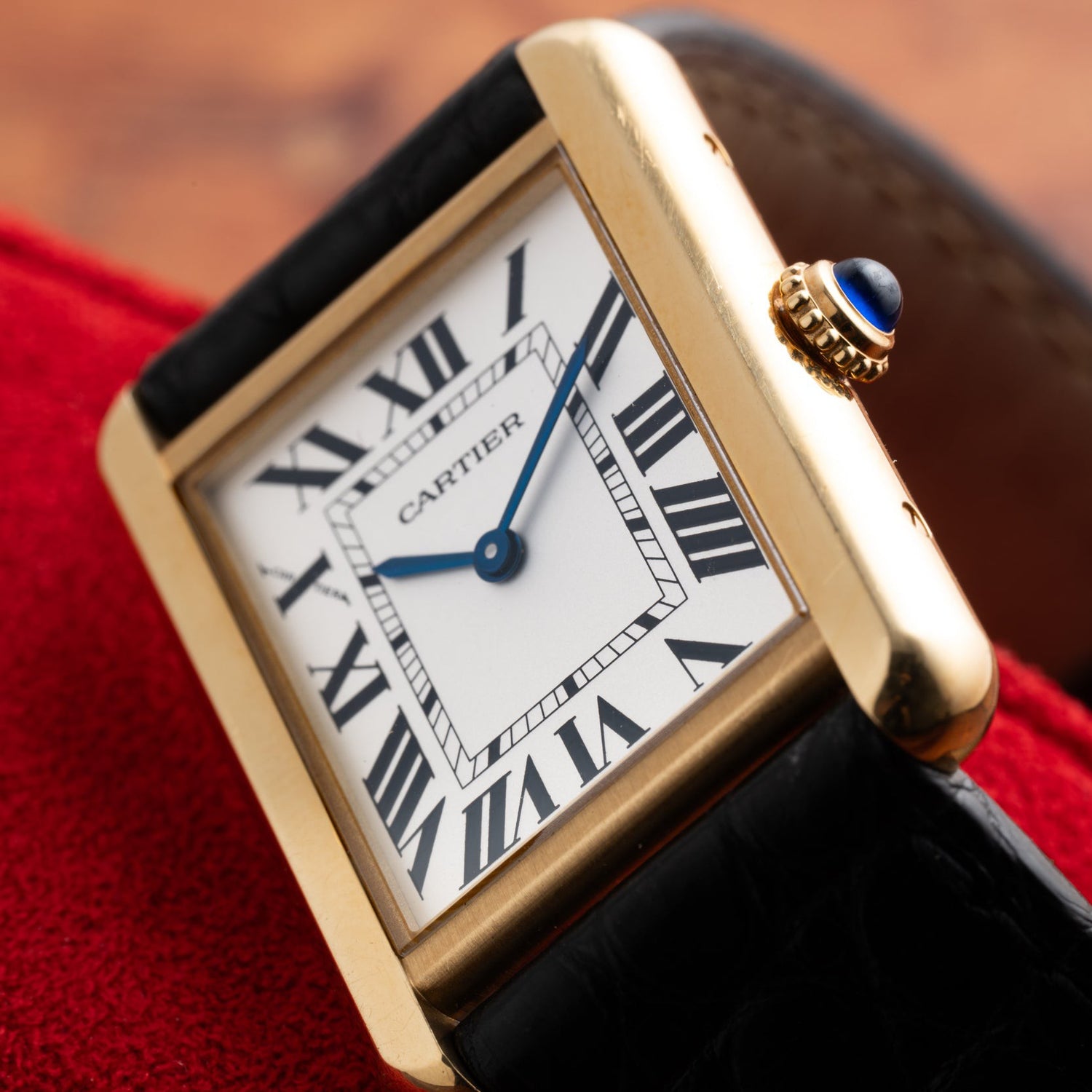 Cartier introduced the Tank in 1917 — which was supposedly inspired by the Renault FT-17 tanks seen on the battlefields of World War I — with a run of six pieces. (According to legend, these were given to American General John J. Pershing and his staff.) Cartier took the look of the Renault tank's treads and applied it to the watch’s lugs, which were integrated via brancards into the case itself. That first run of six pieces increased to thirty-three by 1920, and by the end of the 20th Century, that number stood well in the hundreds of thousands. Indeed, in sheer volume alone, the Tank — in all its various models — is Cartier's largest line of watches.