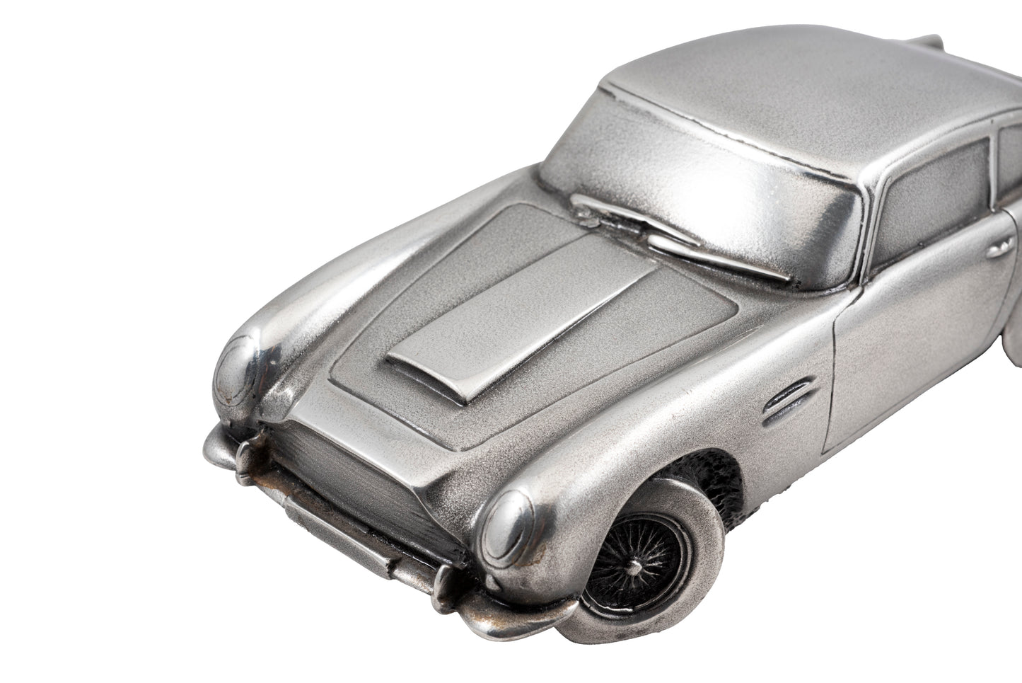 This particular sculpture is created in likeness to the Aston Martin DB5 — a car that needs no introduction to automotive enthusiasts or James Bond fans alike. This lovely piece features fine detailing throughout, paying homage to the Superleggera body penned by Touring of Milan. Cast from solid pewter, this piece measures approximately 8” x 3 “ x 2 1/2" and is very nearly as gorgeous as the real thing.