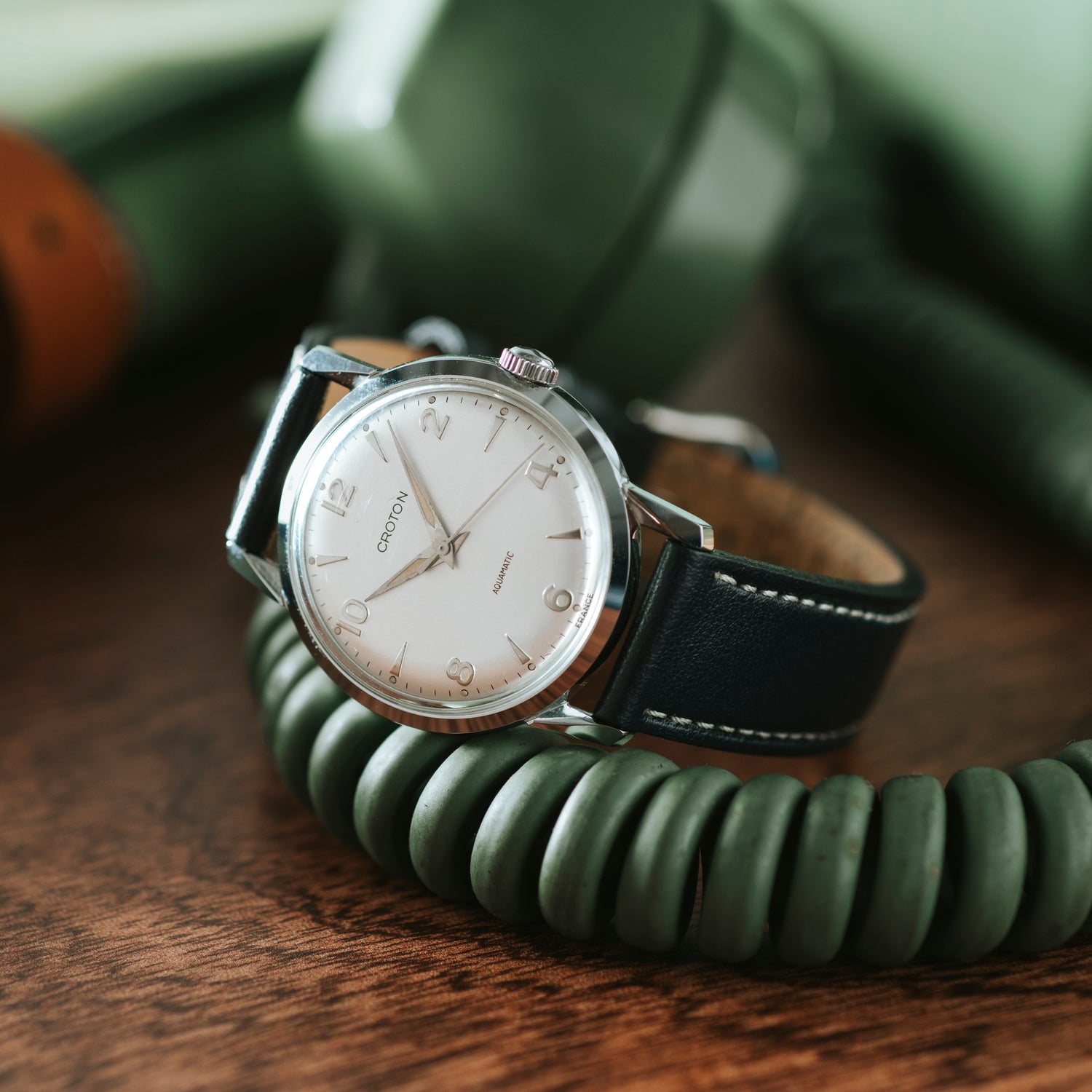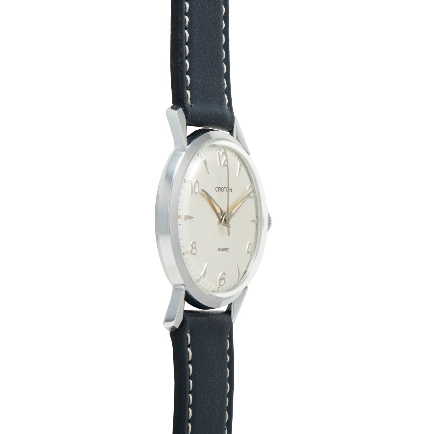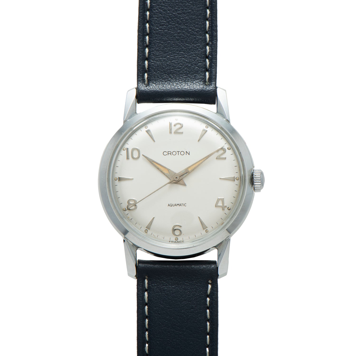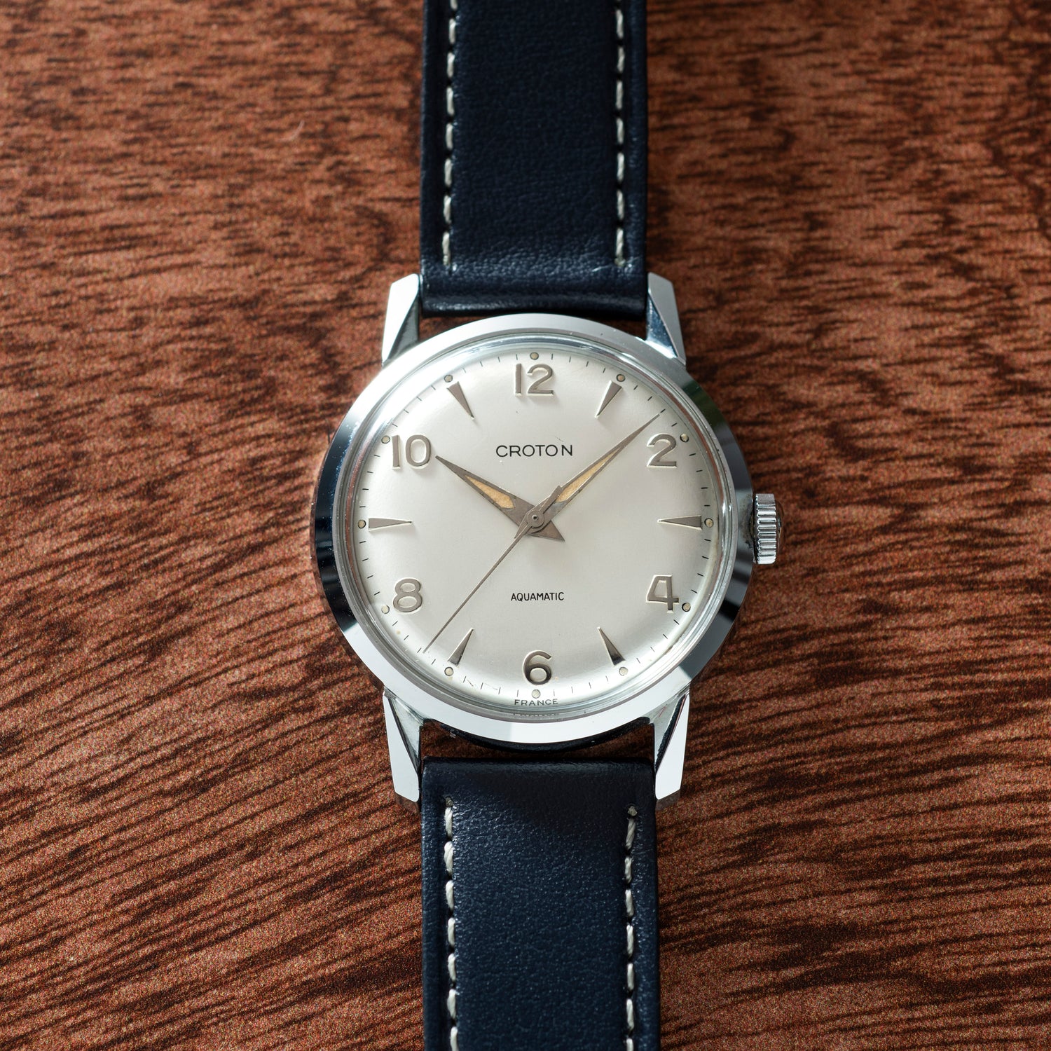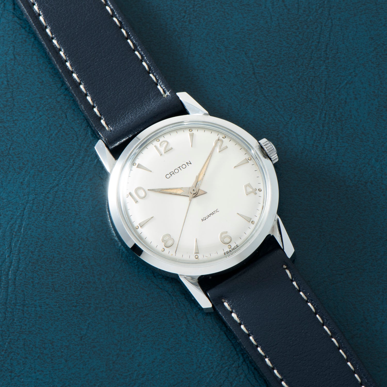 No, sir — sometimes an excellent watch flies well under the radar, delivering outsize value and a well earned sense of joyous discovery. This small Croton Aquamatic is one such watch: Featuring a 34mm chrome plated case with long lugs, an unsigned crown, and an acrylic crystal, it features a silvered dial with an outer printed minute track, luminous tritium plots, applied 'dart' and 'Arabic' indices, and a luminous 'alpha' handset with beautifully patinated tritium material.