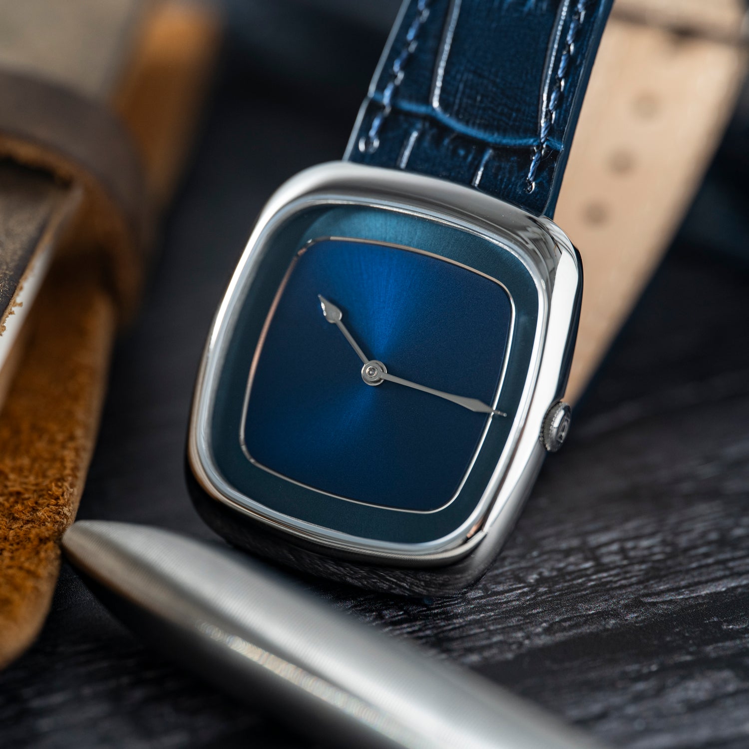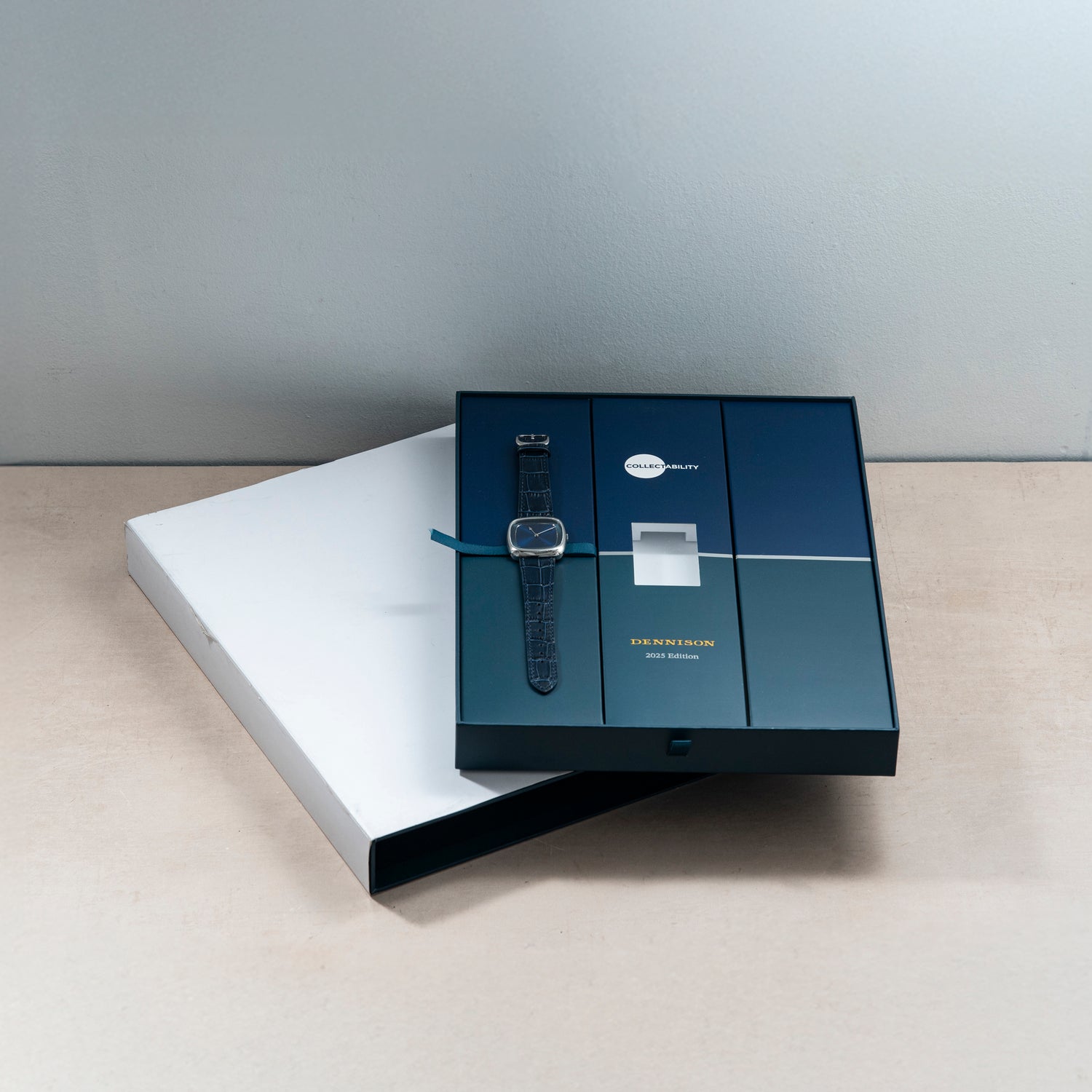 –Some collaborations feel inevitable in hindsight — the kind born of shared obsessions, chance encounters, and a mutual appreciation for shape, history, and the oddball corners of watch design. The long-sold-out stainless steel Dennison × Collectability Sunray Dial is precisely that kind of watch. A modern revival of the classic Dennison cushion case, it distills the elegance of 1960s form watches into a slim, architectural 37mm × 33.5mm package that all but disappears on the wrist at just 6mm thick. No lugs, no clutter — just pure, sculptural geometry.
