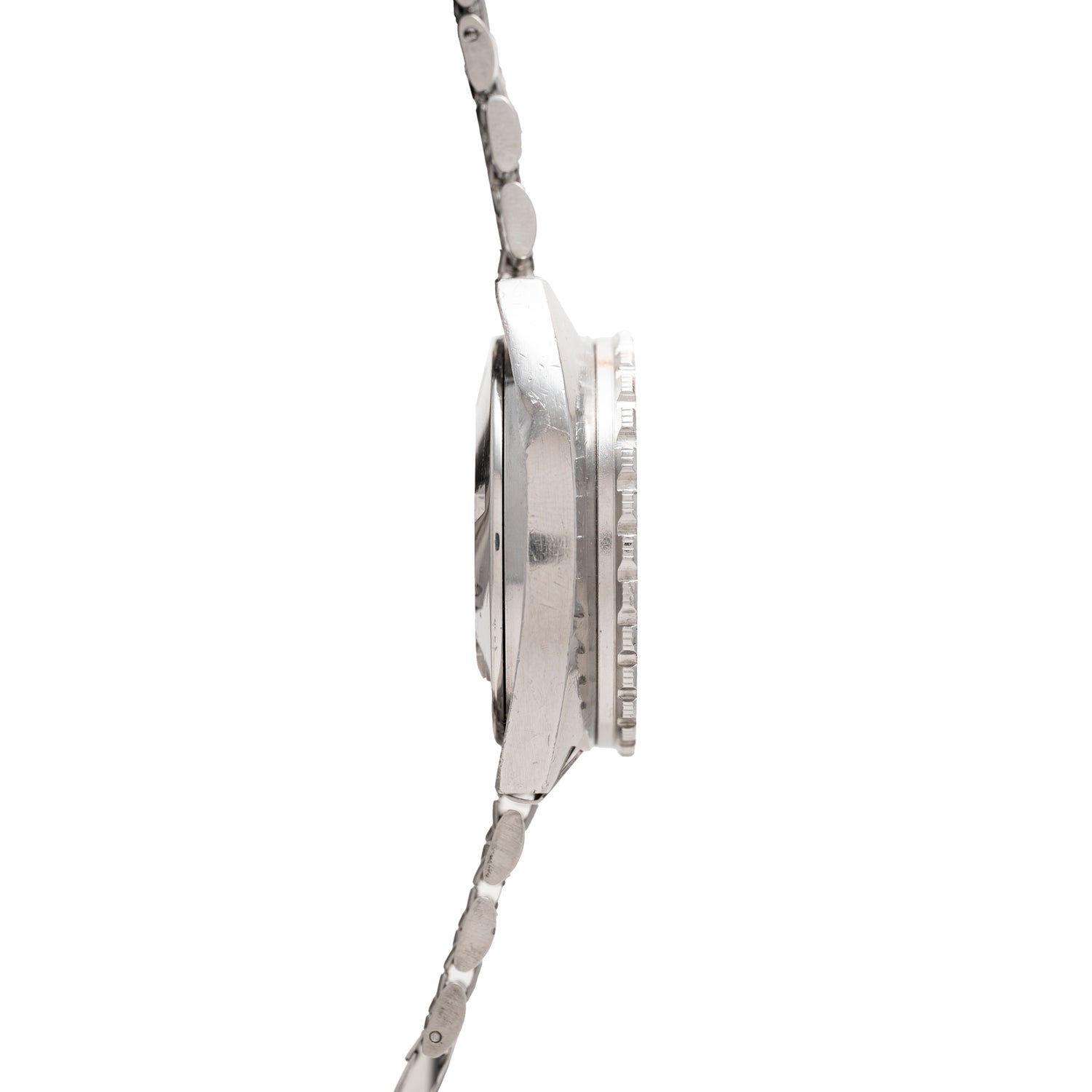 The team implemented a unidirectional bezel with an innovative insert: the U.S. Navy No Decompression chart, with the outer depth scale in orange and the minute scale in black, to allow divers to gauge how much air was in left in their tanks. Rounding out the Sub 300's innovative design was a beads-of-rice bracelet that was the first to implement an ratcheting expandable clasp capable of fitting over a diver's wetsuit without having to remove links.