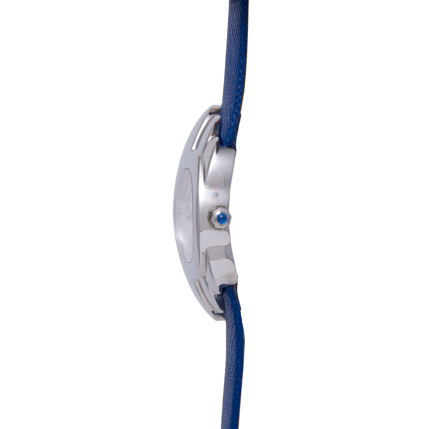 The blue leather strap integrates directly into the case for a seamless integration tied together by a stainless steel deployant clasp, while a handy quartz movement serves as the power plant. For someone on the hunt for a glitzy timepiece to accompany an elegant night at a soirée or gala, it's an ideal choice. And did we mention it comes with its box and papers?